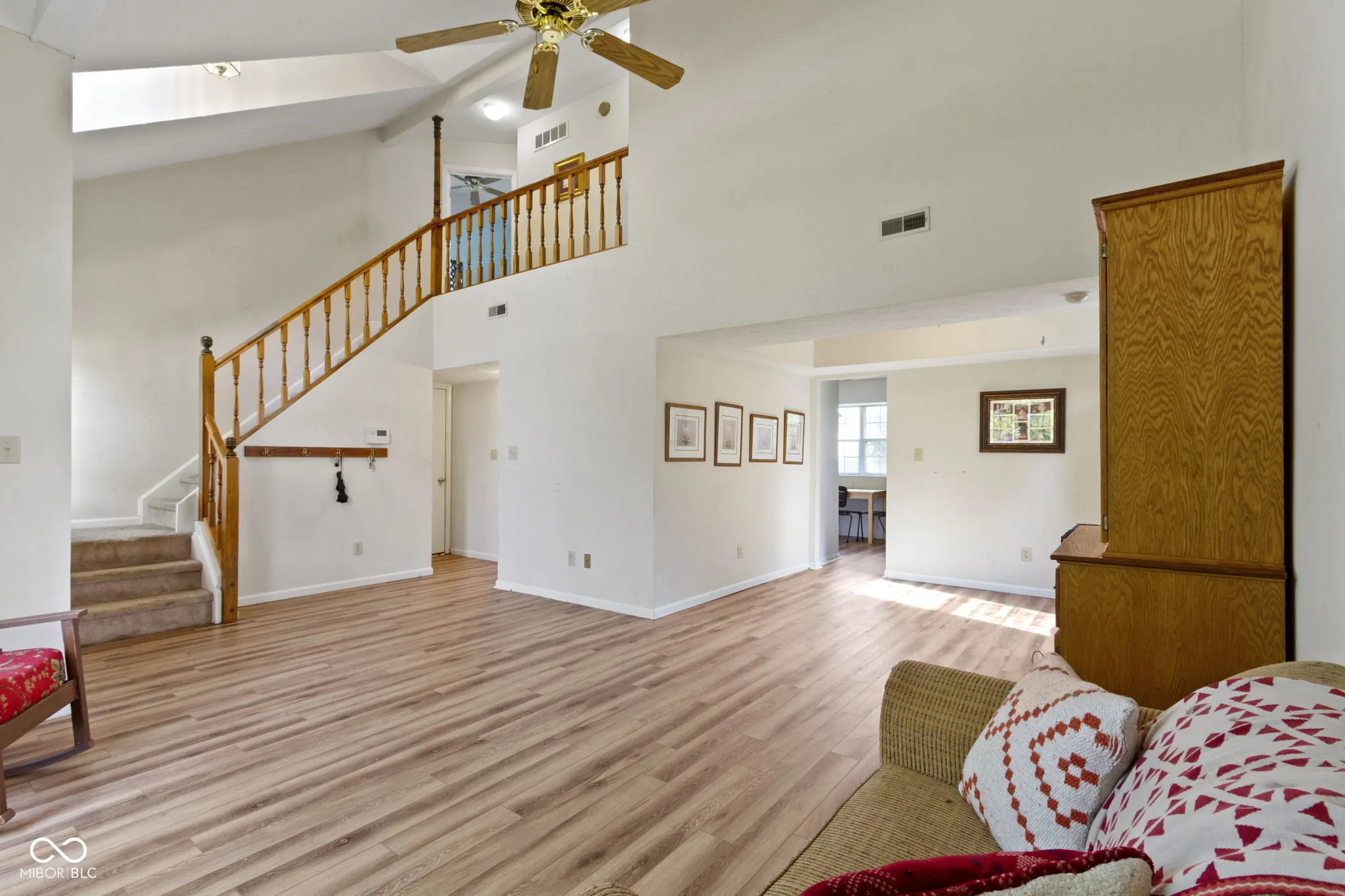 Welcome to 10616 Bartley Drive, nestled in the highly sought-after Kensington Farms neighborhood. This charming 3-bedroom, 2.5-bathroom home offers a perfect blend of comfort and potential. The spacious two-story foyer welcomes you with abundant natural light, highlighting the home’s open layout. The main floor features recently updated flooring, providing a fresh foundation for your personal touch. The expansive primary suite features a generous walk-in closet and an en-suite bathroom with a skylight, double sinks, and tile flooring, an ideal space to unwind and make your own. Upstairs, you’ll find a full bathroom with partial updates, including updated tile flooring, and two additional bedrooms, offering plenty of space for family or guests. On the main floor, a convenient half bath and laundry room add to the home’s functionality. Additional highlights include a water heater installed within the last 1-2 years and a two-car garage. Outside, the backyard adjoins a walking path, offering a peaceful and private retreat. Kensington Farms enhances your lifestyle with amenities like a neighborhood pool, tennis courts, a playground, and scenic walking paths. Conveniently located near Fort Benjamin Harrison, this home combines suburban tranquility with easy access to city amenities. With a little cosmetic updating, this home is ready to become your dream space. Don’t miss out on the opportunity to make 10616 Bartley Drive your own.