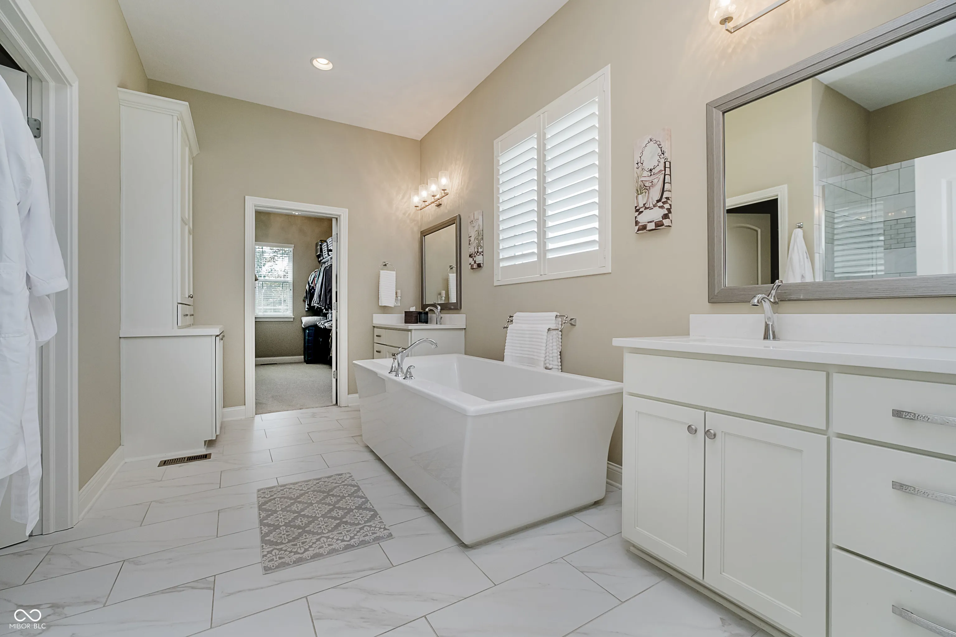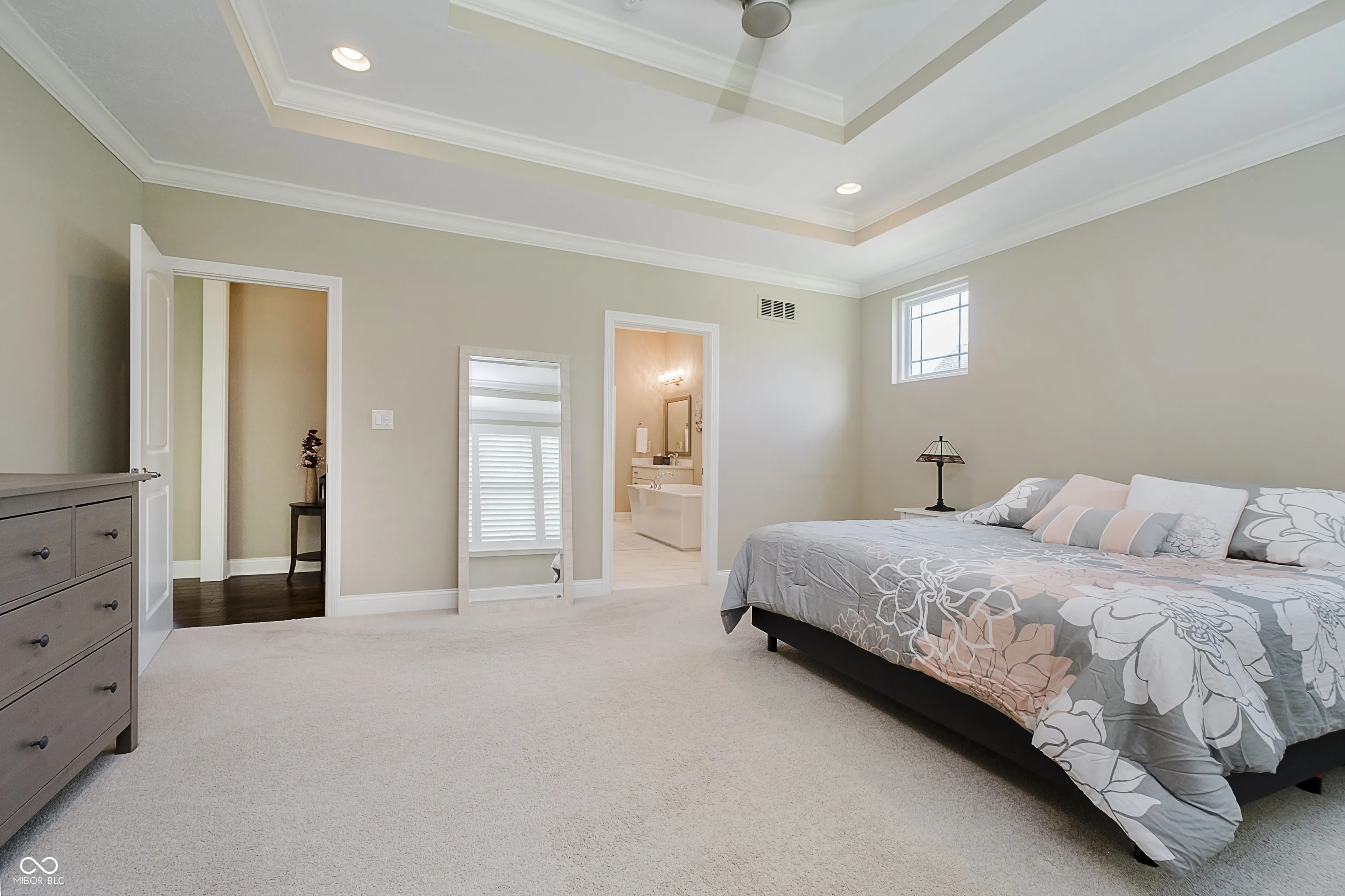 WOW! What a showstopper in desirable West Carmel, 6 BEDROOM 5 BATHROOM custom home is located in a smaller more intimate custom neighborhood, cul-de-sac location, gorgeous tree-lined backyard but plenty of green space to enjoy or potentially put in a pool if desired, Hard to find MAIN LEVEL PRIMARY BEDROOM suite, calm and classic primary bathroom design, double vanities, spa-like bathtub, walk in shower, huge walk-in closet, primary bedroom window looks out to the tree lined backyard, enjoy a main level office/den looking out to the front of the home, spacious formal dining room w/ tray ceiling classic chair rail molding, the marvelous GREAT ROOM opens up the entire home with its massive scale feels so luxurious with its wall of windows out the back, steps away from the great room is the beautiful white kitchen, subway tile, granite tops, breakfast bar, stainless appliances, casual eat-in area overlooking backyard beauty just the perfect floor plan for today’s living, the backdrop is just pure bliss and serenity nothing but amazing trees no neighbors behind, enjoy neutral colors, hardwood floors, custom tray ceilings, floor to ceiling fireplace trim dramatic flair, huge mudroom off the garage for busy lifestyles, walk upstairs to 3 spacious bedrooms 2 full bathrooms, 1 bedroom has a private bathroom suite and the other 2 bedrooms share a full bathroom, upstairs laundry room, wait until you experience the huge finished daylight basement, the large area of the basement is divided by a two-way fireplace, Chicago Style basement bar, spacious guest bedroom suite in the basement, the sellers favorite room is a custom designed workout room in the basement, plenty of storage in the basement. The backyard is just perfect, covered porch/patio with fireplace, just the perfect amount of flat & green grass for play but with the gorgeous trees in the backdrop for privacy. Buyers will simply love the backyard setting!