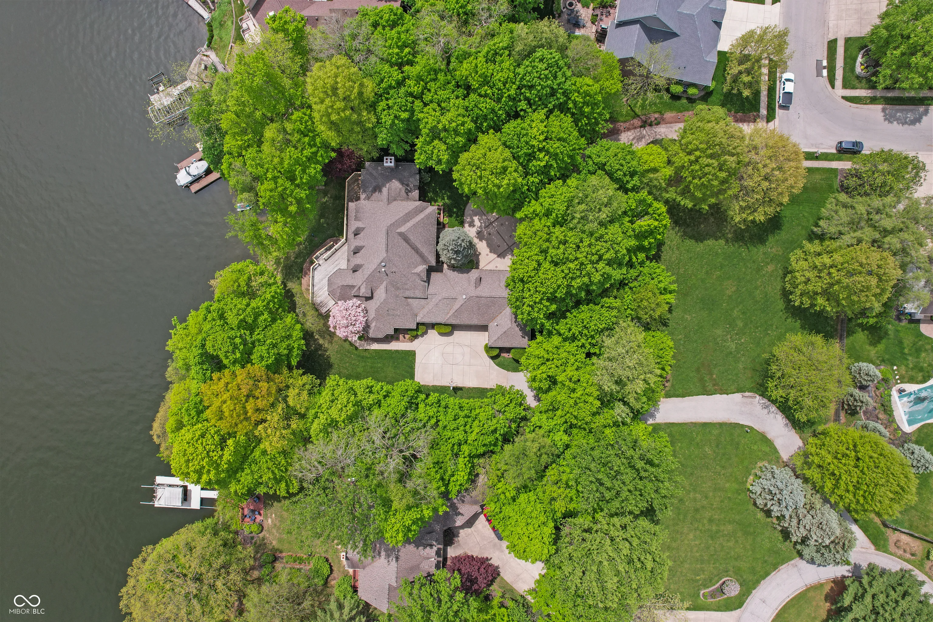 Enjoy the awesome water views! Architecturally designed, this waterfront home is nestled in the exclusive Oakbank subdivision, situated between the Oakbay and Forest Bay neighborhoods on the picturesque west bank of the Morse Reservoir. Boasting a spacious 1.45-acre wooded lot, this property features 183 feet of shoreline, an illuminated athletic field, a sizable 40′ x 35′ basketball court, and is even pre-plumbed for a potential swimming pool. The 6913 sq. ft. custom built brick residence includes a 5-car garage with front and back driveways leading to each adjoining neighborhood. The home offers 5 bedrooms (4 with walk-in closets), 5 full bathrooms, and 2 half baths, with the Primary Bedroom conveniently located on the main floor. With 9′ and 12′ ceilings throughout the first floor, the residence also boasts custom California Closet shelving in all walk-in closets and both kitchen pantries. Grand 2 story foyer & main hallway, all doors are oak, main hallway has OAK hardwood floors! The main level features a spacious center-island Kitchen with 2 walk-in pantries, a cozy dining area, a welcoming Great Room with a fireplace that walks out to outdoor deck, a formal Dining Room, a Laundry/Sewing Room, a convenient Computer Room/Office, and a large screened-in Porch leading to an expansive full-house-width deck – perfect for enjoying the serene surroundings. This home offers both front and back stairways accessing all three levels. Upstairs you’ll find 3 Bedrooms, one of these bedrooms incudes a Guest Suite . The lower level includes Family Room w/fireplace , 5th Bedroom suite w/ private bath , a wet bar, Game Room, a Mechanical Room, and ample storage space. Come see it today!