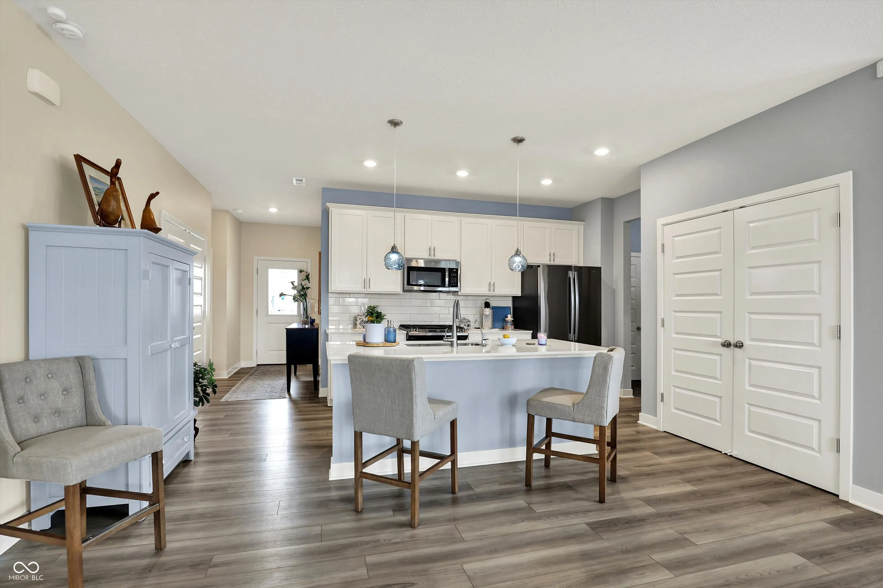 Better than new with over $32K in post-build, high-end upgrades, 5248 Holborn Avenue is the one you’ve been waiting for. This beautifully finished 3-bedroom, 2-bath ranch sits on a premium lot with a tranquil pond view and blends stylish design with smart functionality-all in a low-maintenance community that includes all lawn care, snow removal, and neighborhood pool. Step inside to a light-filled, open-concept layout featuring fresh, on-trend paint, upgraded lighting, and wide-open living spaces perfect for everyday living and entertaining. The kitchen is a showstopper with quartz countertops, modern fixtures, and a seamless flow into the great room and dining area. The spacious primary suite features trey ceilings, quartz dual vanities, a large walk-in shower, and designer finishes. You’ll appreciate the thoughtful storage upgrades throughout-from custom cabinetry in the laundry room and landing zone to the expansive 3-car garage with epoxy floors, built-in cabinets, a workbench, and a mudroom bench. Additional features include plantation shutters, a smart security system, and a full irrigation system. Step outside to enjoy a screened-in porch, oversized stamped concrete patio, and fully fenced backyard-all overlooking a peaceful pond. This home offers more than new construction-combining comfort, character, community, and value in a move-in-ready package you won’t want to miss.