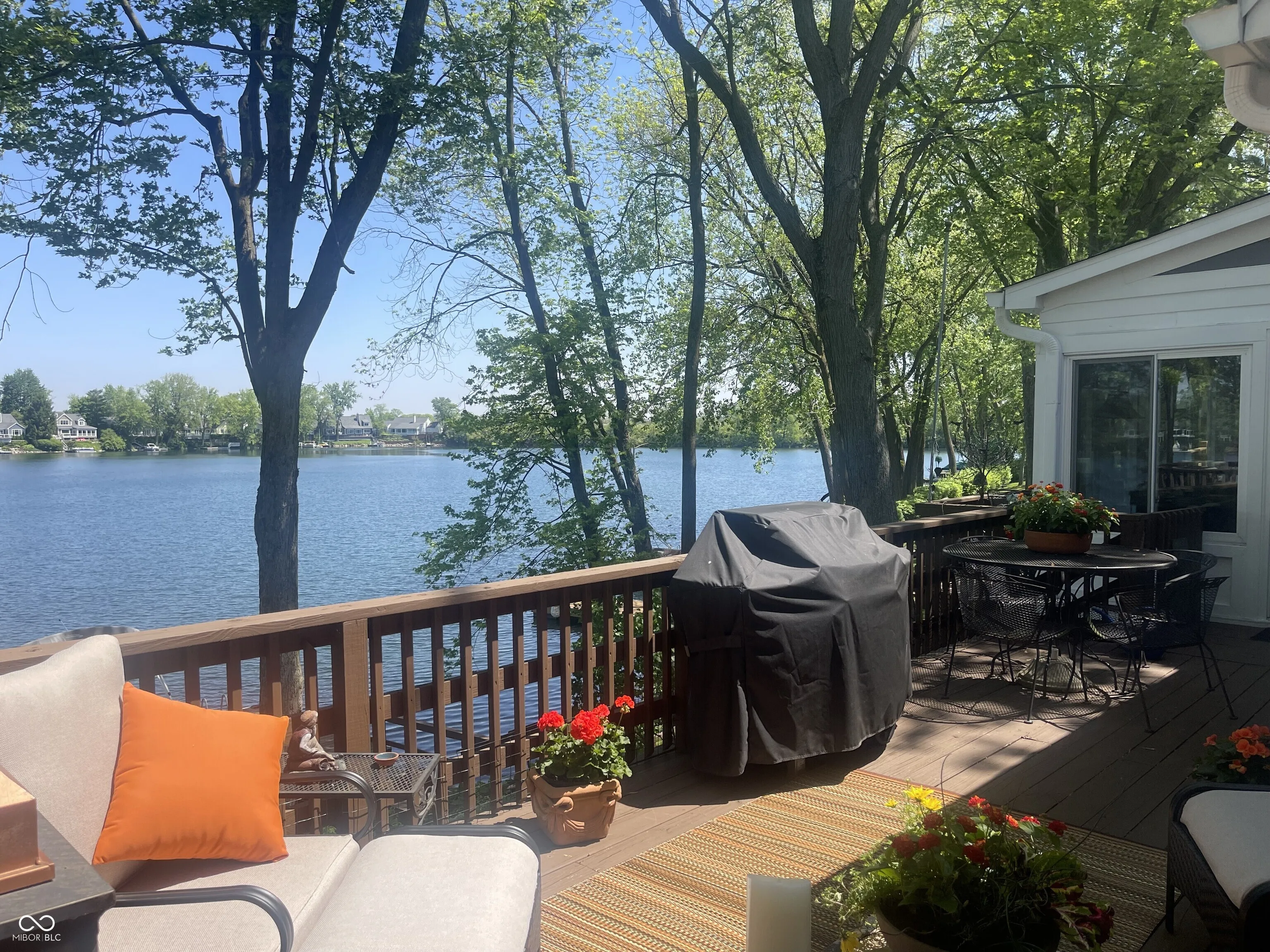 Nantucket Bay just in time for summer!! These highly sought-after, maintenance free condos in the heart of Washington Township don’t often hit the market. Breathtaking water views from nearly every window showcase the 50+ acre spring fed, tree-lined lake stocked with over 20 species of fish. Enjoy this sparkling lake from your living room oversize picture window, welcoming sun-filled breakfast room, MAIN LEVEL primary suite, multiple decks, enclosed sunroom, and private boat dock – Brand new 2025 18 foot Bennington 188 SLSE pontoon boat with extended transferrable warranties and brand new trailer also available to purchase with home. All new paint both inside and out, updated hardwood floors in entry and hallway, and new carpet. Newly installed stone staircase outside provides direct easy access to the dock. Fully fenced front courtyard, side turf dog run, and gated back deck areas make moving beloved pets easy. 2 year old Generac, 2 year old fridge. Remote control automatic blackout shade in primary suite and heated bathroom floors!! Upstairs offers two additional bedrooms plus a den or additional tv room, and converted attic access for easily accessible storage in addition to the plentiful closets throughout. Enjoy the tranquility of a lake retreat every day while still being minutes from Keystone at the Crossing, restaurants, and shopping. Low maintenance lifestyle.