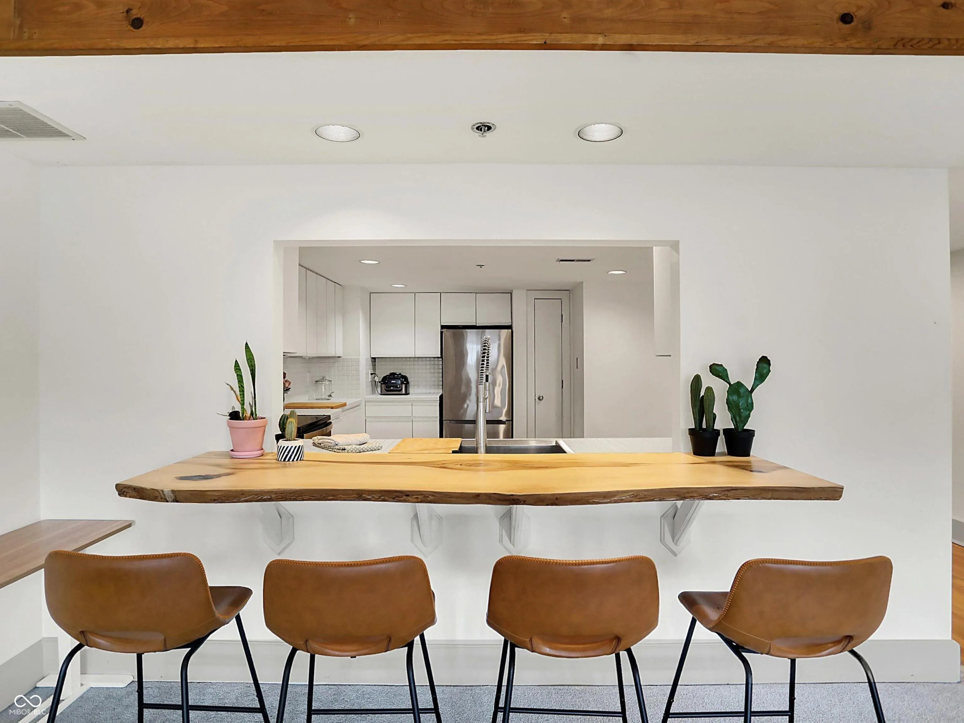 Custom wood door ushers you into loft living that includes an expansive great room loaded with historic details of structural beams and original brick wall highlighting a two-story ceiling. Walking distance to local favorites AND easy access to downtown and Fountain Square, this Union Laundry unit in Fletcher Place features a large kitchen with 3 yr old appliances and SS sink with High-Arc coil faucet. An extra deep live edge bar top provides robust seating space and contributes an organic feel to the room. Large bedroom with TWO closets and enough space for home office flaunts a balcony to enjoy views. Oversized bath convenient to the bedroom and ground floor with dual vessel bowl vanities, tub with jets, separate tile shower and private water closet. 1 yr old washer/dryer nearby for ultimate convenience. Extensive storage space under stairs and in basement plus garage parking round out the essentials for city living, while the roof top patio provides relaxing views of nature and the city skyline.