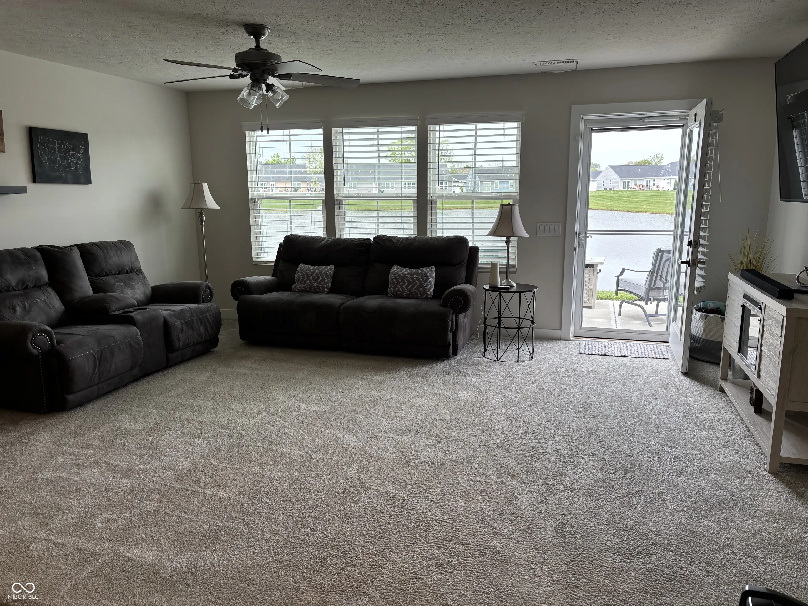 Charm, Location, and convenience awaits you with this low-maintenance 2/3 bedroom home that boasts beautiful open-concept design. Entry leads to custom glass doors opening to the flex room. Third bedroom, office, den, or playroom can be decided upon your needs. The spacious kitchen is a chef’s dream that features granite countertops, stainless steel appliances, large island, and custom lighting. Relaxing great room has amazing lake views and leads to an oversized patio. Enjoy the evening breezes here. Primary bedroom has a spacious walk-in closet, attached bath with full size shower. Laundry room with tankless water heater, water softener, and custom shelving. Many more nice features left for your surprise.