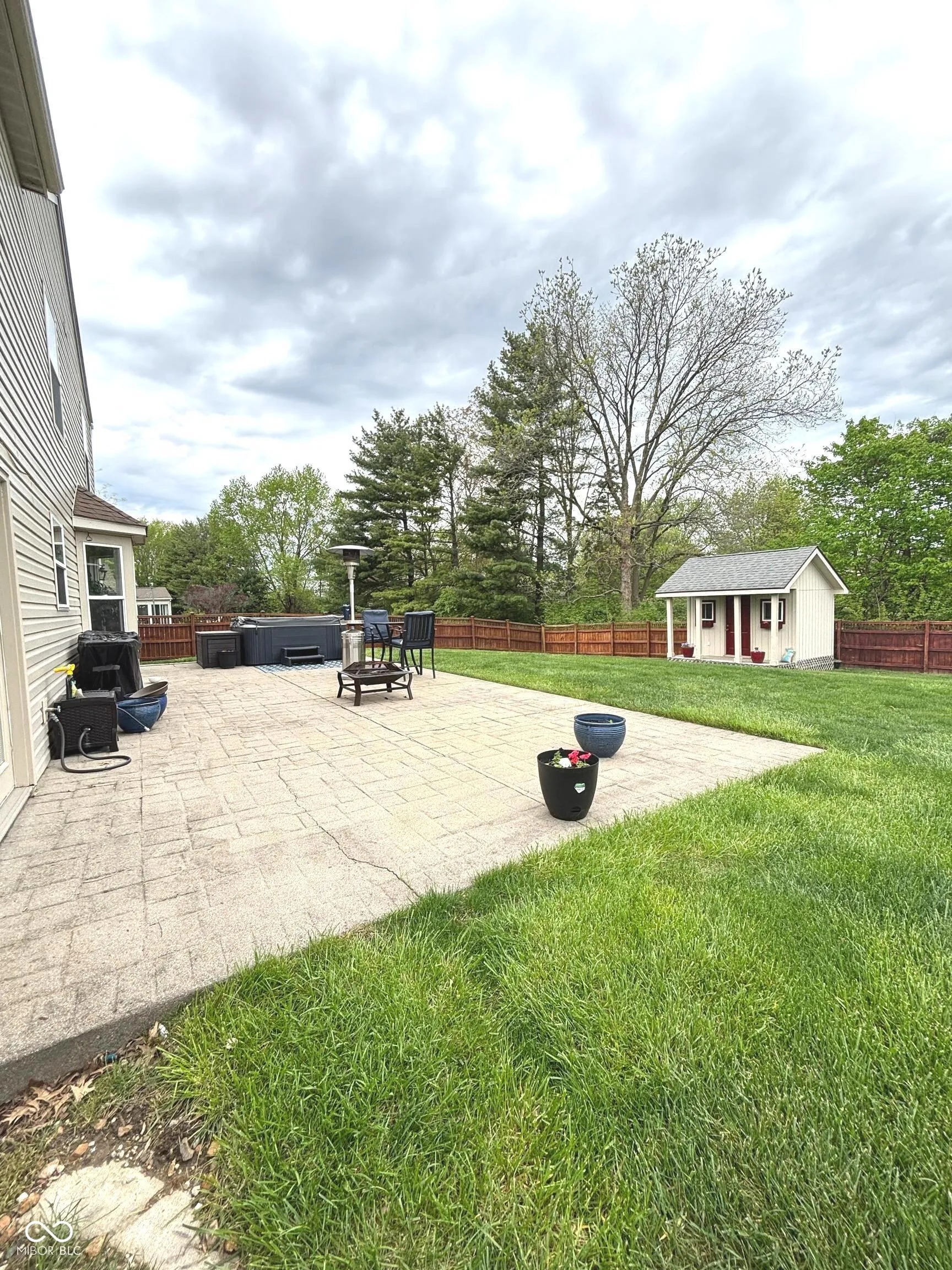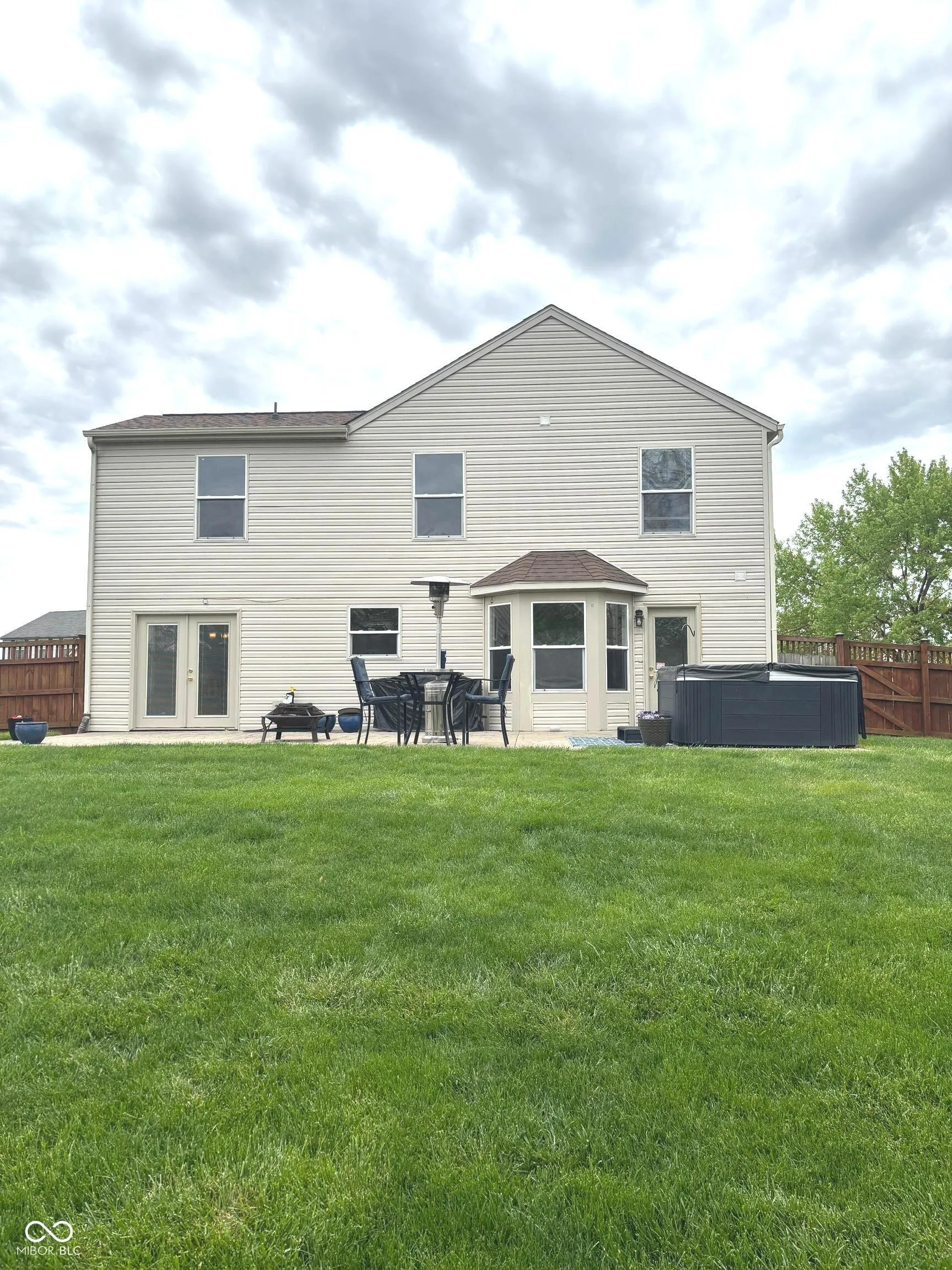 Nothing to do but move right in! This bright, well kept, spacious home is the cream of the crop. Ready to welcome its new owner, this could be your lucky day! Fresh paint throughout, new carpet, and all the appliances including washer and dryer are included. Upon entering, you will experience the spacious great room with vaulted ceiling which will accommodate most any size furniture you desire. Connected dining room to the rear would also be a nice home office if that is your need. Open L-shaped kitchen with on-trend gray cabinets offers plenty of room for a free standing center island; pantry provides space to stock up on food and supplies; breakfast room with bay window is a nice place for a table for family and friends to gather for a meal or snacks and games. Laundry and powder room are also on the main floor. 3 bedrooms 2 baths plus loft/family room all with ceiling fans and lights await at the top of the stairs. The primary bedroom to the left includes a 7×5′ walk-in closet and its own private bath with double sinks, whirlpool tub, and separate shower. TVs and wall mounts in the primary bedroom as well as the great room stay. Loft/family room to the right overlooks the great room. Wait until you see the huge privacy fenced backyard with 42×17′ patio across the back of the house! Imagine all the fun you can have here. Breakfast room and dining room both have access to this awesome space. There is even a 6-person hot tub to soak away your cares of the day! A flat surface grill, fire pit, table and chairs, and heater can all stay if you want them. A cute 12×8′ storage shed at the back has power, lighting, and outlets with shelving on both sides. It will hold a lot of your treasures. Ring doorbell stays. Entire neighborhood has access to the pond. Just a few minutes drive to I-465 gives convenient access to all Indy has to offer, including the airport, shopping, sporting events, and medical facilities. We welcome you to check it out. You will not be disappointed!
