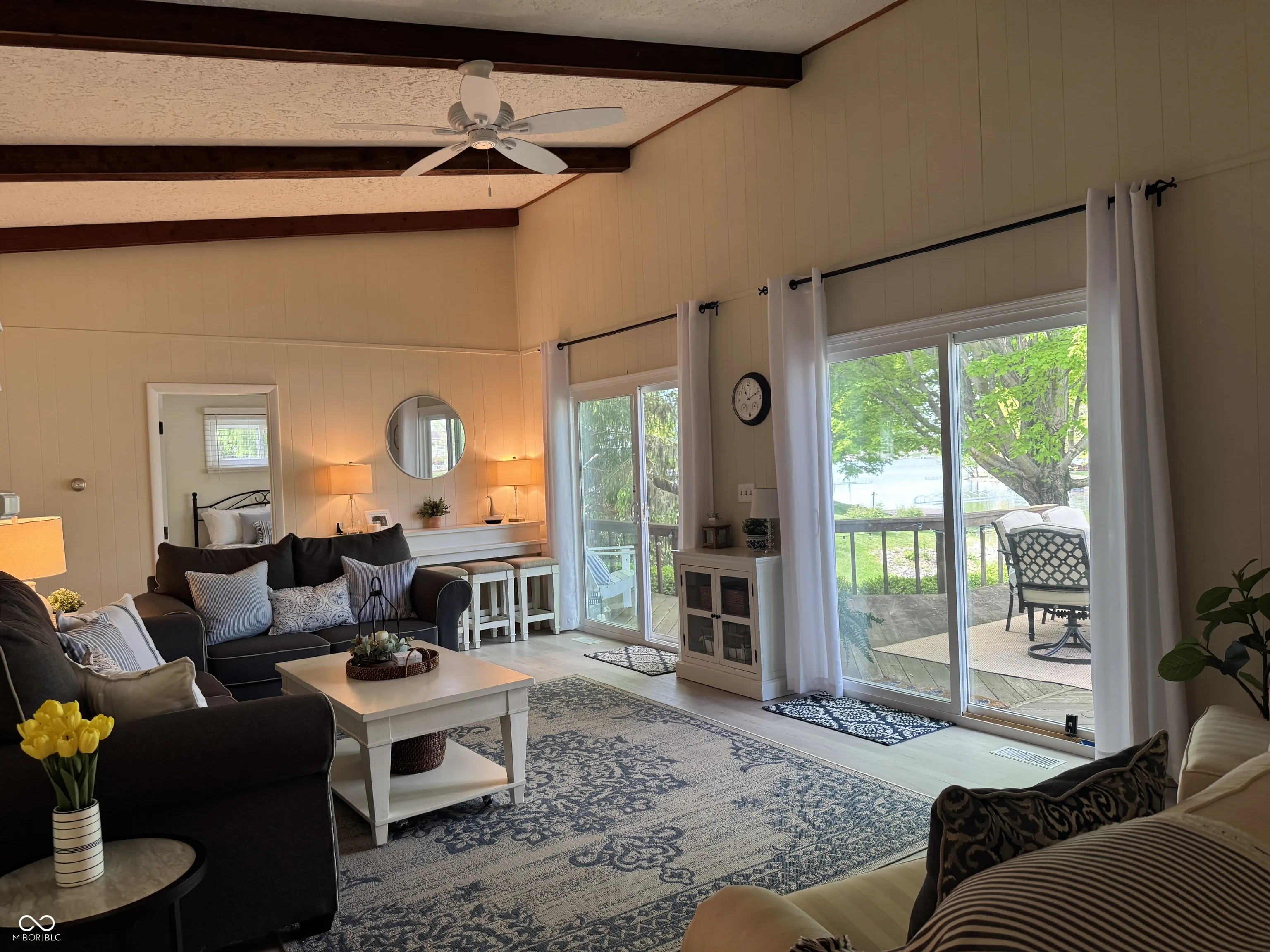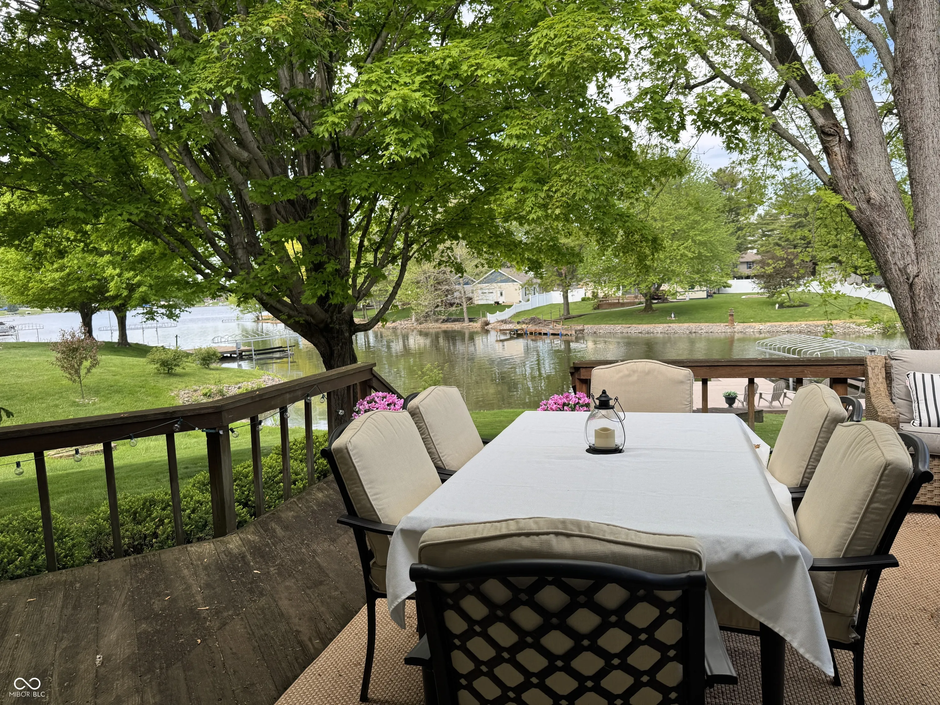 This property includes 2 and 1/2 lake front lots offering significant land value. The 3-bedroom, 2.5-bath lake house features a great room, kitchen with ample cabinets with appliances remaining Two guest bedrooms share a jack-and-jill bathroom, while the master suite on the opposite side features a spacious bathroom and walk-in closet. Four sliding glass doors provide natural light and access to the 578 sq ft deck, shaded by mature trees and offering stunning lake views. The new composite dock has an electric lift, pontoon docking space, and swim ladder. The front patio offers covered space for family activities. There are three large storage cabinets for yard equipment and lake toys. The home is located on lot 795 and half of lot 796, with lot 794 providing additional green space.
