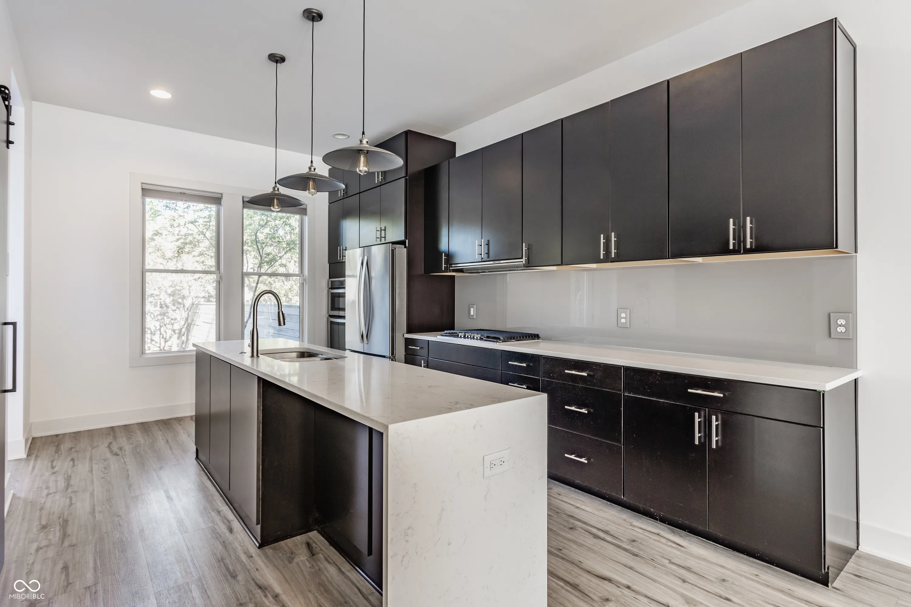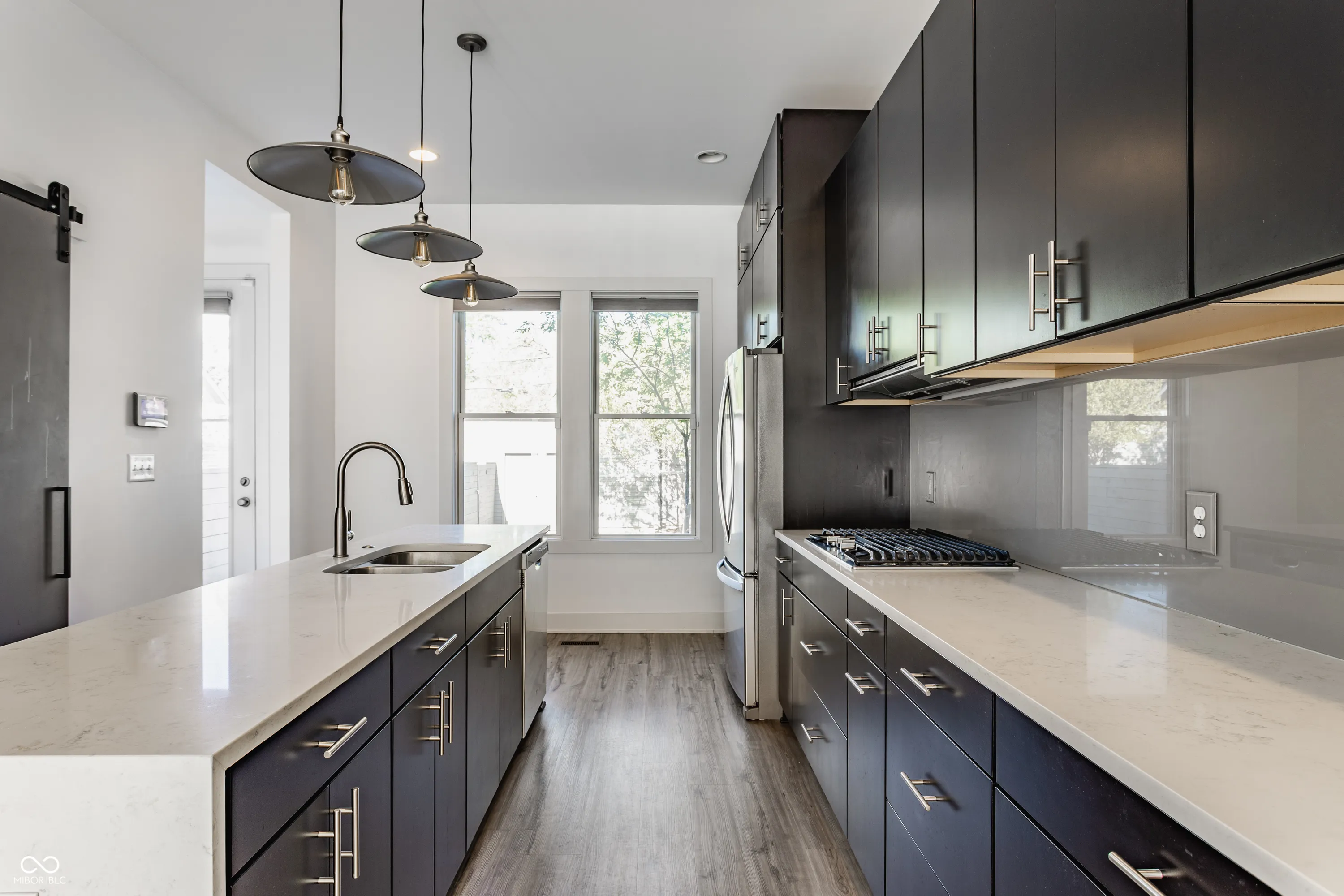 Not your ordinary Indy north side townhouse!! 4 level Old Northside townhouse with private fully fenced backyard and rooftop deck with wonderful downtown views! Open and spacious main level living/dining/kitchen area with plenty of natural light. Modern open kitchen with gas cooktop and large quartz island. Ample storage and prep areas for any cooking needs! Second level includes Primary Bedroom with en suite bathroom and walk-in closet, 2nd bedroom, 2nd full bathroom and laundry closet with washer/dryer! Awesome third level has 3rd bedroom, wet bar and amazing walk out roof top deck with sweeping views of downtown and faces west for evening sunsets! Lower level has large finished family/rec room. Unfinished area is plumbed for additional bathroom and could be finished to be a 4th bedroom – with egress window. Enjoy private back yard with slate pavers to detach 2 car garage! Easy and private access off alley. Great access to all things downtown Indy and walkable to grocery, restaurants and coffee shops. No HOA! Welcome Home!!