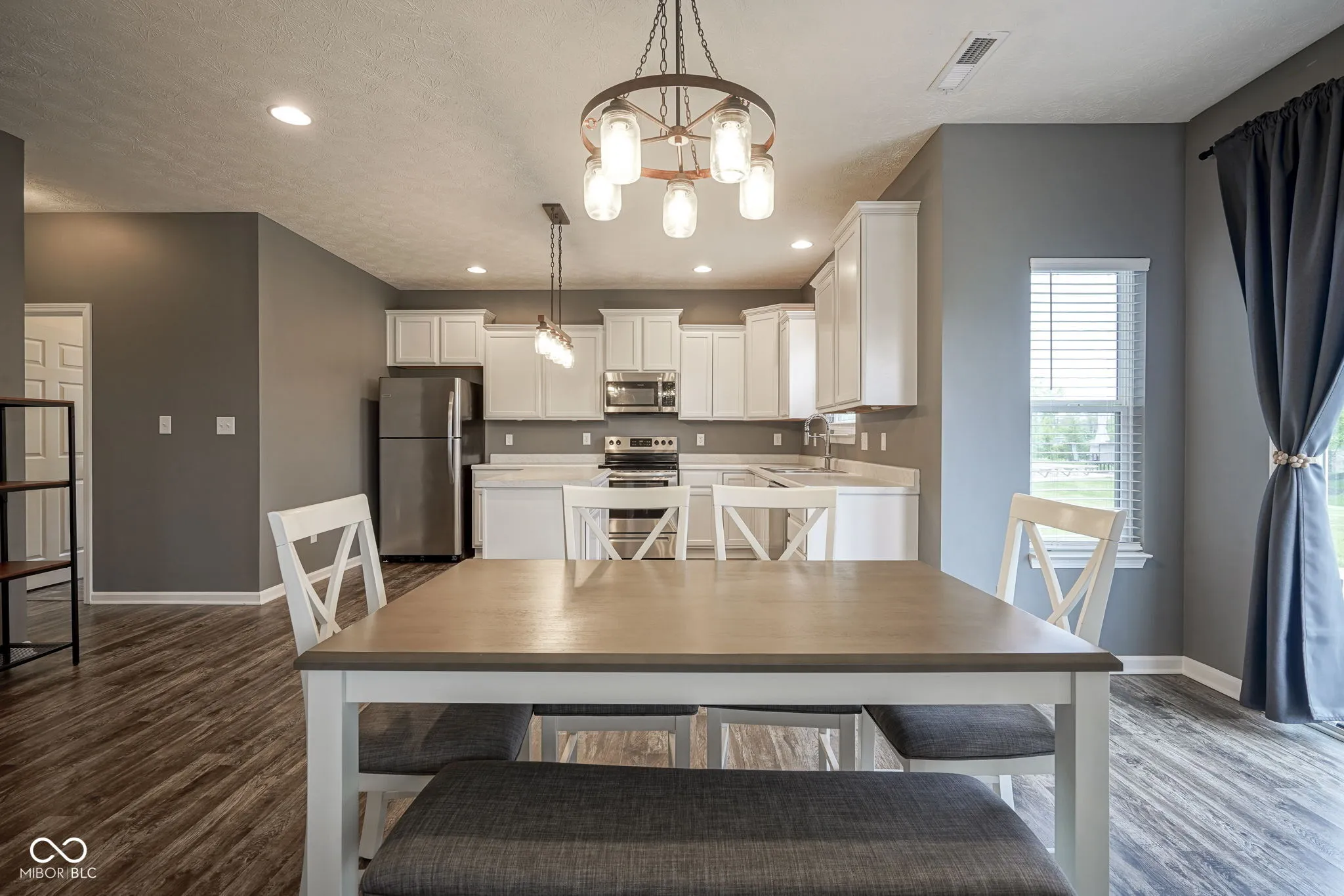 Tucked away on a quiet cul-de-sac in the desirable Flagstone Woods neighborhood of Noblesville, this stunning 4-bedroom home offers the space, style, and ease you’ve been searching for. Step inside to soaring 9-foot ceilings and a bright, open-concept floor plan that seamlessly connects the living room, dining area, and modern kitchen-ideal for entertaining or relaxing at home. The kitchen is both functional and beautiful, featuring sleek stainless steel appliances, crisp white cabinetry, and a center island perfect for gatherings. Just beyond the main living area, step out onto the walk-out concrete patio and enjoy the professionally landscaped backyard-lawn care is included, so you can truly enjoy a hassle-free summer. Need a dedicated workspace? A private office with double doors is ready for your home office or study needs. Upstairs, a versatile loft area provides the perfect spot for a second living room, play area, or creative flex space. This partially furnished rental includes everything you need to settle in quickly: a comfortable sectional sofa, dining set, TV, and more. Conveniently located near Hamilton Town Center, Stonycreek Golf Club, and with easy access to I-69 and I-37, this home puts everything within reach.