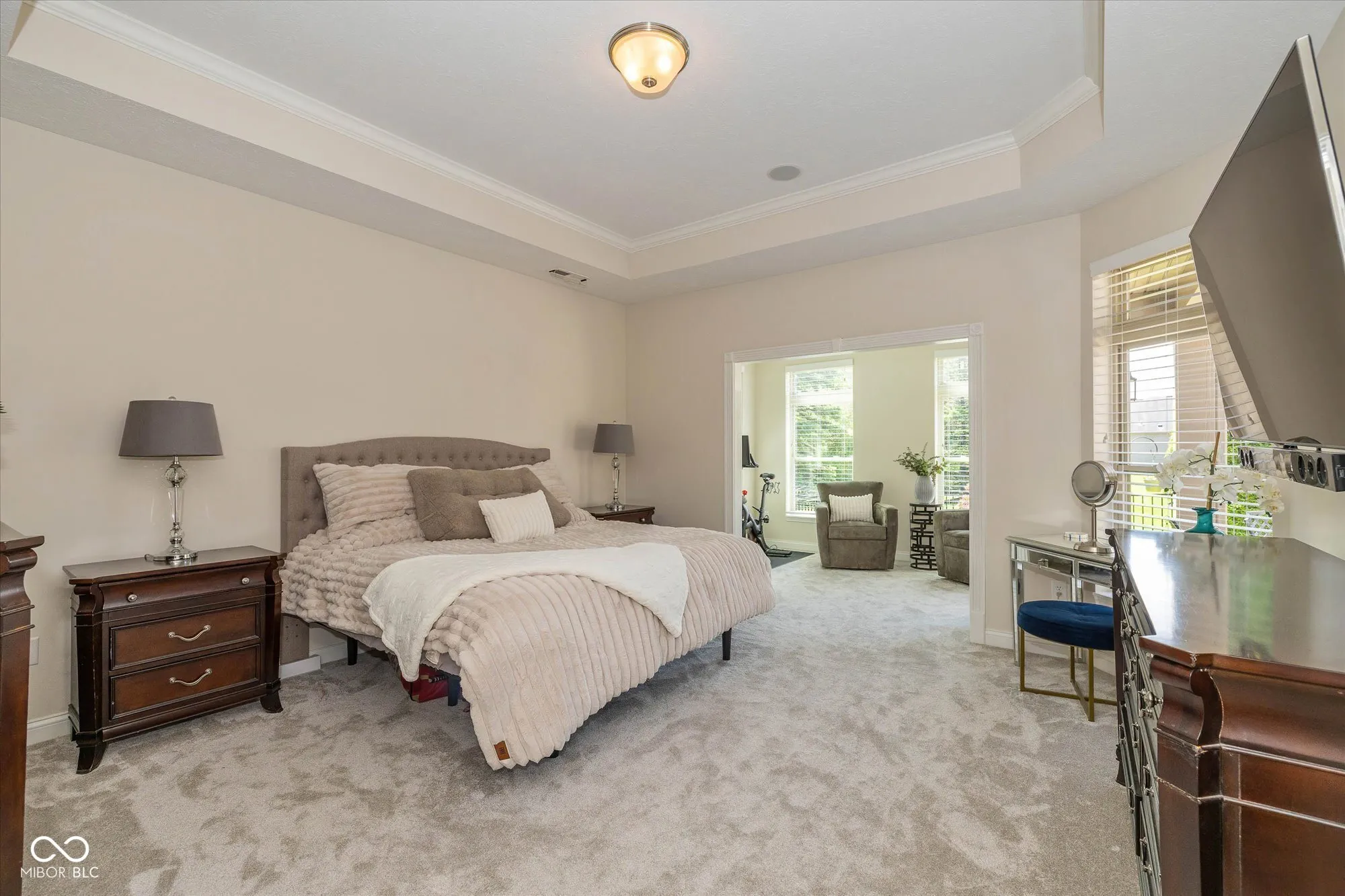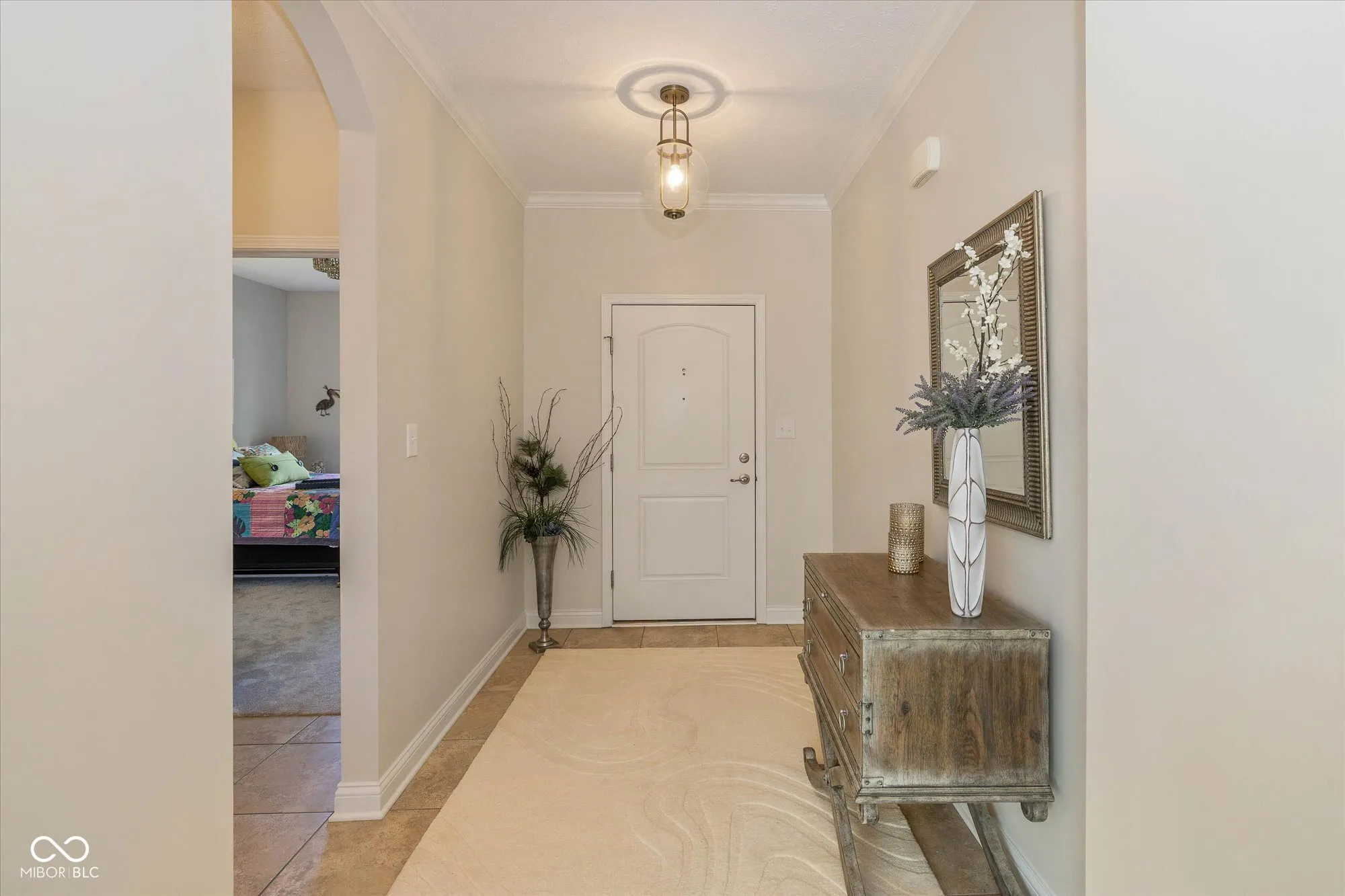 Tucked away in the highly desirable Villas at Geist, this stunning stand-alone ranch villa offers effortless living with upscale finishes and no shared walls for added privacy. Designed with both comfort and elegance in mind, the open-concept floorplan is highlighted by rich hardwood floors, soaring tray ceilings, and an abundance of natural light throughout. The chef’s kitchen is a true centerpiece, featuring granite countertops, a gas cooktop, built-in double ovens, a pantry, and a large breakfast bar-ideal for both entertaining and everyday meals. The adjacent great room exudes warmth with a cozy gas fireplace and flows seamlessly into the dining area. Enjoy the privacy of a split-bedroom layout, with the spacious primary suite tucked away as your personal retreat. It includes a bright 8’x12′ sitting room, perfect for morning coffee or evening winding down, plus a spa-inspired en-suite bath with a luxurious tiled walk-in shower and a custom walk-in closet with built-ins. The secondary bedroom and bath are like new-lightly lived in and pristine. You’ll love the pull-down attic stairs providing easy access to a large attic space with tons of storage. This one-owner, smoke-free, pet-free, child-free home has been meticulously maintained and feels truly move-in ready. Step outside to your private rear patio, ideal for al fresco dining or quiet relaxation. Additional perks include a security system, water softener, and a carefree lifestyle where exterior maintenance is handled for you. Welcome to your next chapter-refined, relaxed, and right where you want to be.