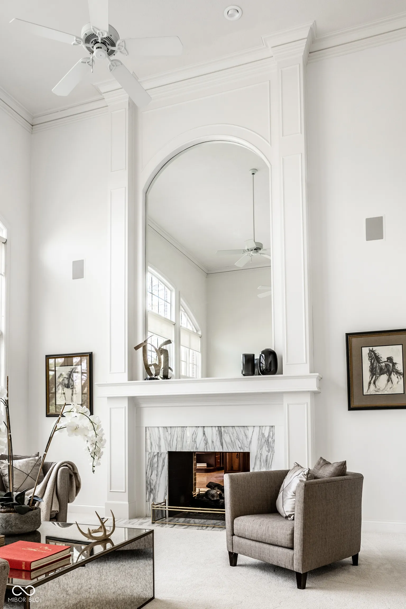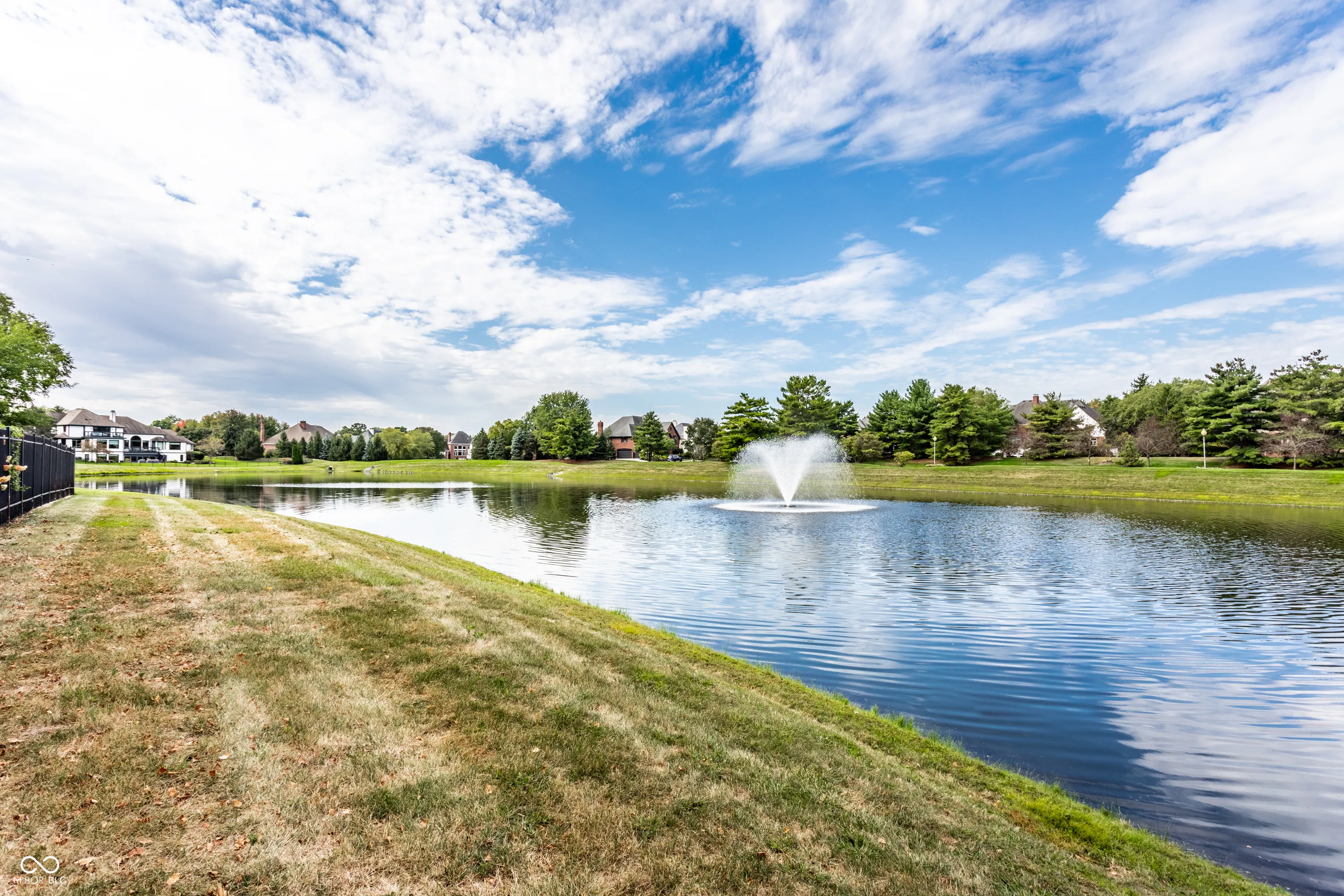 Situated on a premier water-view lot overlooking the pond and fountain inside the gated community of prestigious Windermere in Carmel, this expansive custom home offers both luxury and versatility. From the moment you enter, you’ll notice the attention to detail and fine finishes, from gleaming hardwood floors to beautiful crown moldings. Recent updates include new carpeting on the main level and in two lower-level rooms, as well as fresh paint on the main level and upper hallway, giving the home a bright, refreshed feel throughout. The two-story great room is filled with natural light from a wall of windows and warmed by a two-sided gas fireplace shared with the cozy hearth room. The kitchen is well equipped for any chef, featuring a center island, ample counter and cabinet space, and a breakfast room overlooking the pond and fountain with access to the deck and screened porch. A formal dining room provides additional entertaining space. The main-floor primary suite is a serene retreat with vaulted ceilings, a relaxing ensuite bath, and a custom walk-in closet. Upstairs, three spacious bedrooms each include an ensuite bath and a walk-in closet. The walk-out lower level is designed for both fun and function, featuring a large family room with a wood-burning fireplace, an entertainment room equipped with a billiards table and a wet bar, guest quarters, an exercise room, a bonus/storage room, and an additional full bath that serves the pool. Accessibility is a highlight, with the home offering elevator access and handicap-friendly features, including ramps in the garage and pool area. Outside, the fully fenced rear yard features green space and a pool with a new liner and cover, all overlooking the tranquil pond and fountain. This one-of-a-kind home blends timeless craftsmanship with thoughtful updates, all in an exclusive gated community on one of Windermere’s most desirable water-view lots.