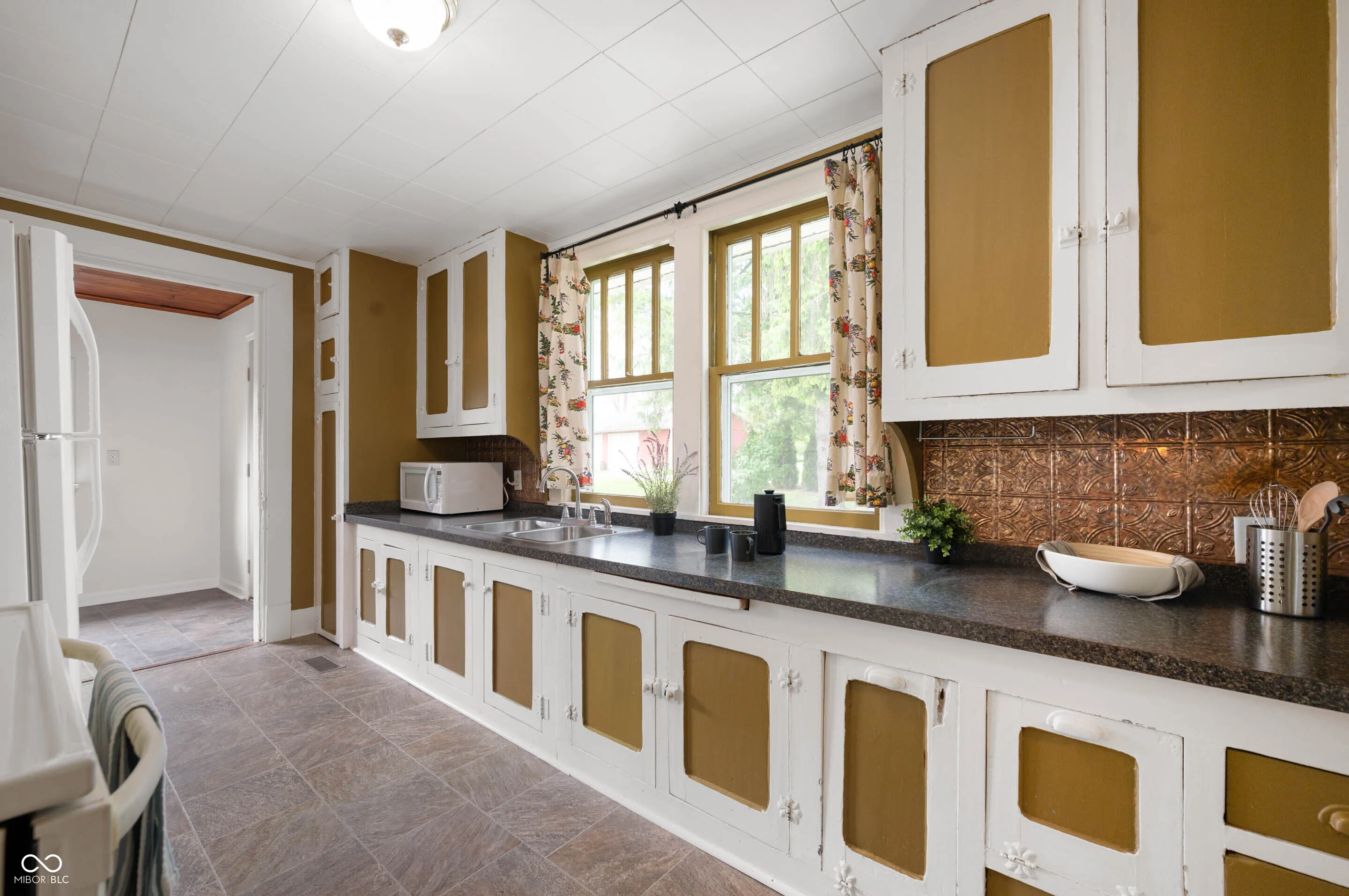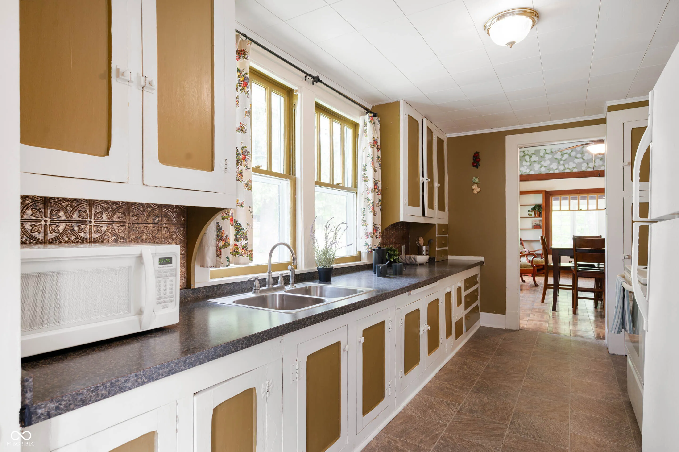 Circa 1935. Charming Bungalow overlooking Nettle Creek in Hagerstown, IN. With 1/2 acre of land, mature shade trees, fire pit by the river, and an above-ground 24′ swimming pool, this is the perfect setting for outdoor entertaining. The home offers 2 bedrooms, spacious home office, 1 full bath, and 1,328 square feet of inviting living space. Filled with natural light, original woodwork, quarter sawn oak detailing, and parquet wood flooring, this home offers warmth and timeless character throughout. The spacious living room, dining room, and kitchen all come together to cohesively create a perfect space for entertaining guests. The enclosed front porch provides a comfortable place for sipping your morning coffee and tending to your house plants. The main level laundry room adds convenience and is equipped with washer and electric dryer included. The unfinished full basement and detached one car garage offers plenty of additional storage space.