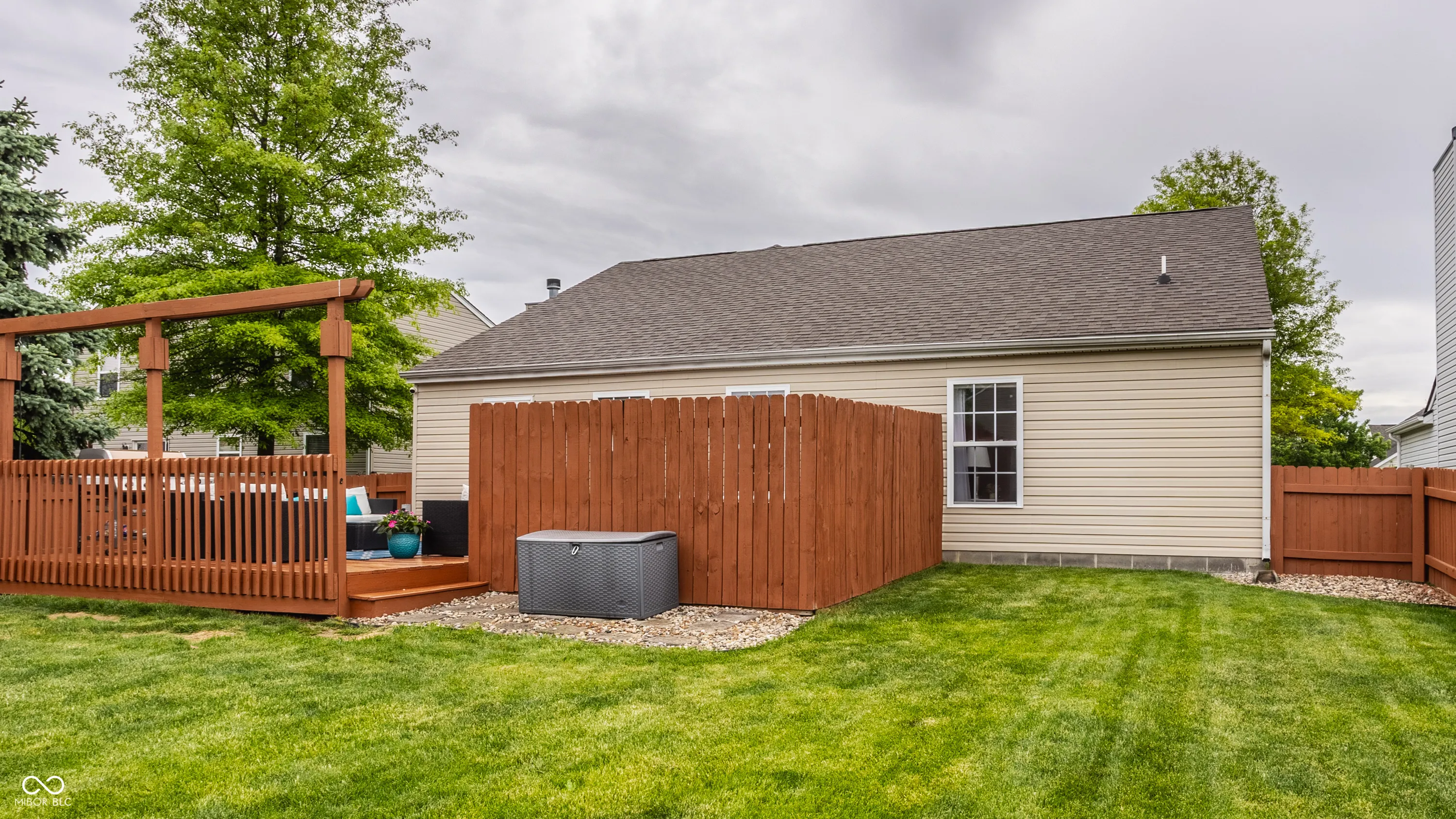 Warm, welcoming, and move-in ready! This 3-bedroom, 2-bath ranch in the popular Sandstone Meadows community is full of charm & ready for you to call home! This pristine home has been updated & lovingly maintained. It features a split floor plan, vaulted ceilings, an open layout, and spectacular backyard! The updated kitchen has newer Samsung ss appliances (2021), elegant wainscoting, & access to a backyard oasis complete with an oversized deck, hot tub w/ privacy wall, sun shades, & privacy fence (new in 2024)! Deck & fence were recently stained and ready to be enjoyed by the new owners all summer long! The great room offers a vaulted ceiling & stunning entertainment center! Primary suite includes a vaulted ceiling, walk-in closet, & ensuite with an extended double vanity. Two additional bedrooms and a full bath offer flexibility for guests, family, or home office. 2 car garage w/ 4 ft bump out offers ample storage! Notable updates: Furnace/AC-2022, Roof-2017, Water Heater-2023, Garage Door & Opener w/ keypad-2018. A quiet neighborhood w/ easy access to walking paths, Brook School Park, and Hamilton Town Center make this updated beauty a real winner!