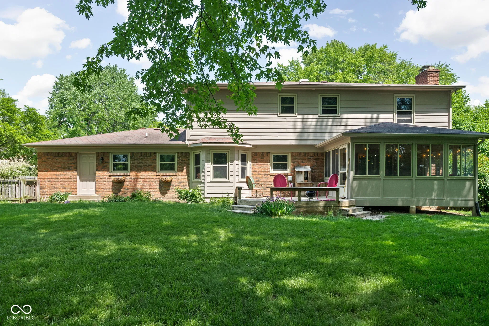Location, location! Enjoy a short bike ride down the Main Street path and you’ll find yourself in the heart of Carmel’s Arts & Design District. Back home at Hawthorne Court, a custom paver walkway welcomes you to this stately and classic red brick home in Carmel’s desirable Cool Creek North neighborhood. Tucked away on a private, wooded, near half-acre lot on a quiet cul-da-sac, the home is perfectly positioned for private living. Come inside the large front door to a great main floor layout with a formal dining room, living room with new oak hardwoods, study, and modern kitchen complete with granite counters and stainless steel appliances. The three seasons sunroom is a relaxing place to start and end your day, and leads out to the expansive, fully fenced-in backyard. Four bedrooms and two full bathrooms upstairs provides many options for families or guests. The finished basement contains another living space and abundant storage. Carmel High School (23 min walk, 6 min bike ride, 2 min drive), Carmel Elementary (30 min walk, 9 min bike ride, 6 min drive), Bovaconti Coffee (33 min walk, 9 min bike, 4 min drive), Bazbeaux Pizza (36 min walk, 9 min bike, 5 min drive). Exterior of home painted in May ’25.