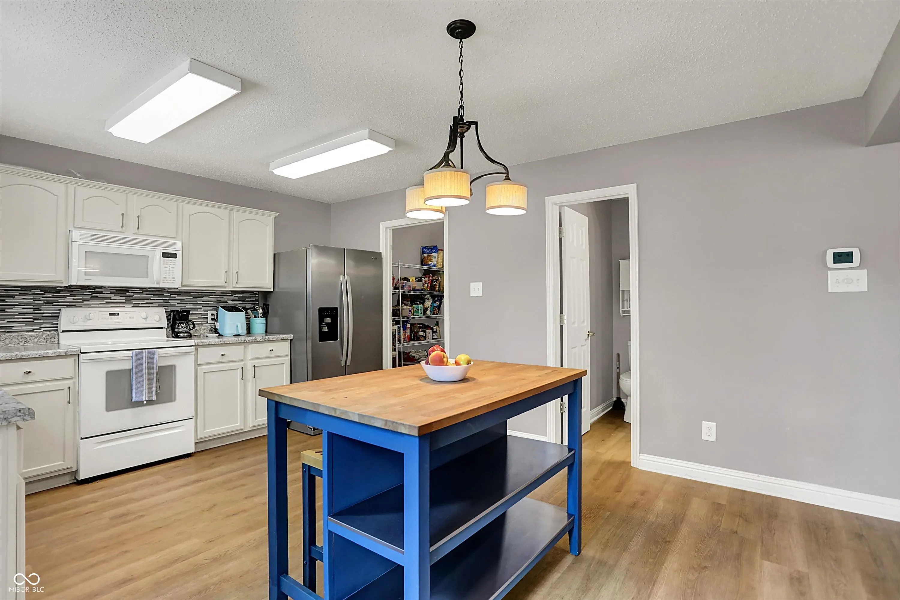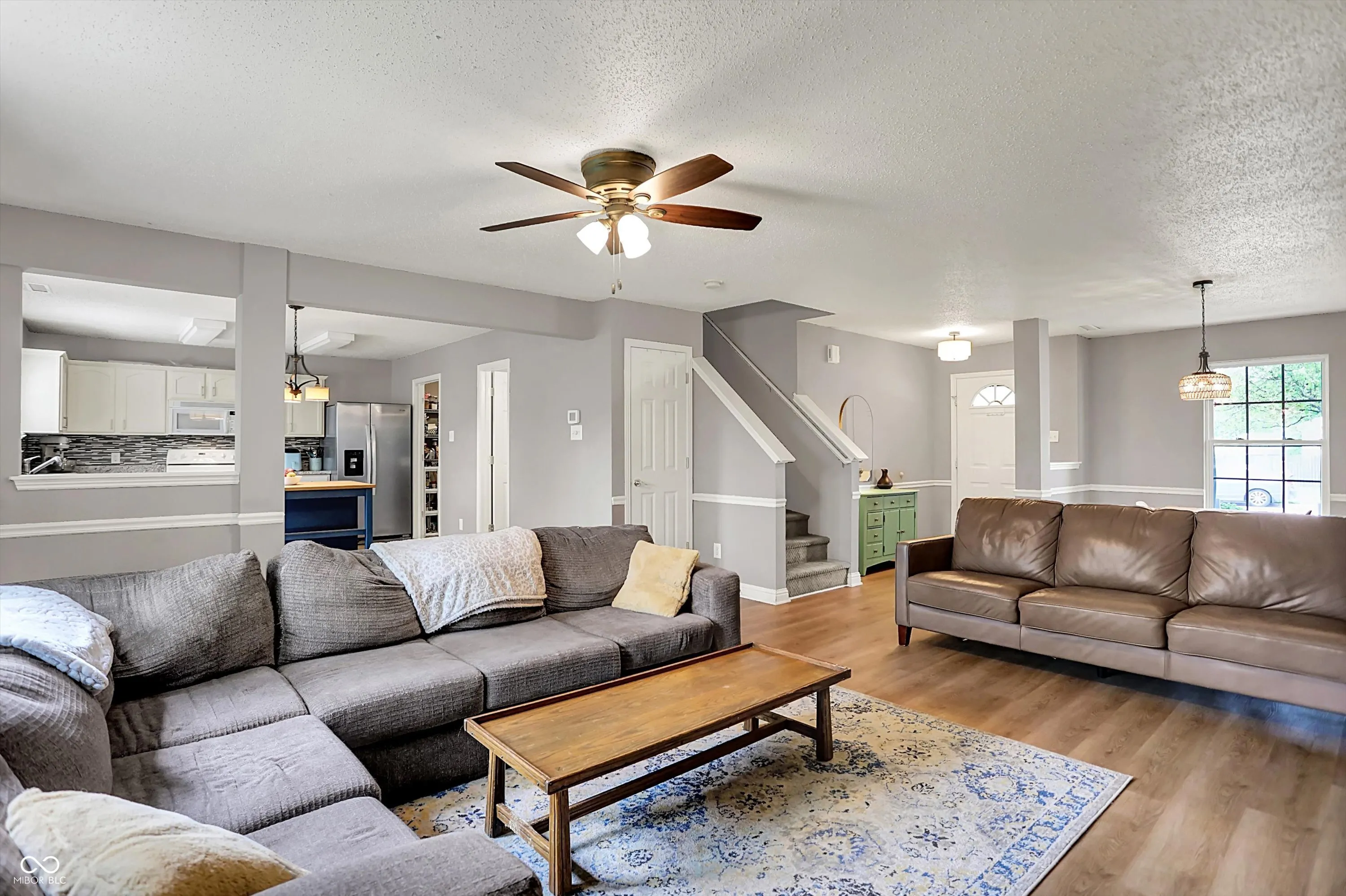 Welcome Home! This Franklin Township, original owner, 3 bedroom, 2.5 bath, two-story is ready for new owners! Walk in to a spacious open concept living room/kitchen/dining area with new (2024) LVP flooring throughout. Tons of natural light from the wall of windows that lead out into a fully fenced private backyard. Enjoy the large kitchen, with new refrigerator and dishwasher(2023). Off the kitchen is the laundry room with pantry shelves and upper cabinets. The 2 car garage has a bump-out allowing for extra storage area and a work bench that stays with house. Upstairs find 3 spacious rooms and a loft perfect for hanging out/playroom/office. The primary bedroom has an ensuite bathroom with double sinks, linen closet, and a GIANT walk in closet. New water softener (2023) and tankless water heater (2023) along with HVAC (2021). New roof and gutters (2024). Convenience is key in this location- close to schools, parks, shopping, and more.