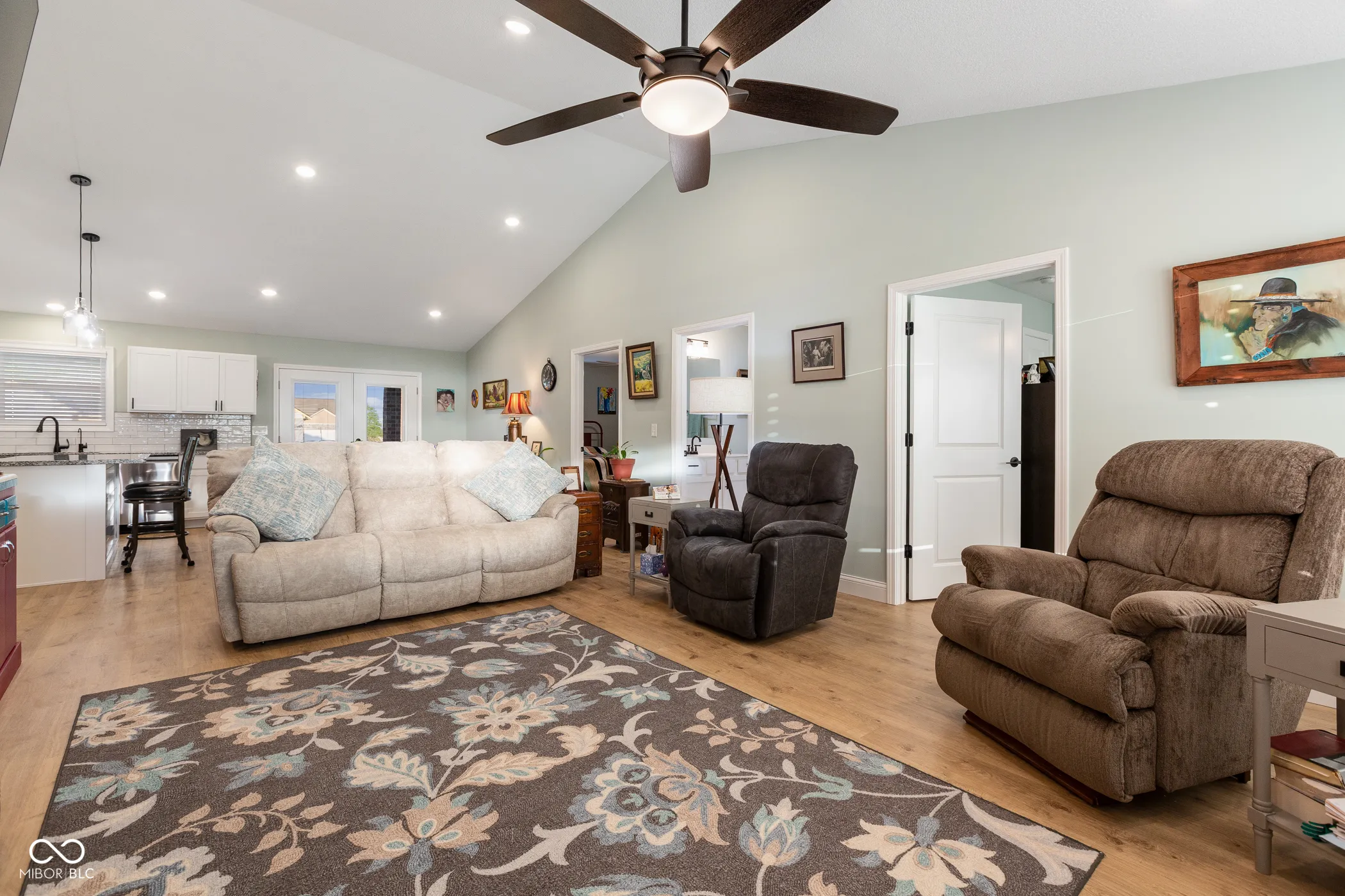 This home is a great choice for those seeking a custom-built, one-owner home offering the perfect blend of rural charm and modern convenience, nestled in a peaceful subdivision just minutes from town. Designed for comfort and functionality, this home features an inviting open floor plan that seamlessly combines traditional living spaces into one spacious area. Step inside and be welcomed by a warm and inviting living room, ideal for casual entertaining, with a beautifully designed fireplace serving as the focal point. The kitchen and dining areas boast a harmonious layout, with the kitchen showcasing elegant granite countertops, a stylish tile backsplash, and ample cabinetry for storage. A generous island provides extensive workspace for food prep while doubling as a casual dining area. Fully equipped with a gas range, refrigerator, dishwasher, and microwave, this kitchen is ready for any culinary adventure. Adjacent to the kitchen, the semi-formal dining space features an exterior door leading to the covered porch, perfect for enjoying the outdoors. The thoughtfully designed split floor plan places the primary bedroom on the north end of the home, offering a sense of privacy. This bedroom includes a walk-in closet and an en-suite bathroom equipped with a handicap-accessible shower. Two additional bedrooms are situated off the living room, with a shared bathroom conveniently positioned between them. The utility room serves as a third bathroom, complete with a handicap-accessible shower and a mud sink, adding extra convenience. Outdoor living is enhanced with a large 12′ x 23′ covered back porch, perfect for relaxing while overlooking the beautifully fenced backyard-a secure space for both pets and children. Additional amenities include a steel storage building, a 16′ x 90′ concrete parking pad ideal for an RV or boat, electrical hookups for a backup generator, a tornado shelter, and a dual heating system that accommodates both propane and electric.