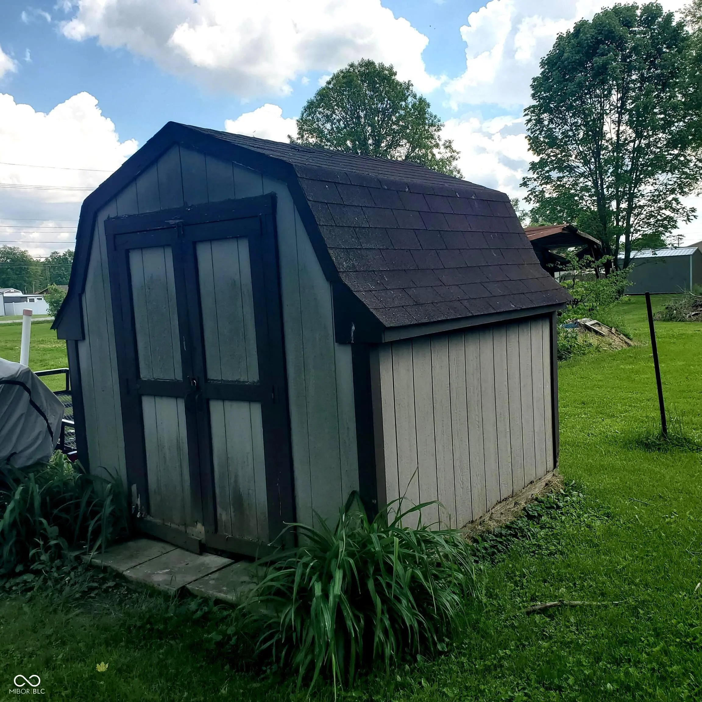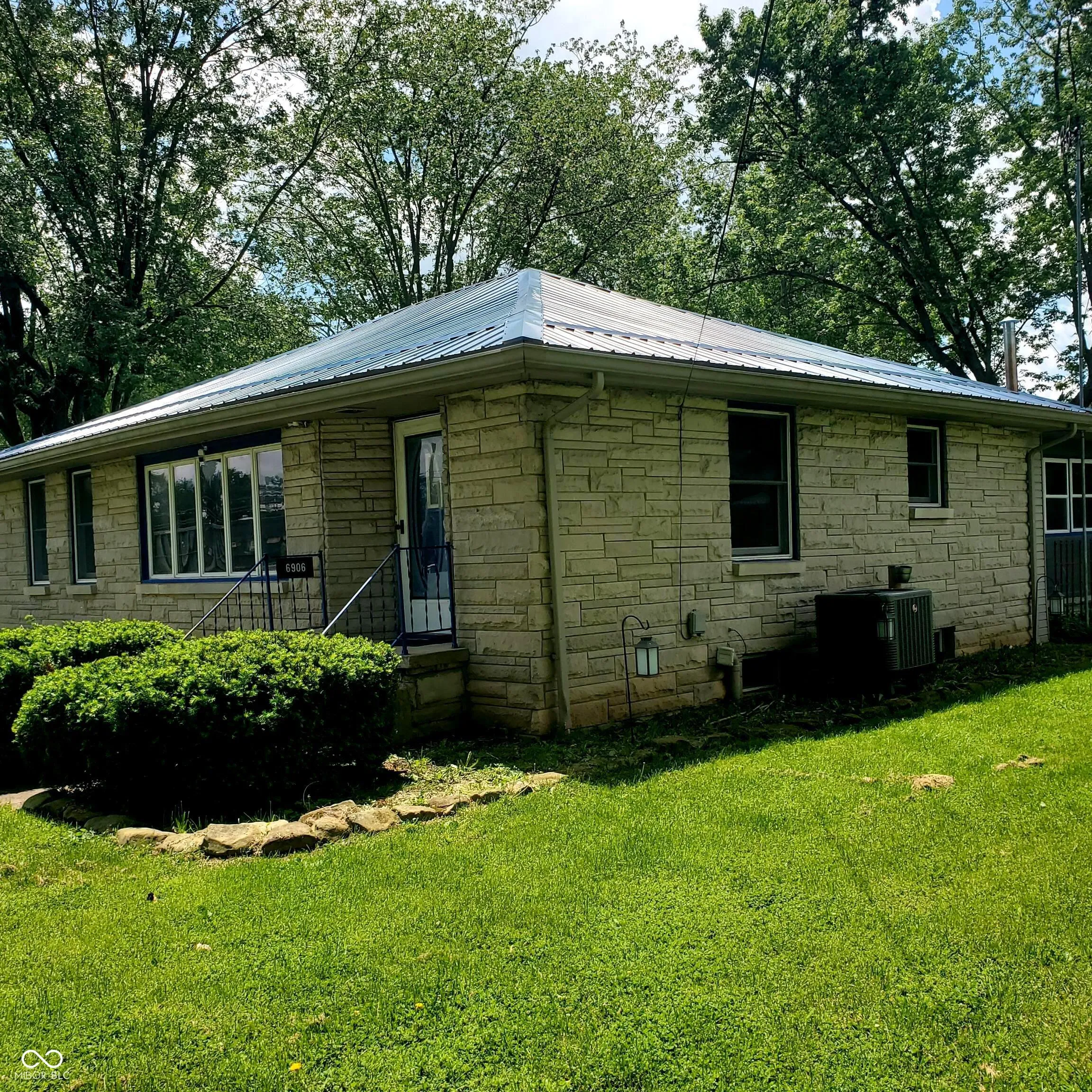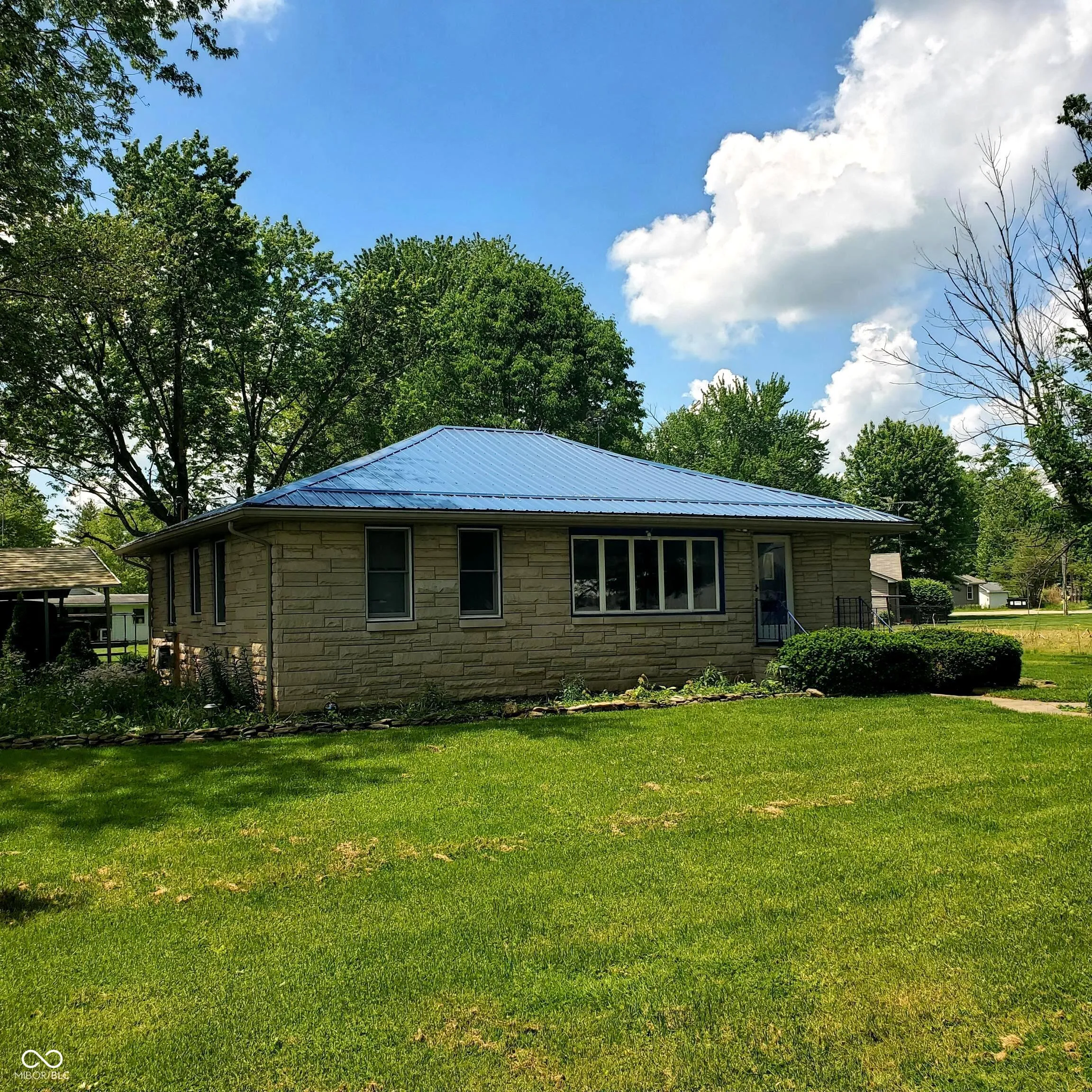 Bedford stone 3 bed, 1 bath home with carport and asphalt driveway for sale in small town. This property has a large lot with mini barn, concrete patio and space to breathe. The home has seen many updates including metal roof, new HVAC system, remodeled bath, water proofing system in the basement and paint throughout. All the appliances go in the kitchen including the new refrigerator. The full basement is sure to be a plus for activity or storage options. The hardwood floor in the living room and hallway is an eye catcher. Now is the time to take a look at your next home with lots of character including a three seasons sunroom with propane log fireplace. This listing makes moving an easy decision!