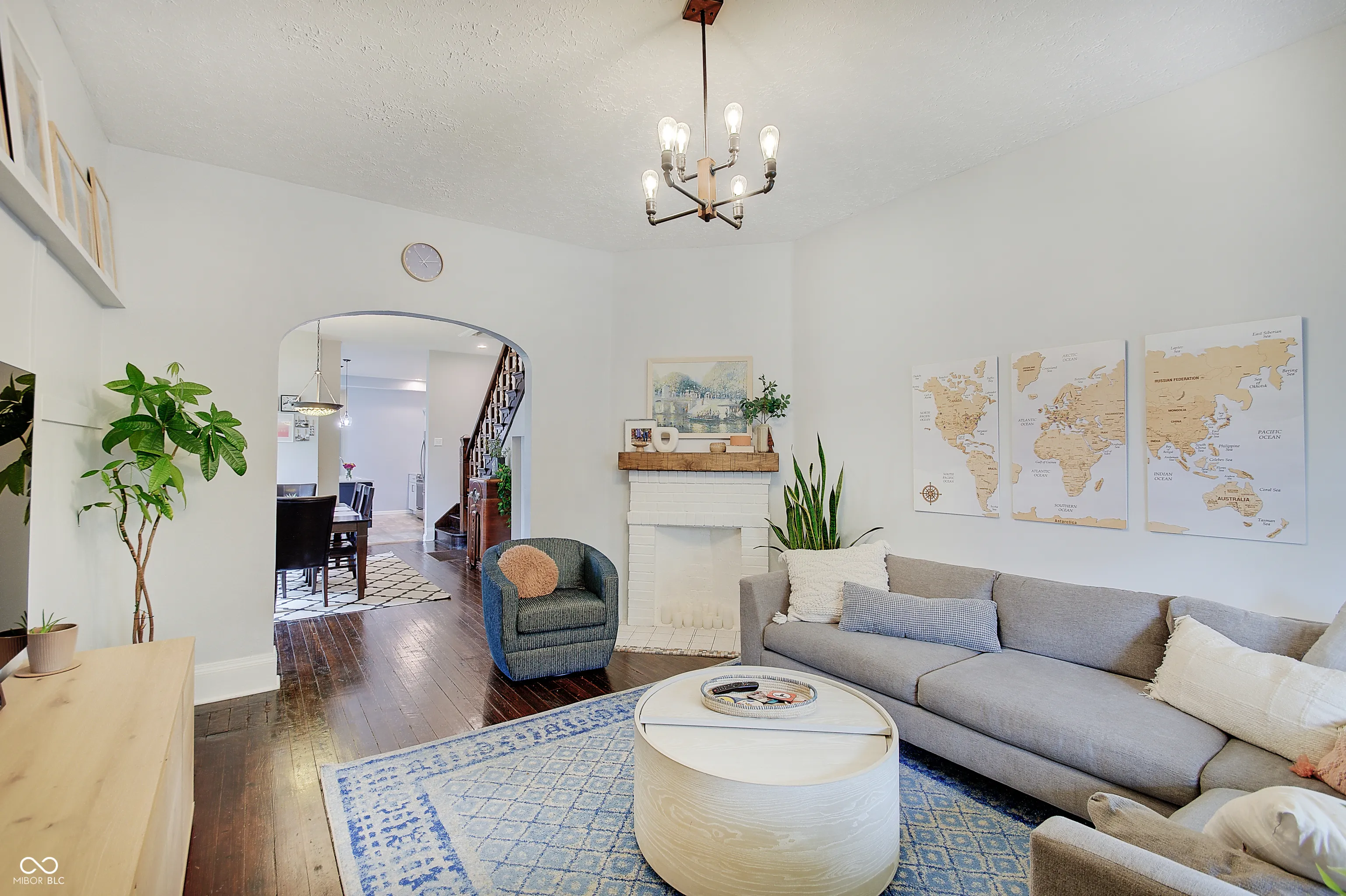 Location, Location, Location! This 3-bed 1.5 bath townhouse with nearly 2,000 square feet is located in one of Indy’s most desirable neighborhoods-Chatham Arch, and puts you just steps away from Mass Ave, Bottleworks, and much more. Upon entering, you’ll appreciate the original hardwood floors, arched doorway, the ornate wooden staircase, and the oversized windows that flood this home with natural light. You will fall in love with this recently renovated kitchen featuring custom Kraftmaid cabinets with pull-out shelves, stainless steel appliances, updated hardware and faucet/sink, gorgeous quartz countertops, backsplash, and lighting. The corner bench is the perfect location for you to add a small table to offer a cozy nook for meals or coffee. Thoughtfully designed built-ins include two Murphy beds-one in the third bedroom and another in the rear of the home-offering versatile living and guest space. All three bedrooms upstairs with an oversized full bath and laundry for added convenience. Enjoy relaxing evenings on the swing located on the covered front porch or entertain on the back deck in the fully fenced yard. All appliances, washer/dryer, water softener, and R/O system included.