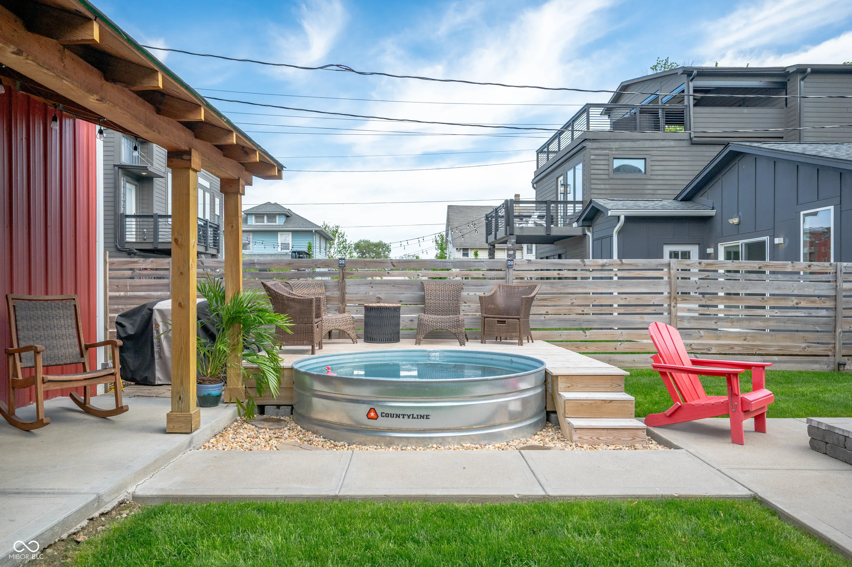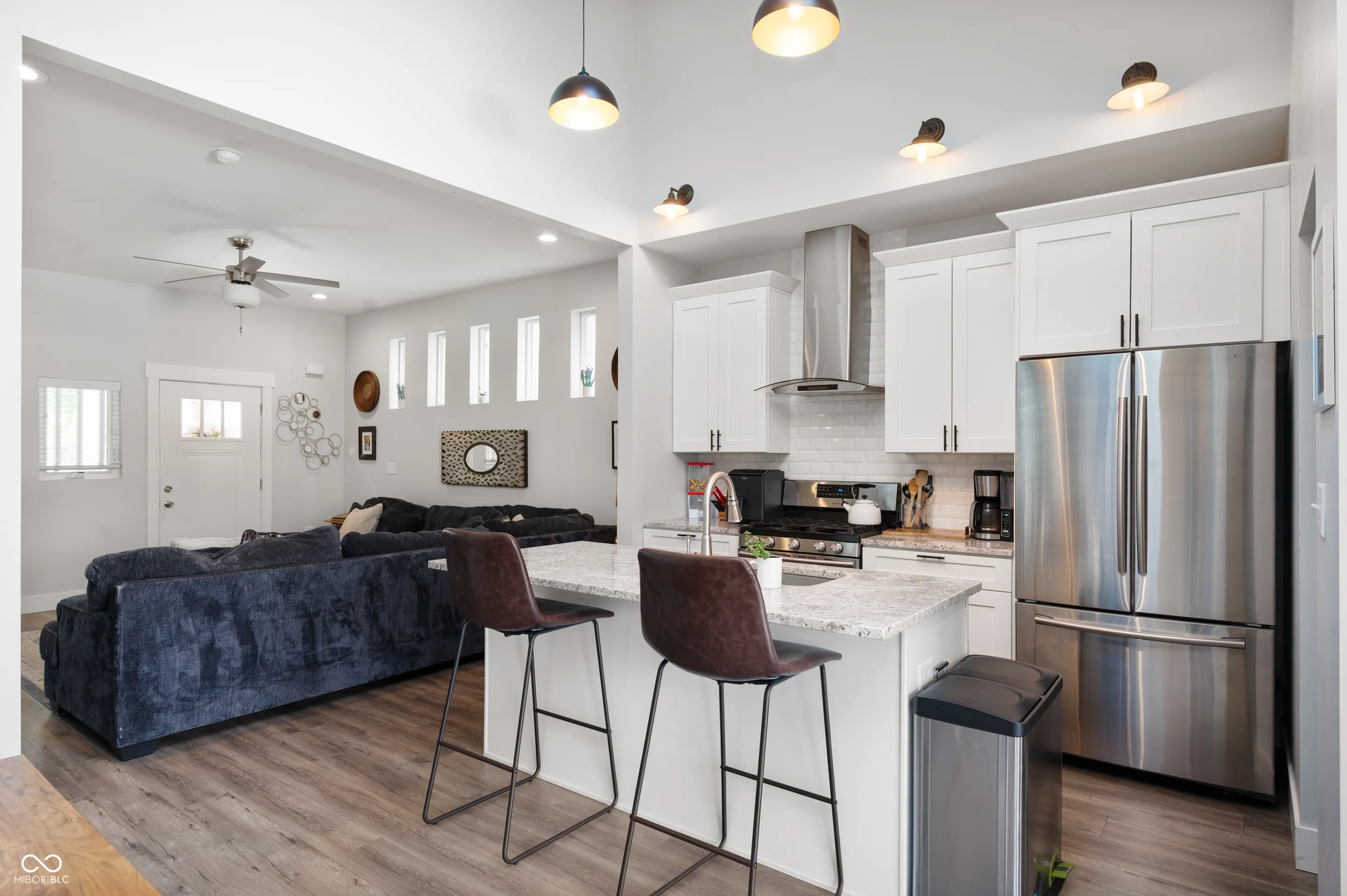 1310 Olive Street | Fountain Square Charm Meets Modern Comfort Fully renovated 3 bed, 2.5 bath home in the heart of Fountain Square featuring soaring ceilings, abundant natural light, and a layout designed for modern living. The open-concept main level flows seamlessly into a stunning kitchen with granite counters, a large island, walk-in pantry, dual open patio doors, and a hidden speakeasy-style spot for special occasions. The main-floor owners suite includes a tile shower, dual sinks, and a walk-in closet. Upstairs, you’ll find two additional bedrooms, a full bath, and a cozy loft-perfect for a home office or reading spot. Step outside to your private retreat with a custom deck, fire pit, outdoor TV area and stock tank pool. This outdoor space is a perfect setting to unwind and share time with family and friends. The oversized garage includes a heated/cooled 23×8 exercise room/flex room with padded floors and additional second-floor storage option. Walk to Upland Brewery, Kumas Corner, Bovacanti Coffee, and all the local spots Fountain Square has to offer. A rare blend of thoughtful design, outdoor living, and unbeatable location. Short 2 mile bike to Mass Ave, Downtown and Monon access by Bottleworks. Short walk to Lucas Oil, Gainbridge or The Circle.
