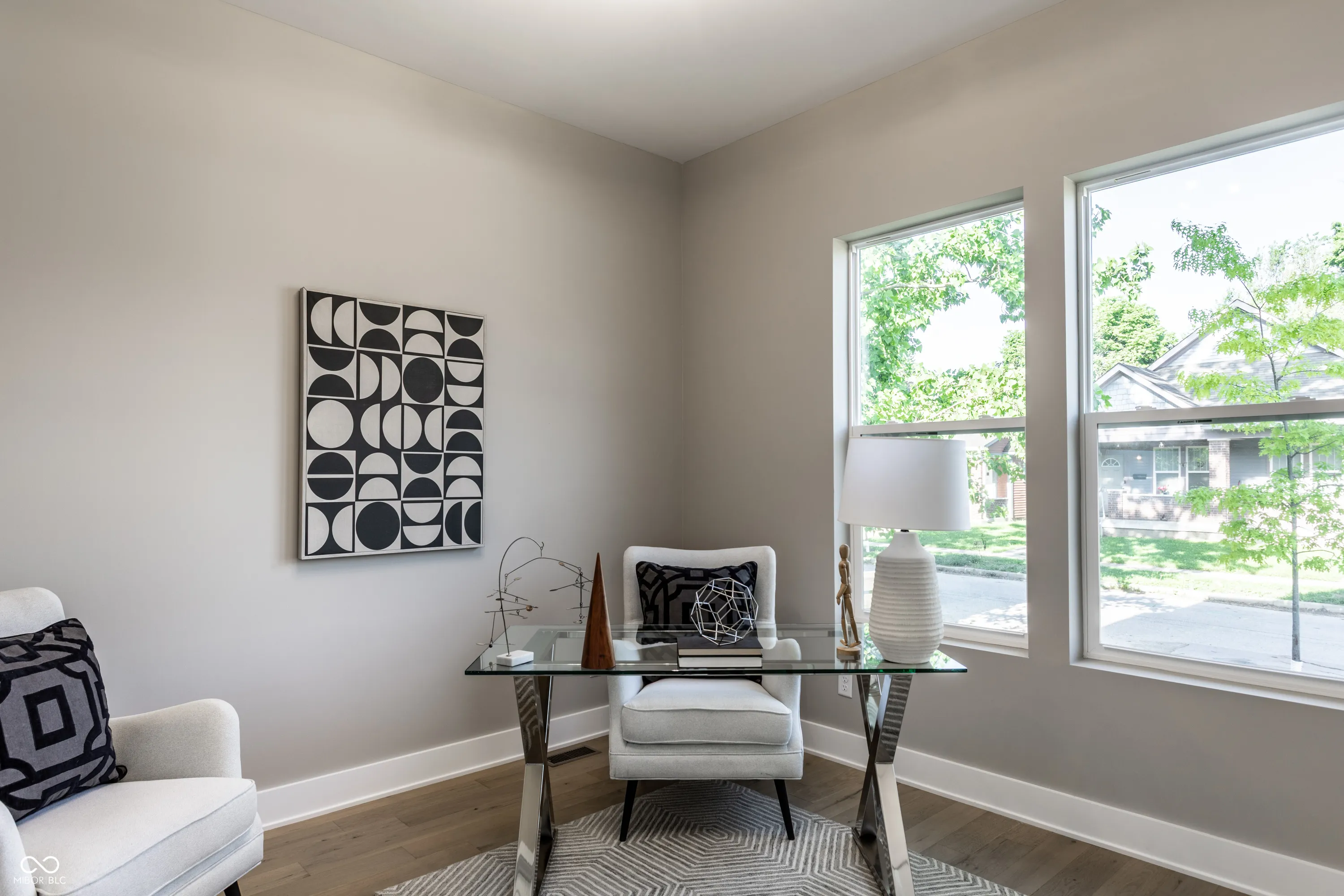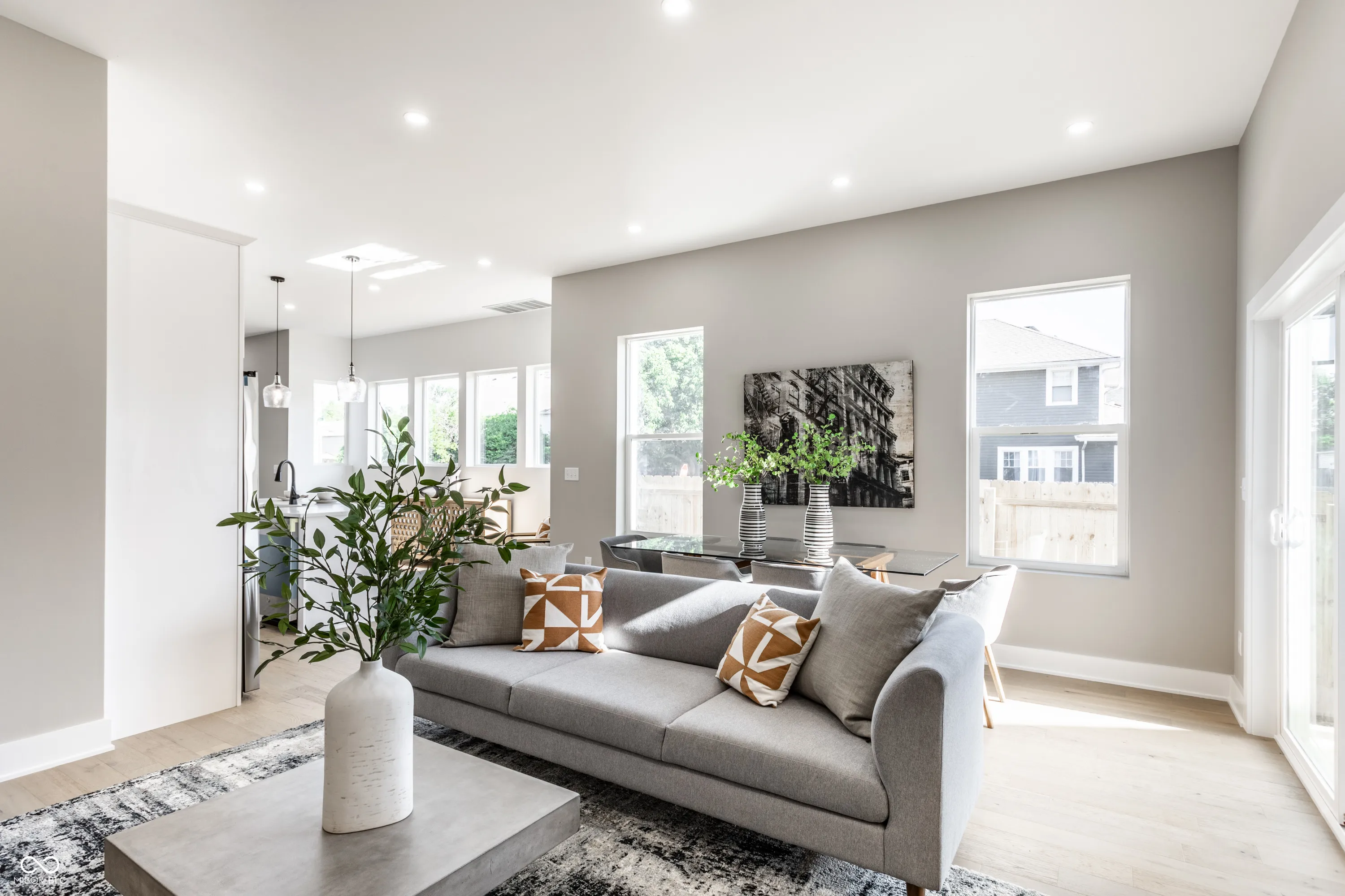 Discover modern living in this stunning 3 bedroom, 3 bath new build in one of Indy’s hottest up and coming neighborhoods. This home features an open-concept layout with soaring 10-ft ceilings, a main level bedroom/office space, stylish eat-in kitchen with large center island, and a sunlit loft with wet bar-perfect for entertaining or relaxing with family and friends. The primary suite is highlighted by a spa-like bath, oversized walk-in closet, and balcony. Enjoy a private fenced backyard, detached 2-car garage, and contemporary finishes throughout. Easy access to urban amenities, parks, walking trails, and a vibrant community all add to the allure of calling this house your new Home.