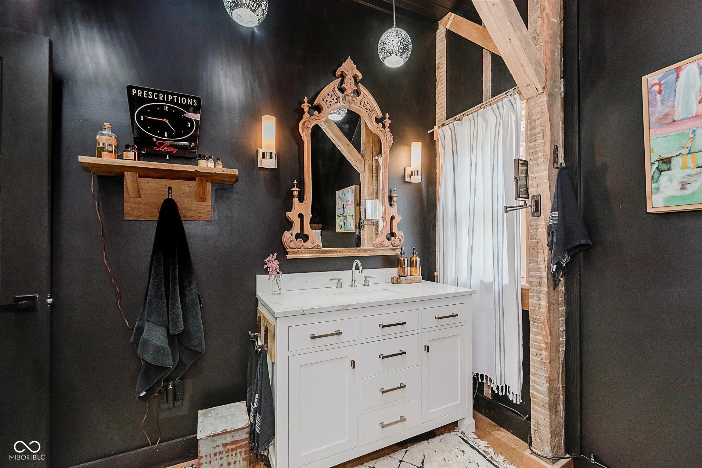Stunning 1-of-a-kind decor in this circa-1870s historic timber frame home in the heart of Old Town Noblesville. 4BR/3BA with a BR & full BA on 1st floor. Totally renovated with an eye toward design. All new kitchen, baths, roof, windows, dual HVAC & mechanical systems. Timber frame elements exposed throughout the home with new hardwoods, light fixtures, fireplace. Hardwoods or tile in every room of home. More room and storage than can be conveyed on listing. Original open front porch and private backyard social spaces, including fire pit area. Garage has 220 that can accommodate an electric car charger. Walkable/bikable to parks, restaurants & shopping, concert venues and every level of school from Kindergarten to college.