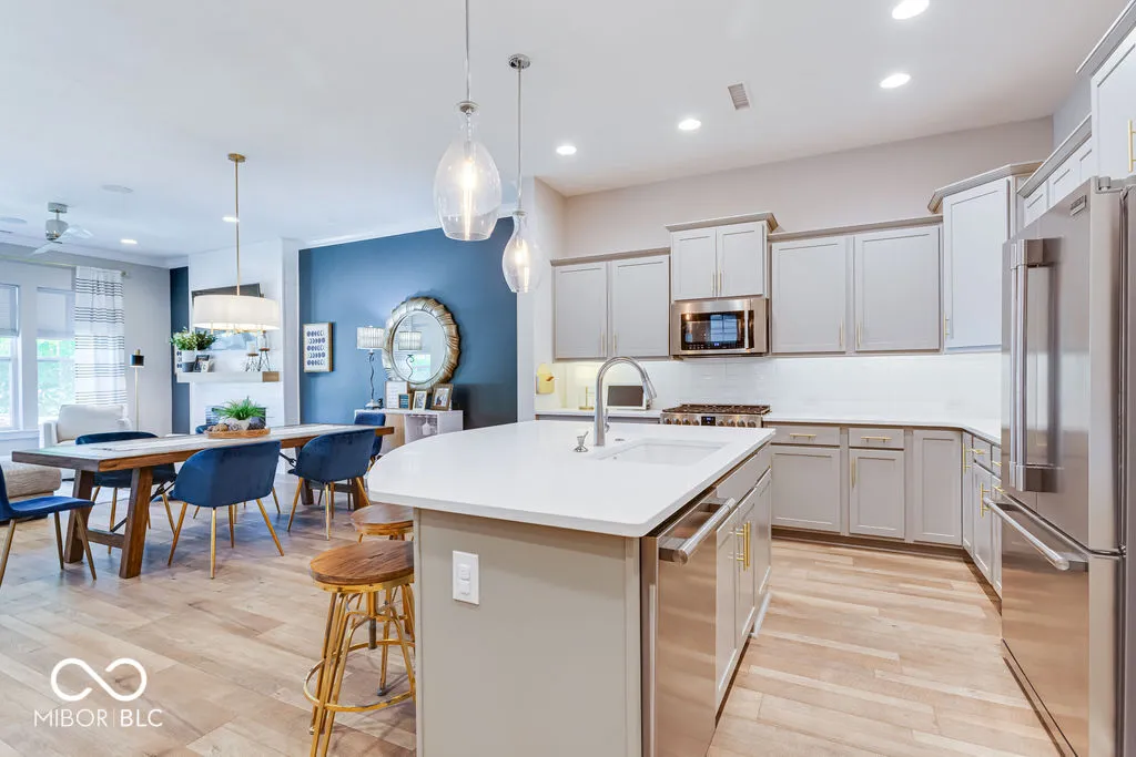 This impeccably maintained townhome shows like a model and still feels new! With three bedrooms, two full baths, two half baths, and three finished levels, it offers spacious, low-maintenance living. The main level features a stunning kitchen with an oversized quartz island, stainless steel appliances, gas range, and is open to the dining area and family room with a cozy fireplace. Ten-foot ceilings create a bright, airy feel. Upstairs, the primary suite includes a beautifully tiled shower, oversized walk-in closet and dual vanity. The second level has two additional bedrooms, a full bath, laundry, and a loft area currently used as an office. The third level offers a large bonus room and half bath-perfect as a second office, workout space, or guest retreat. The two-car garage includes epoxy floors, extra storage, and a dedicated electric car charger outlet. Relax on your private patio or socialize at the community patio and grilling area. Walk to nearby restaurants, gym, park, nature area, beach or trails.