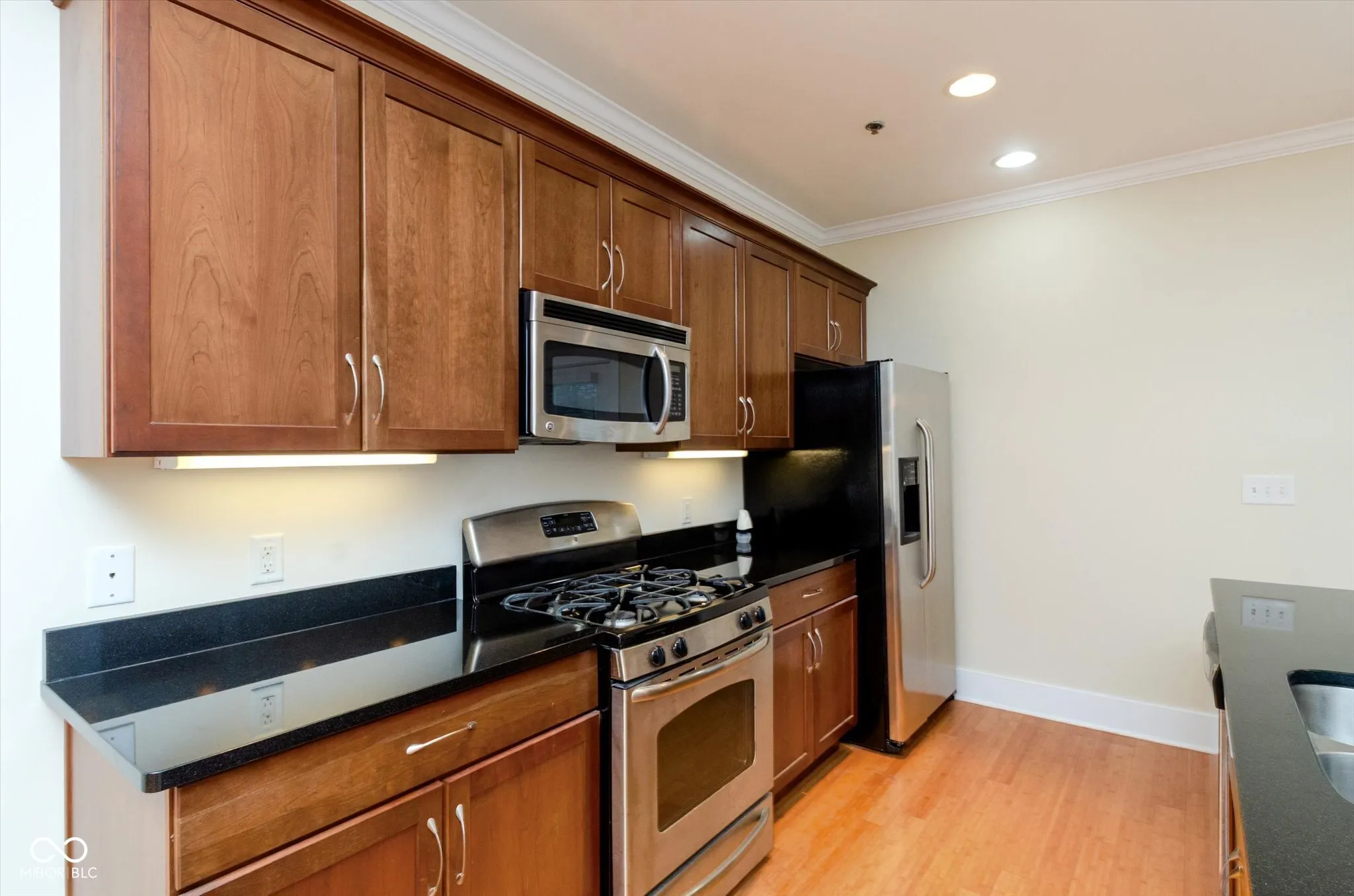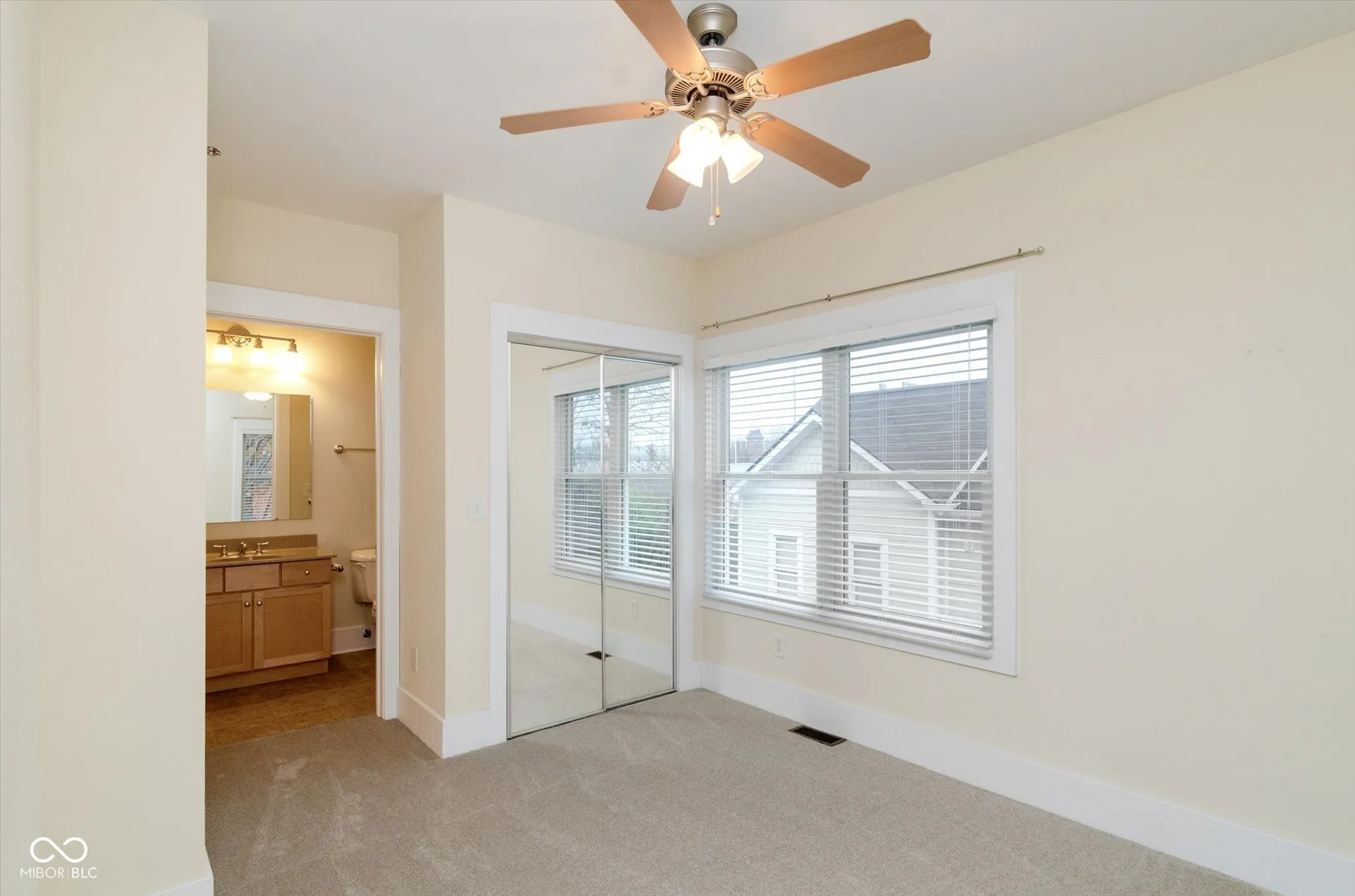 This is a fabulous, move-in-ready condominium with close proximity to Mass Ave, Fountain Square, Lucas Oil Stadium, Gainbridge Fieldhouse, and all that downtown Indianapolis urban living has to offer! Tons of natural light in this home come from its placement on the east end of the building, with windows on three sides! An oversized two-car garage with storage accesses the home from the lower level into your office or family room! The main level includes real hardwood flooring, a great room with a gas log fireplace, and a kitchen with custom cabinets, granite countertops, stainless steel appliances, a huge island with a breakfast bar top, pendant lighting, and a rear balcony! The top level of the home has two private bedroom suites with their own bathrooms! The primary suite has a jetted, large oval tub for luxurious relaxation and a large tile walk-in shower! This home is a must-see!