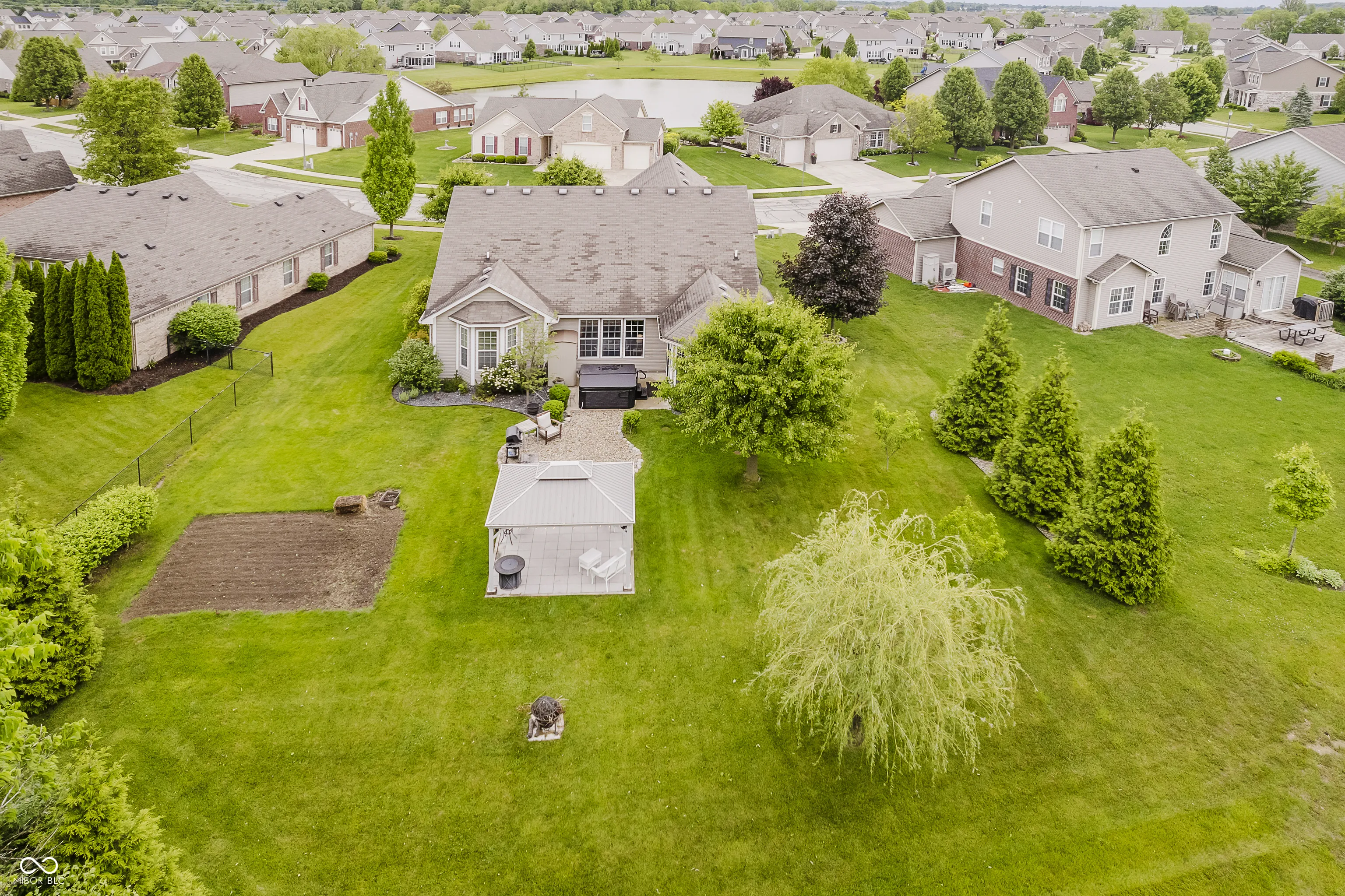 Sprawling & Spacious Geist Lake area ranch on amazing piece of property! What an incredible home site to enjoy, private treeline and tranquil pond setting, the backyard setup with concrete patio plus covered porch in the backyard just adds total backyard enjoyment & privacy, inside the home you will find a sun filled ranch boasting 9-ft ceilings, flexible open floor plan, and laminate hardwoods throughout. Features 3 bedrooms plus a large bonus room (could be used as a 4th bedroom). All bedrooms have walk-in closets. The primary suite includes a garden soaking tub, separate shower, and double vanity. Enjoy granite kitchen counters, a breakfast nook, and a formal dining room. The cozy hearth area has a vent-less gas stone fireplace that efficiently heats the living space. Relax year-round in the sun room. Situated on one of the largest lots, with peaceful views of the pond and tree line. The backyard sun shelter includes electricity, fans, and lighting-perfect for entertaining. A charming front pergola adds curb appeal. This home offers the newness of today’s floor plans while still holding onto its charm. Very good room sizes, the homes interior window arrangements help bring outside nature into the interior space of the home, the 2 car garage has bump out on the side offering additional storage space, the location of the home is perfect close to Geist Reservoir and all the restaurants that both Fishers and Fortville has to offer.