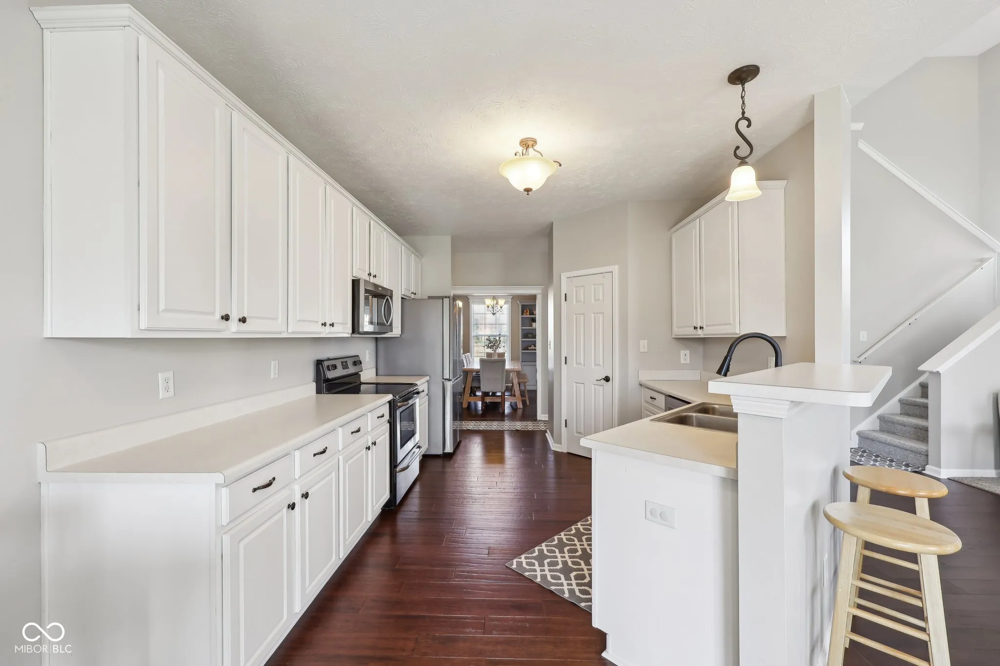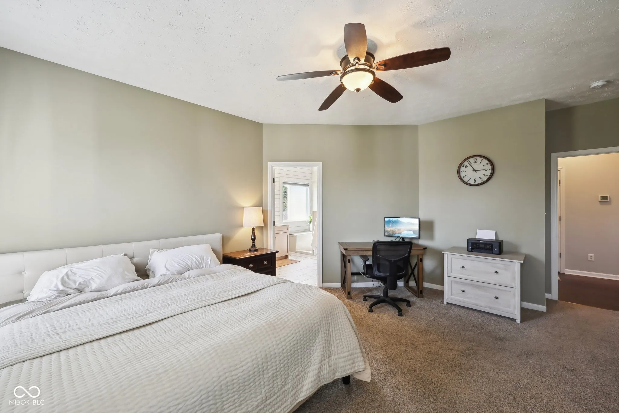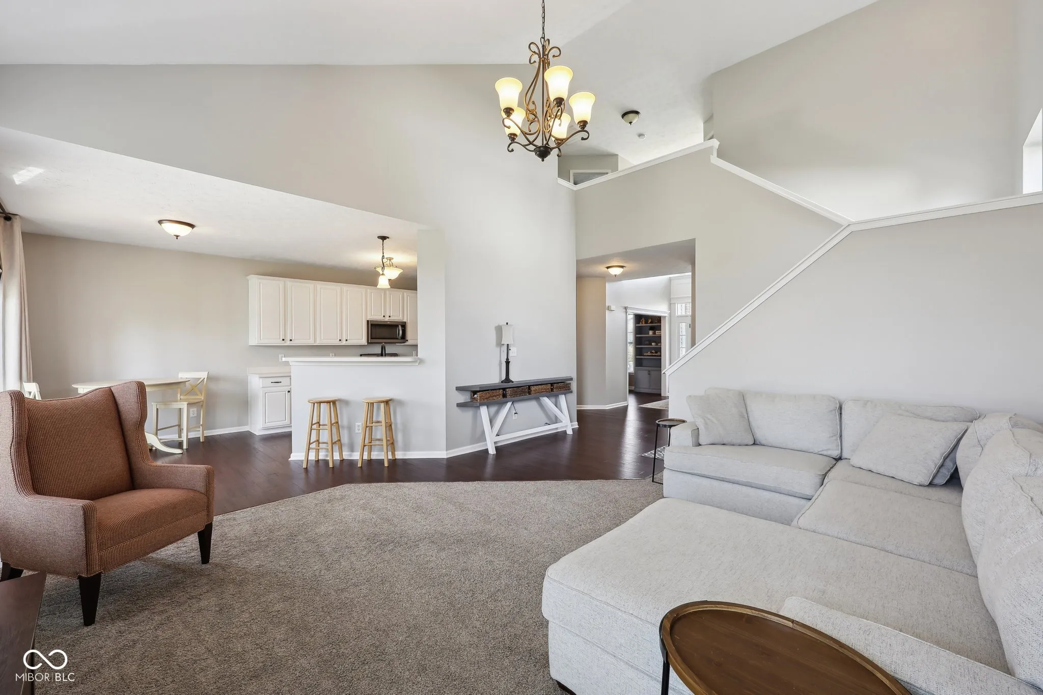Sought after brick and shake shingle home in Carmel’s Lakes at Hayden Run! This home has it all, great curb appeal with lush landscaping, three car garage and spacious driveway. Two story entry with tons of natural light. Office/5th bedroom and formal dining room with custom wainscotting wall lead you to vaulted great room has stacked stone fireplace and wall of windows. Breakfast room/kitchen features beautiful white cabinets, breakfast bar, stainless appliances and pantry. Main floor owners suite, owners bath recently updated with stunning light colored vanity, double sinks, tile floors and walk in custom shower. Newly customized walk in closet with built in shelving and drawers. Laundry with cabinets, shiplap and butcher block countertop. New engineered hardwood floors thru out main, new carpet and updated trim package. Three additional spacious bedrooms up, one being used as loft/rec space. Relaxing covered rear deck with wood ceiling and custom columns overlooks private rear fenced in yard! Roof, gutters and downspouts – 2021, HVAC -2017, Water Heater 2021. This home is move in ready!