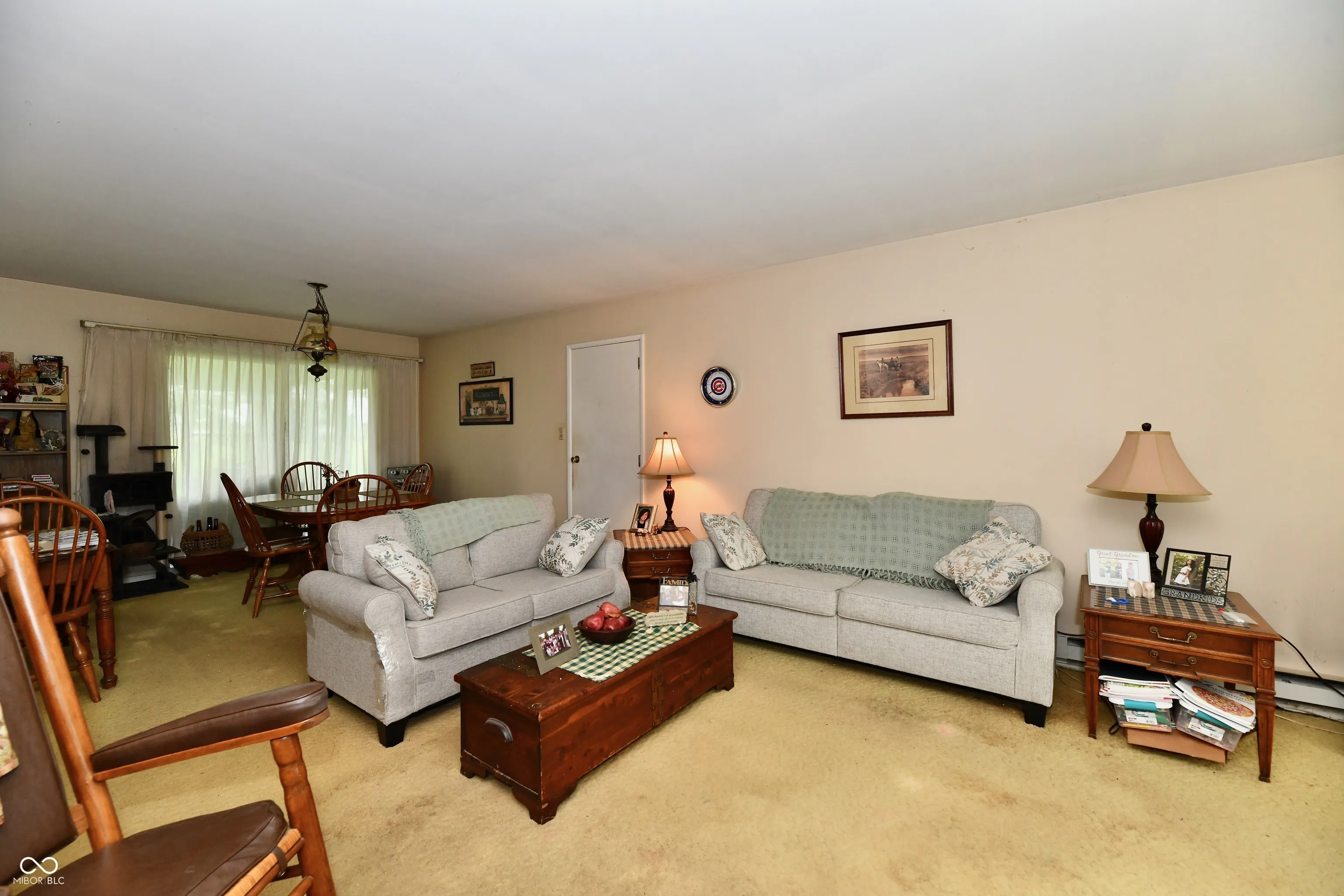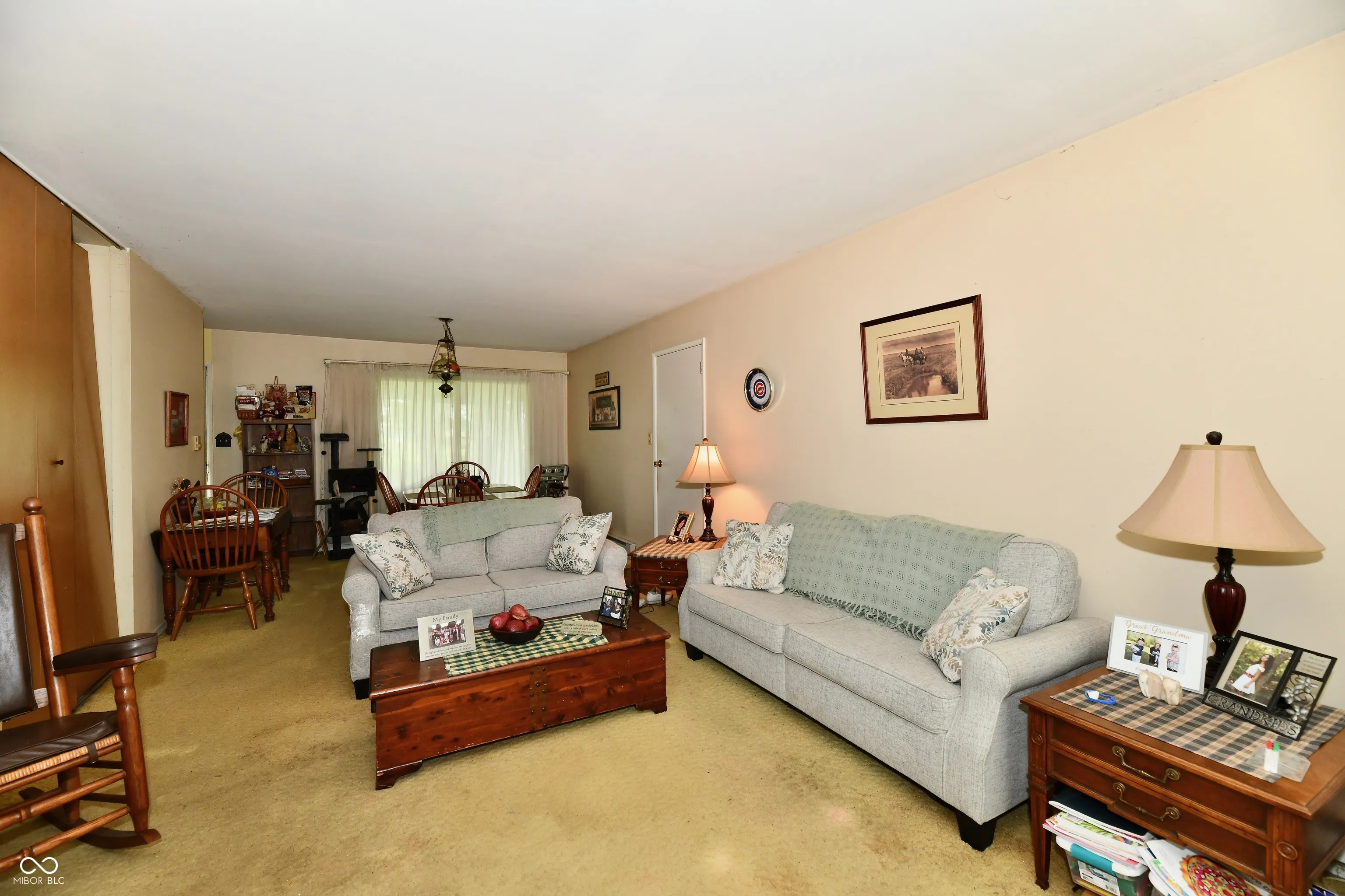 This charming ranch-style home, built in 1958, offers 1,305 square feet of living space. It features three bedrooms and two bathrooms, sitting on .59 acre lot, ideally situated in a prime location with picturesque views of the golf course right from your front yard, creating a tranquil setting. The combined living and dining room area is perfect for entertaining, offering ample space for gatherings. The home boasts a convenient circular floor plan, enhancing accessibility and ease of movement. The expansive backyard provides an ideal canvas for outdoor activities, gardening, or creating your personal oasis, and the three season room, making it perfect for morning coffee or evening relaxation.