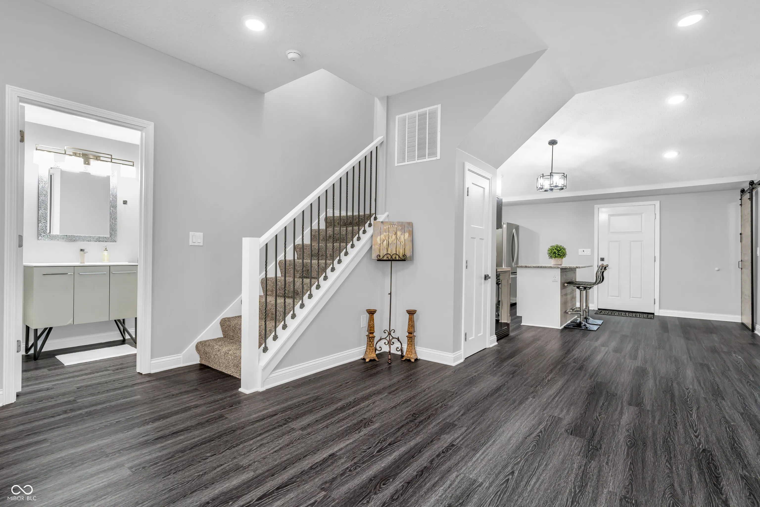 This Beautiful Home is Basically ALL New everything. This one was taken down to the studs and even most studs were replaced, Roof, Walls, Plumbing, Electric, Mechanics, Flooring, Bathrooms, Doors and Even the kitchen Sink “Everything”. Leaf Gutter system has been added & water softener (Paid Included), Washer & Dryer! Truly a turn key Home in the Heart of Danville just 2 Blocks off the square. Very low traffic and quite street. The walkability is a 10 and attached garage make it super convenient. Modern slick features really sets this one apart and who doesn’t enjoy an oversized front porch for sipping coffee & waving to walkers by. Inside includes 2 beds on the main and 3rd Upper bed with a small loft area. The Primary bedroom is a lovely suite with a Spa Like bathroom, dual sinks, Large glass shower with multiple jets shower head, Bluetooth light/fan, Beautiful Lg soaking tub & HUGE walk in closet with custom cabinetry added and laundry area which is so nice! Don’t miss this opportunity to have something In Town with No worries of conditions because it’s been rebuilt with modern standards.