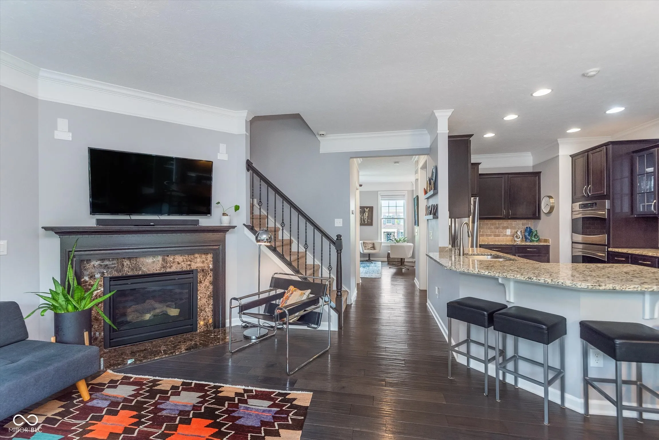 RARE 4-BEDROOM townhome in the heart of Carmel’s Village of West Clay — one of Carmel’s most desired neighborhoods! This spacious, low-maintenance living, townhome offers three levels of flexible living space to fit your lifestyle. On the lower level, you’ll find a 4th bedroom/office, full bath, and access to the attached 2-car garage (plus upgraded 120v and 220v outlets-perfect for EV charging or workshop space). The main level is made for entertaining, with a large open-concept kitchen, dining, and living space. The kitchen features granite countertops, a gas cooktop, GE Profile stainless appliances, and a breakfast nook with bonus storage and two beverage/wine fridges. Cozy up by the gas fireplace or step out onto your rear patio. There’s also a second living/family room on this level for added flexibility. Upstairs, you’ll find the primary suite, two additional bedrooms, a full bath, and laundry right where you need it for your convenience. Recent updates include a new roof (2022), water heater and softener (2025), and a finished 4th bedroom (2023). HOA covers all exterior maintenance-including windows and deck replacement, plus snow and leaf removal. Living in the Village of WestClay means access to pools, parks, clubhouses, tennis, pickleball, walking trails, and so much more-all in a beautiful, walkable neighborhood with top-rated Carmel Clay schools. No HOA leasing restrictions.
