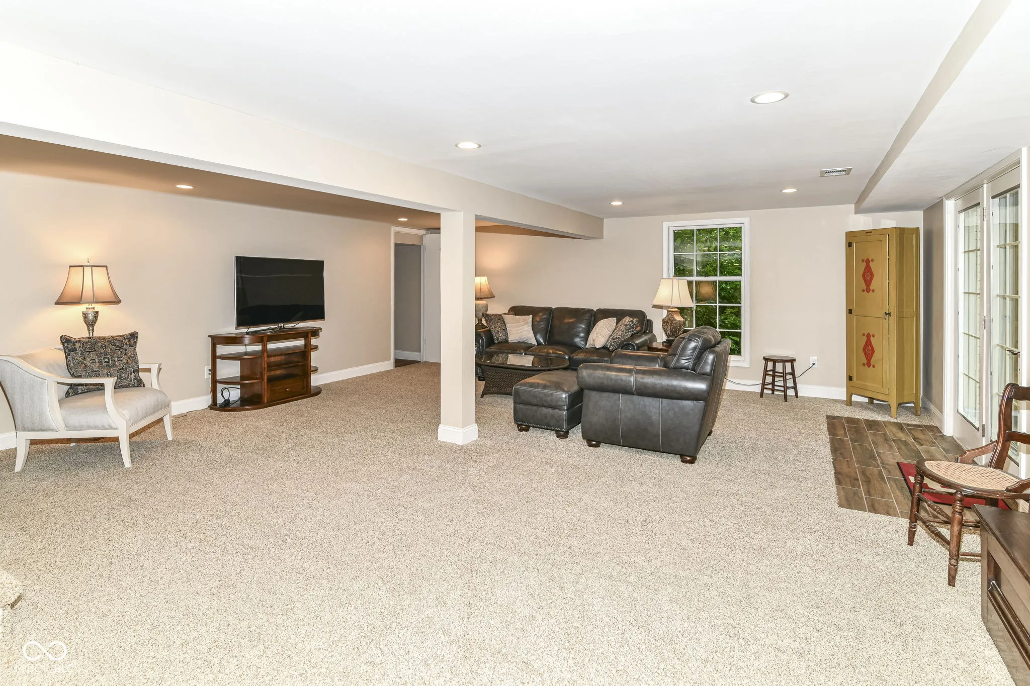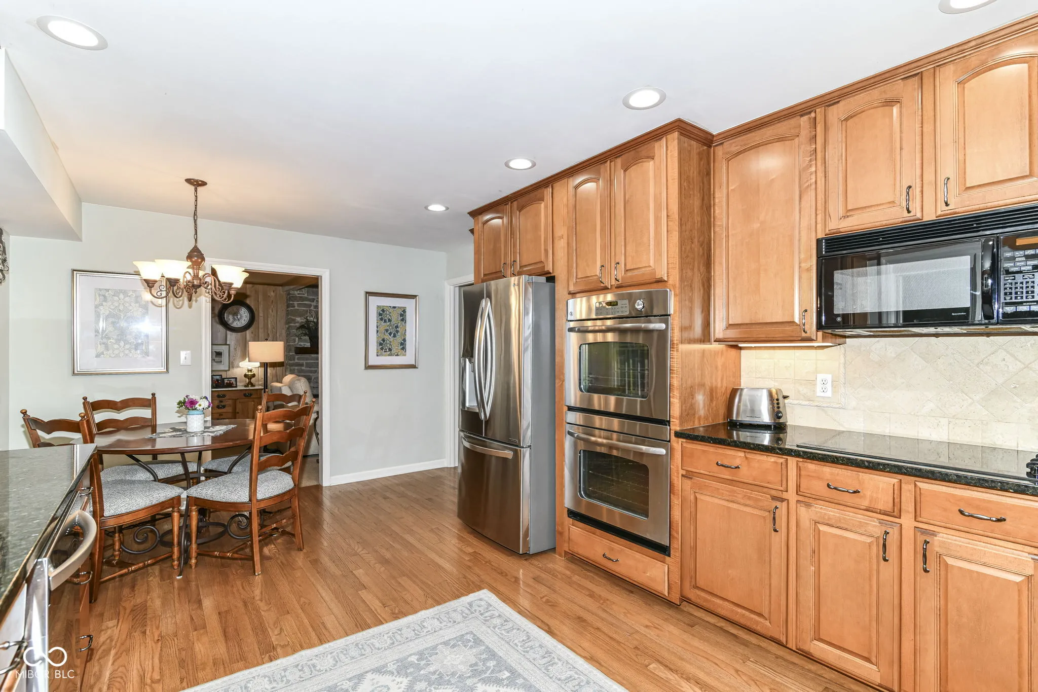 First time on the market in over 40 years! Nestled on over an acre in the highly sought-after Avalon Hills neighborhood on Indianapolis’ northeast side, this beautifully maintained home radiates pride of ownership and timeless charm. Thoughtfully designed and built to last, the home features four generously sized bedrooms upstairs, plus a main-level guest or in-law suite with direct access to the back deck and pool – ideal for multi-generational living or visiting guests. The main level offers a warm and inviting family room, showcasing a stunning stone fireplace, exposed beam ceilings, and rustic wood-paneled walls that add a touch of farmhouse character. The recently updated kitchen boasts 42″ upper cabinets for added storage, granite countertops, a double oven, and sleek stainless steel appliances – perfect for everyday living and entertaining alike. Step out to the spacious screened-in porch, where you can relax and take in views of the lush, professionally landscaped gardens and sparkling in-ground pool. The tree-lined backyard offers a private and peaceful retreat, ideal for summer gatherings, quiet mornings, or lively cookouts. The expansive pool deck provides ample space for entertaining, and just beyond it, a stairway leads to a wooded and grassy play area – perfect for kids or nature lovers. The walkout basement extends your living and entertaining space, complete with a second fireplace, a wet bar, and a remodeled half bath, along with easy access to the pool area. Upstairs, you’ll find spacious bedrooms, including a generously sized primary suite featuring a walk-in closet, a beautifully updated bathroom, and a private balcony that overlooks the serene backyard and pool – your own personal oasis.
