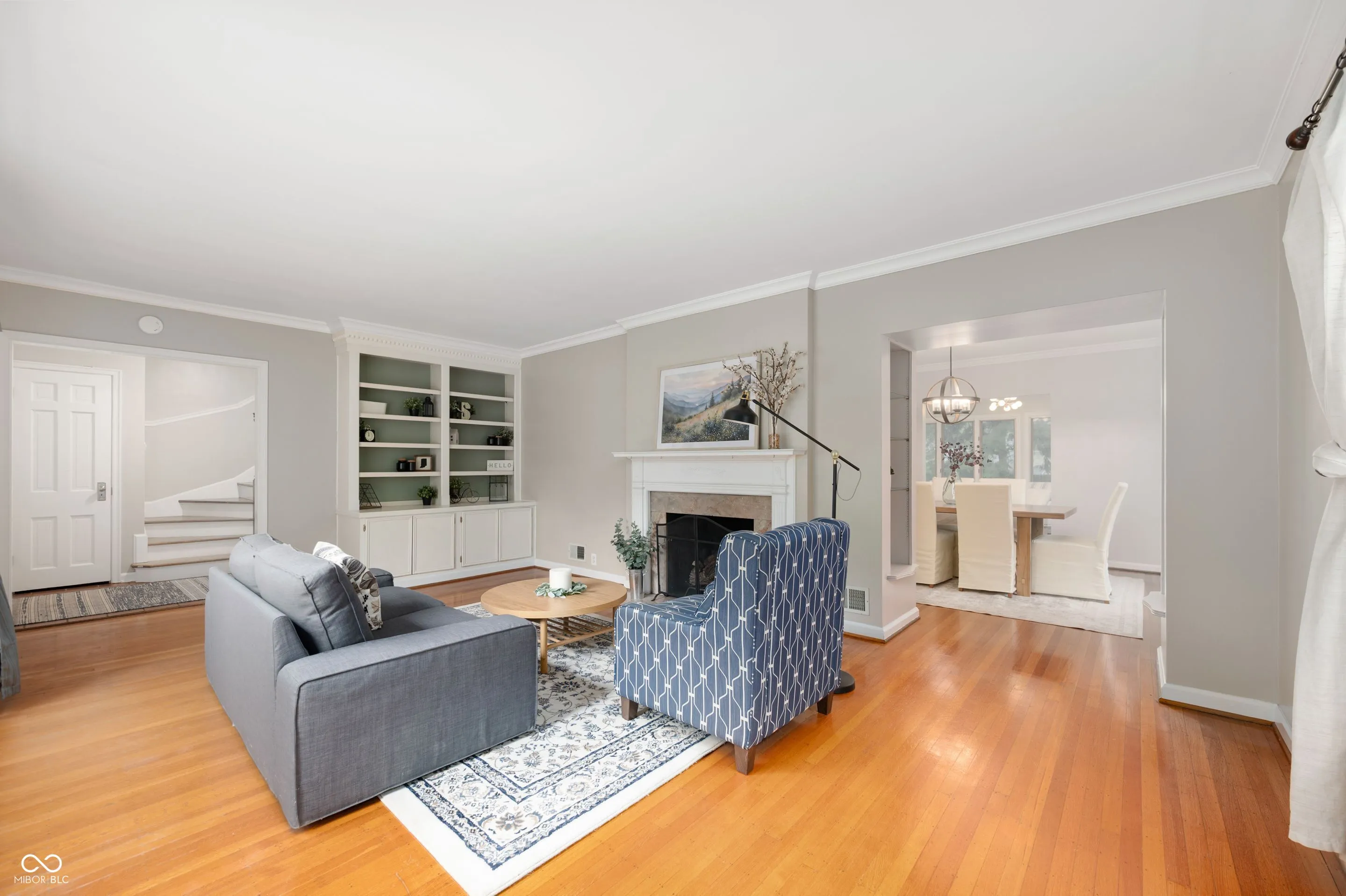 Welcome to this beautiful 4Bd/2.5Ba home in Meridian Kessler Terrace where classic charm meets modern comfort! Welcoming front entry leads to a formal living room w/ cozy gas fireplace, stylish & practical built-in bookshelves, & crown molding for a touch of that classic elegance. The room flows into another beautiful space, the formal dining room with a modern farmhouse chandelier. The kitchen is thoughtfully designed with both beauty & functionality including granite countertops, white shaker cabinets, & new appliances! The breakfast bar creates a casual dining space & the eat-in dining area is great for meals together. The open floorplan continues into Great Room which features a cozy gas fireplace with beautiful stone masonry & updated mantle, vaulted ceilings, recessed lighting, and two skylights enhancing the sense of space & filling the room with natural light. And the big picture windows overlook the deck & backyard bringing the outdoors inside! A versatile bonus room off the great room has more skylights & would be great for use as a playroom, craft area, or home office space. The half bath on the main is so fun & charming! All bedrooms are located upstairs including the primary with en suite bathroom with double sinks, a tile shower, & beadboard accent. Additional bedrooms are a great size with plenty of closet space & second full bath offers tile shower/tub combo & a beautiful modern vanity. Finished basement offers another wonderful space to relax and entertain w/ built-ins surrounding the fireplace & offering extra storage space. Combo laundry room & work space in the basement, too! Enjoy evenings on the oversized back deck overlooking the fully fenced-in, private backyard surrounded by mature trees. Awesome location with walkability to Broad Ripple shops & restaurants & short drive downtown! With a freshly painted interior, newer appliances & home mechanicals (new in ’24 & ’25), and beautifully maintained inside & out, this home is move-in ready for yo