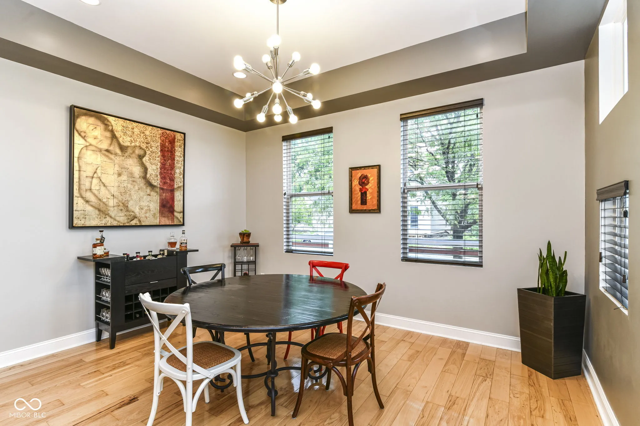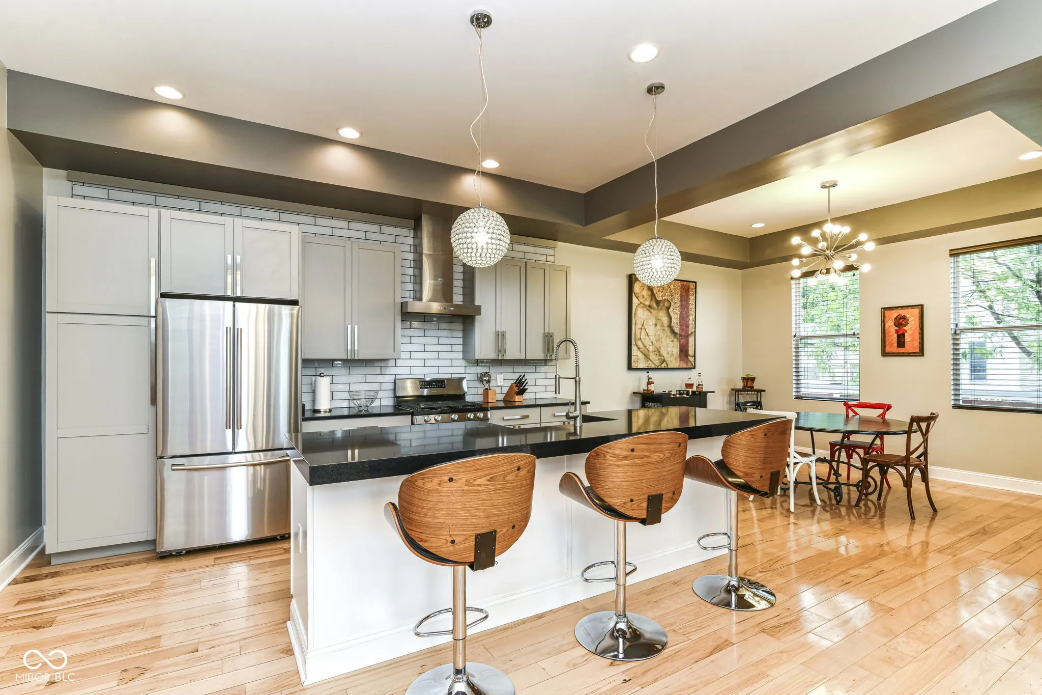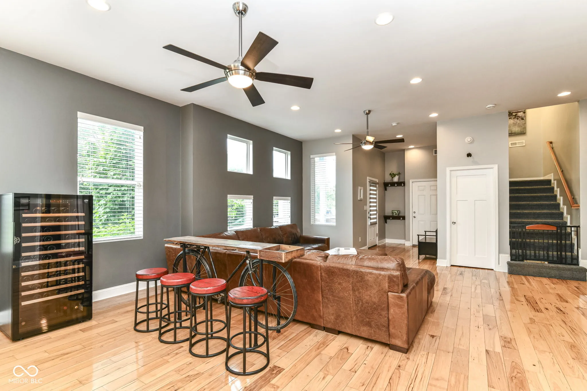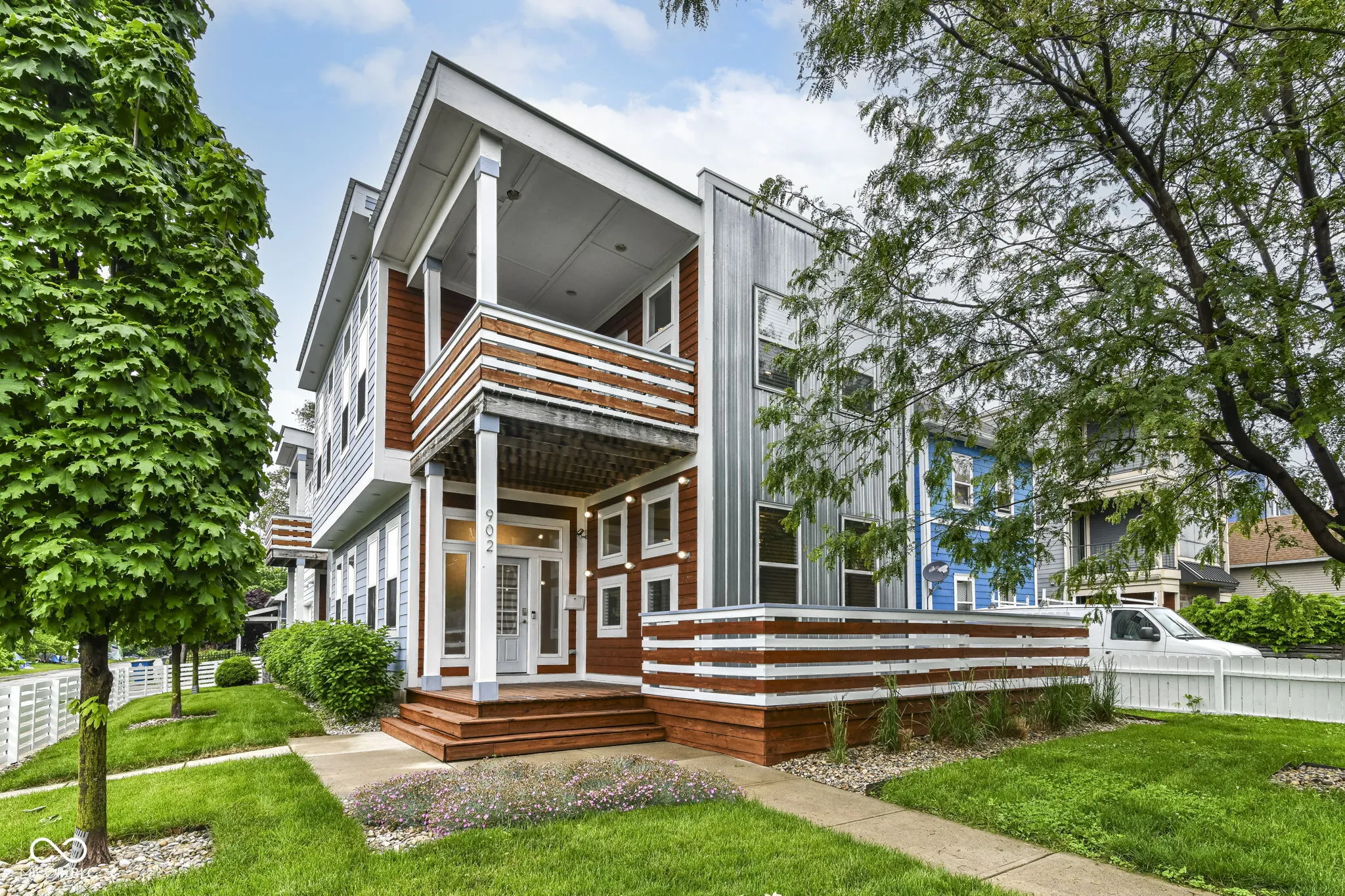 This home represents an opportunity to embrace a lifestyle of both sophistication and comfort. The heart of this home is the expansive living areas on both levels. As you enter this home you will appreciate how it opens up to you. The grand spaces showcase the dining area to the kitchen which has stainless steel appliances, granite countertops, center island with bar stools and then flows perfectly into the great room with seamless hardwoods and built ins offering the perfect flow for entertaining with friends or for your quiet nights alone. The primary suite is your private oasis to escape the chaos of the world and what a beautiful escape it is. The spectacular en-suite offers beautiful lighting, separate vanities, a beautiful walk in shower as well as a soaker tub. The closet was epically designed and customized for the space; and it is magnificent! Upstairs you will also find a second large living area with a built in wet bar area, 2 additional balconies, a junior suite & 2 ample bedrooms This property provides a harmonious balance between indoor luxury and outdoor serenity. There are multiple decks for viewing the city skyline and a turf grass patio are tucked away for your privacy! The yard is fenced in to accommodate any four legged friends as well. Fountain Square is a vibrant area known for its walkability to amazing restaurants, live music, night life and an easy access to the Cultural Trail.