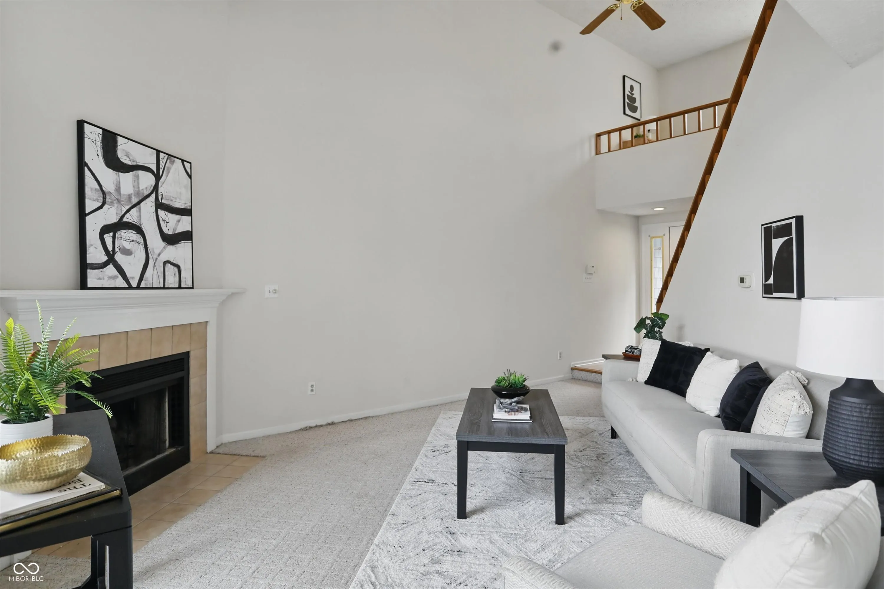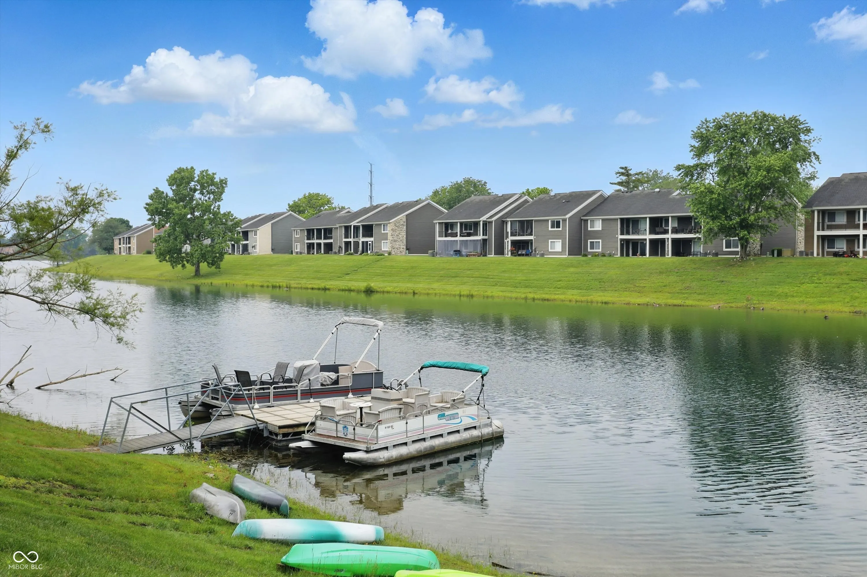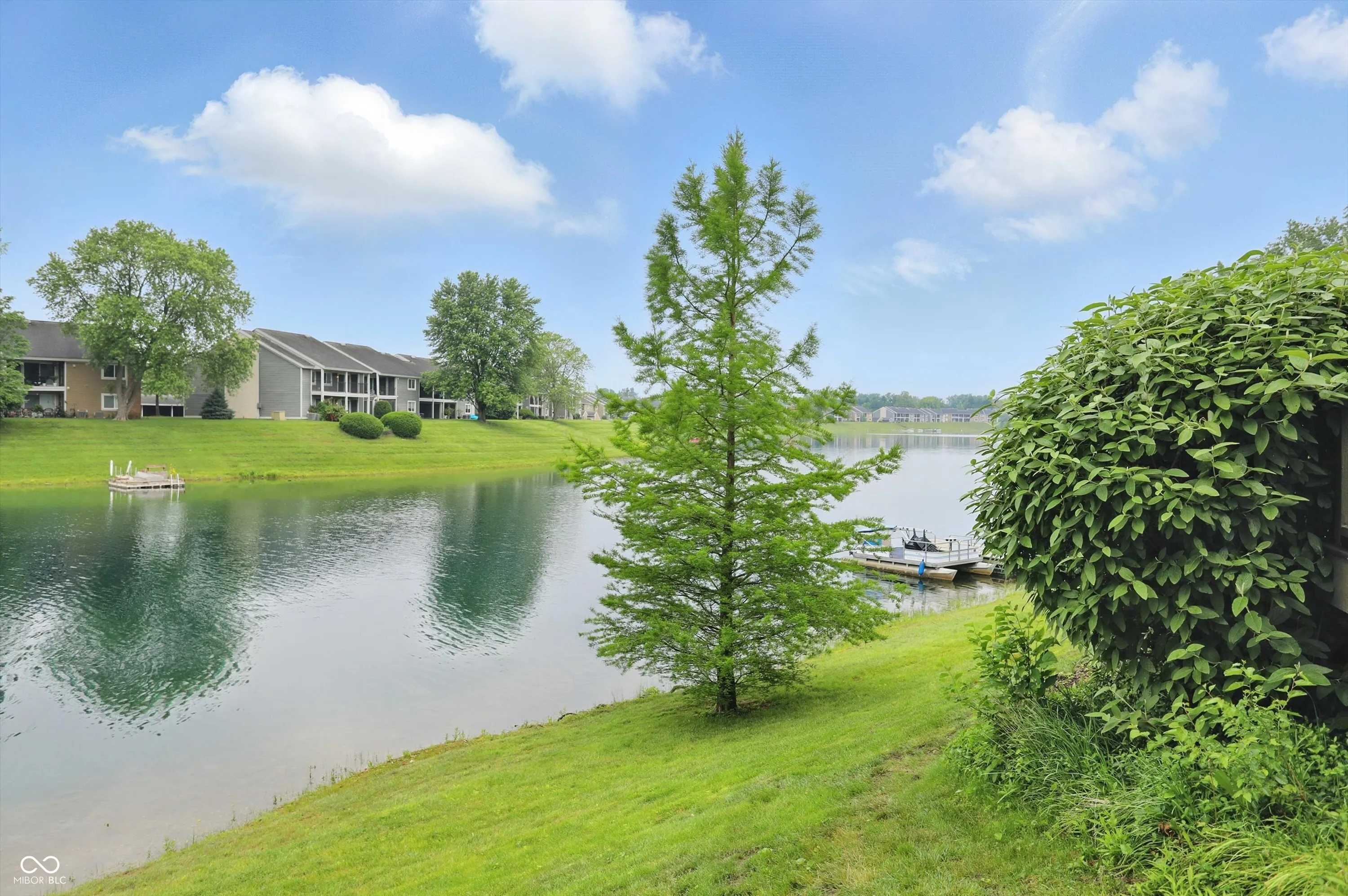 Welcome to this beautifully maintained lakefront condo nestled in the desirable Harbour Club community of Indianapolis. This two-story home offers 2 bedrooms and 1.5 bathrooms across 1,024 square feet, blending comfort with scenic charm. Enjoy peaceful views of the 80-acre lake from your private deck-an ideal spot for morning coffee or relaxing evenings. Inside, the spacious great room features cathedral ceilings and a cozy fireplace, plus a galley style kitchen. Upstairs, the primary suite includes a walk-in closet and a full bathroom. Also upstairs, you’ll find an enchanting artists loft / guest bedroom – a rare find for Indy – full of natural light, and perfect for accommodating those family or friend visits. Additional highlights include an attached 1-car garage, laundry with washer and dryer, and access to the community amenities including a pool, clubhouse, and tennis courts. All new siding was just installed as well. Located just minutes from Keystone at the Crossing, Broad Ripple, and Castleton, this condo offers easy access to top shopping, dining, and entertainment, along with major interstates for convenient commuting. Experience the perfect combination of lakefront living and urban convenience.