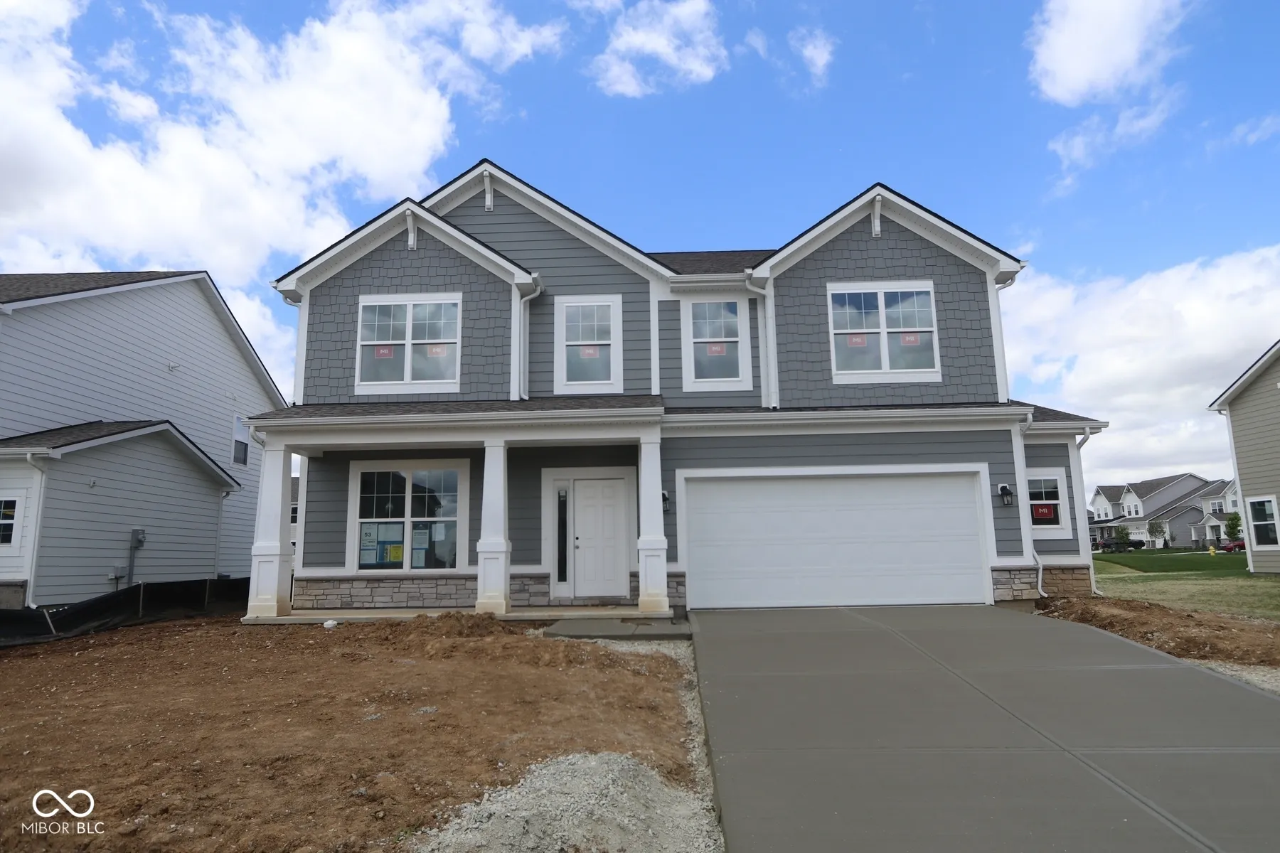 Welcome to this gorgeous 2-story home now for sale in Noblesville! This home features 4 bedrooms, 2.5 bathrooms, and plenty of exciting space to truly make your own A study sits right at the front of the home just off the guest entry. Set up a beautiful home office in this space with a personalized backdrop, houseplants, and a bookshelf. Walk past a half bathroom in its own small hallway before making your way into the main living area. Take delight cooking each meal in the well-appointed kitchen with a dining nook next to it. With 3 sizable windows on the walls and 16’6″ x 17’3″ of space, abundant natural lighting and functionality are at the heart of the gathering room design in this floorplan. There’s even an option to add an electric fireplace along the back or side wall! The private second floor showcases an expansive loft, the owner’s suite, the secondary bedrooms, a full hallway bathroom, and a laundry room. The owner’s bedroom shares no walls with any of the other bedrooms! Easily organize your products in the en-suite owner’s bathroom, featuring a long vanity with 2 sinks, a linen closet, and a spacious shower.