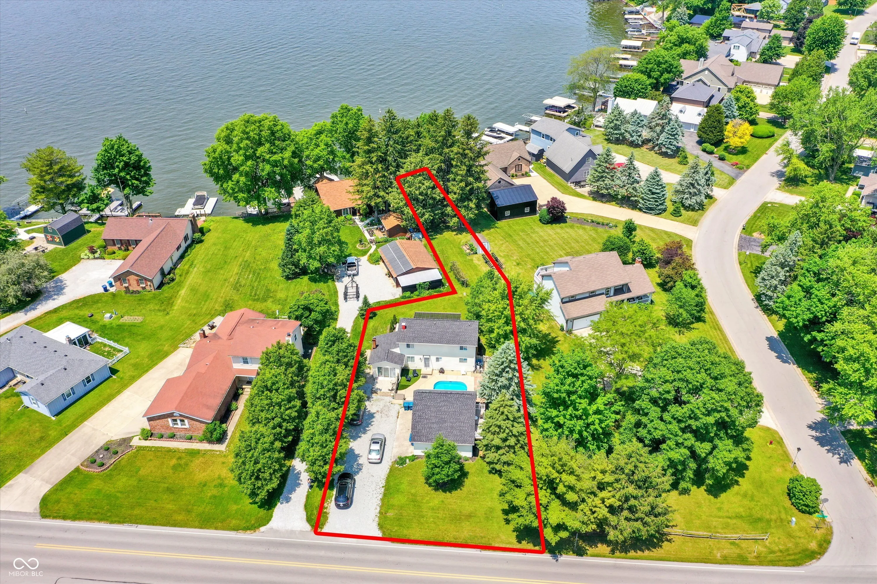 Unique opportunity to live on Morse in this cottage style 3-bedroom home with a private guest suite over the garage. Lake frontage with room for dock (old dock was just removed). New Deck and stairs to water under construction as seen in the photos. 2 bedrooms and 1 bath on main floor of home and upstairs, you are greeted with an open space that makes a great loft or office. Primary bedroom and bathroom are located upstairs for privacy along with multiple closets and water views. Home is newly renovated with new windows, new electrical (including a separate meter for the suite over the garage), addition of suite, kitchen and bath updates, new flooring upstairs, pergola. Small inground pool for those days you cannot take the boat out. 24-hour notice for all showings. Bedrooms are not photographed.