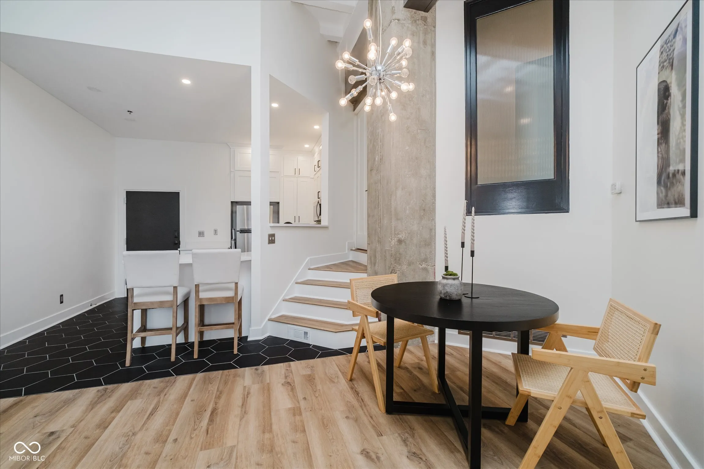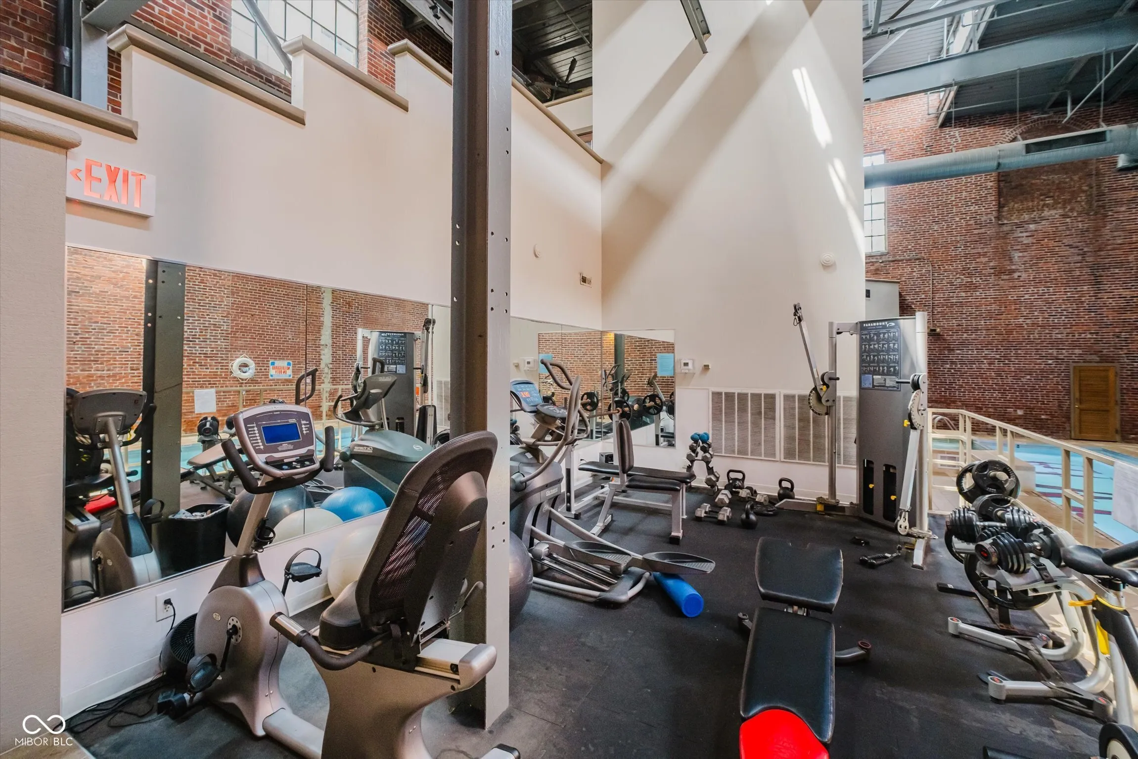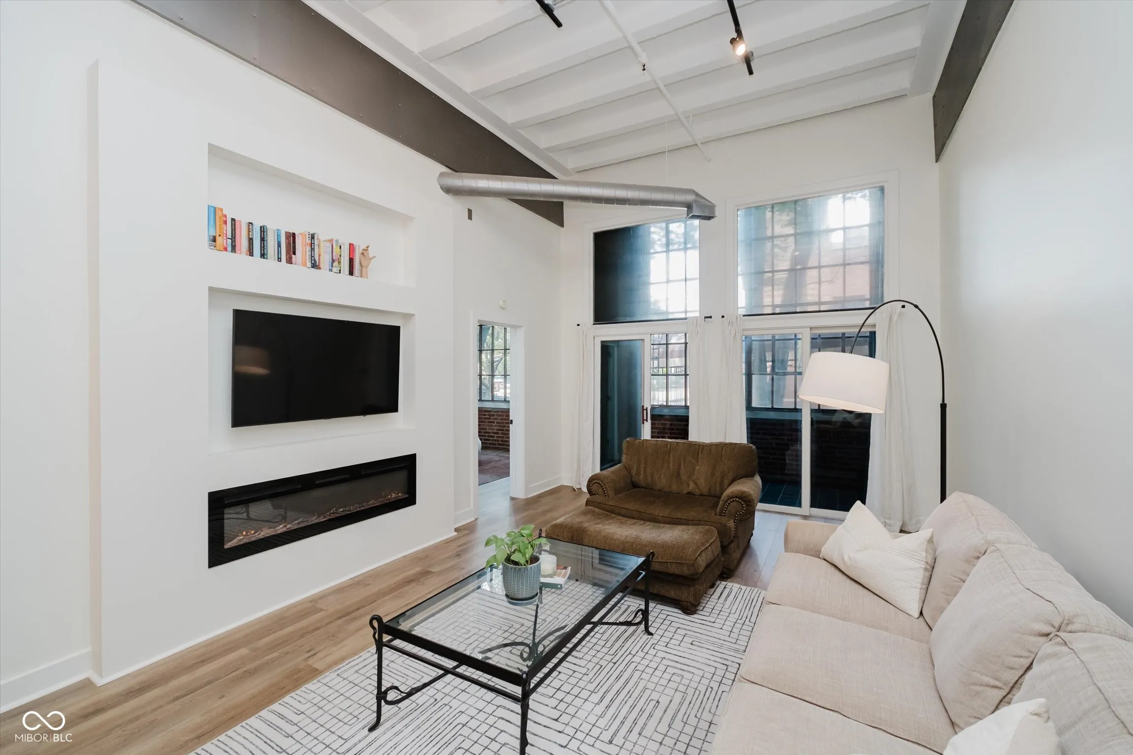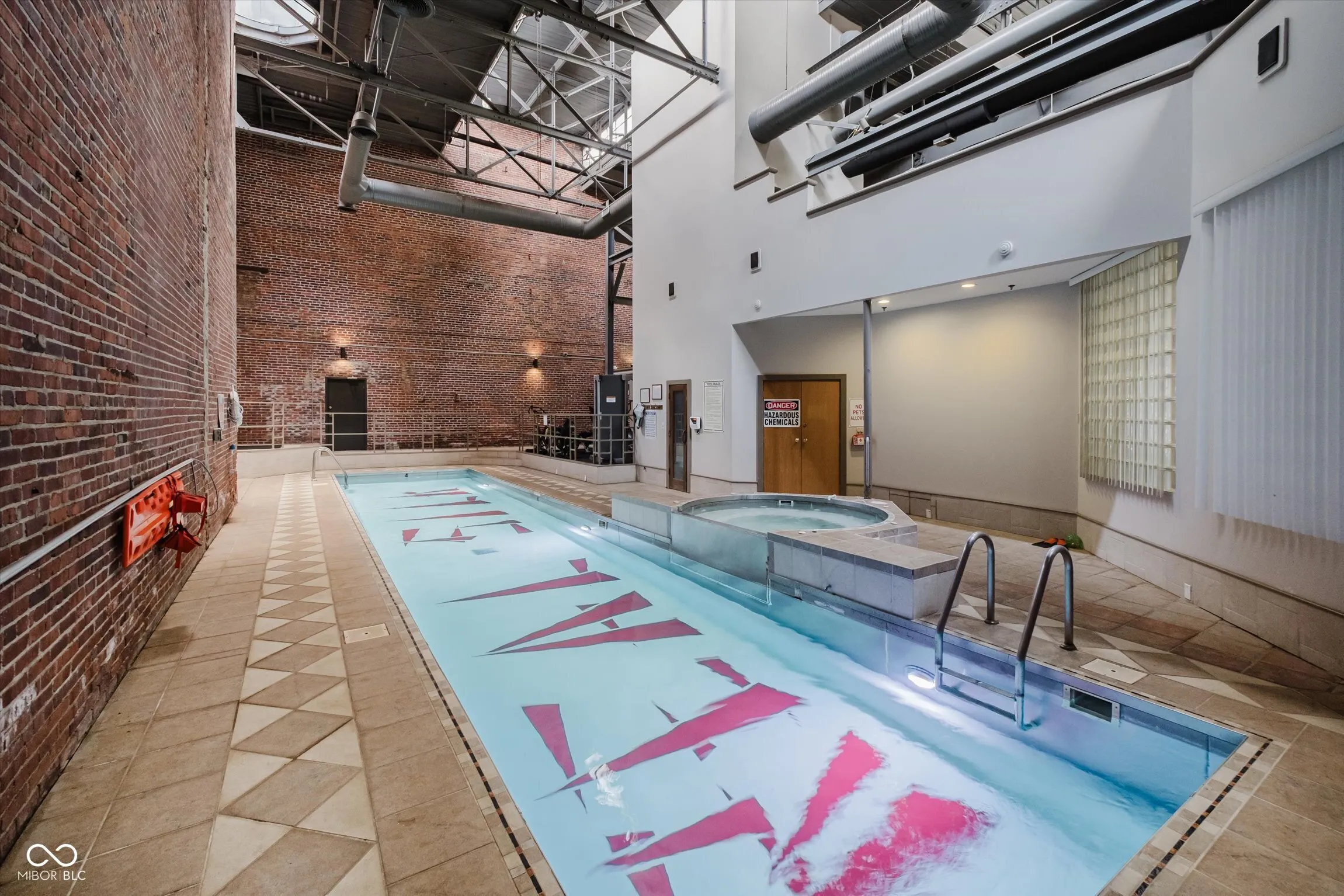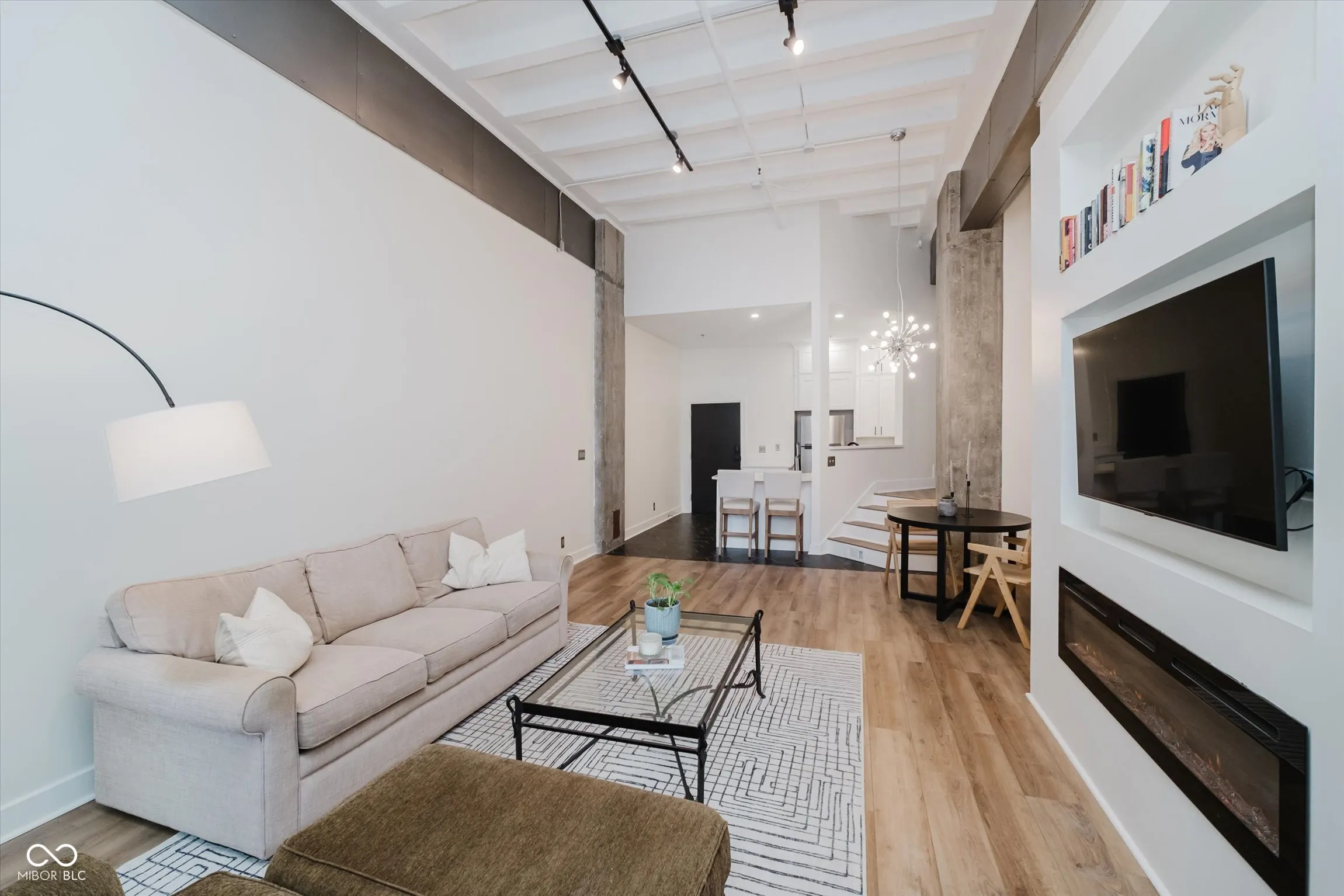 Welcome home to this fully renovated 2-bedroom, 2-bath condominium in the heart of downtown Indianapolis! This exceptional unit features a brand-new kitchen complete with a stylish tile backsplash, modern appliances, and a cozy breakfast bar-perfect for morning coffee or evening cocktails. The spacious great room boasts soaring 14-foot ceilings and contemporary fireplace for cozy nights in. The primary suite offers ultimate convenience with a full tile shower, a walk-in closet with ceiling access storage area and in-unit laundry. Guests will love the private en-suite bath in the second bedroom, ensuring comfort and privacy. Enjoy year-round relaxation on the unique enclosed porch-a perfect space for a home office or reading nook. Furnace new in 2023. Amenities include an indoor pool, a fully equipped workout facility, and a dedicated garage parking space. Just steps from Mass Ave and all the vibrant shopping, dining, and entertainment downtown has to offer. Don’t miss this chance to live in one of Indy’s most desirable locations!