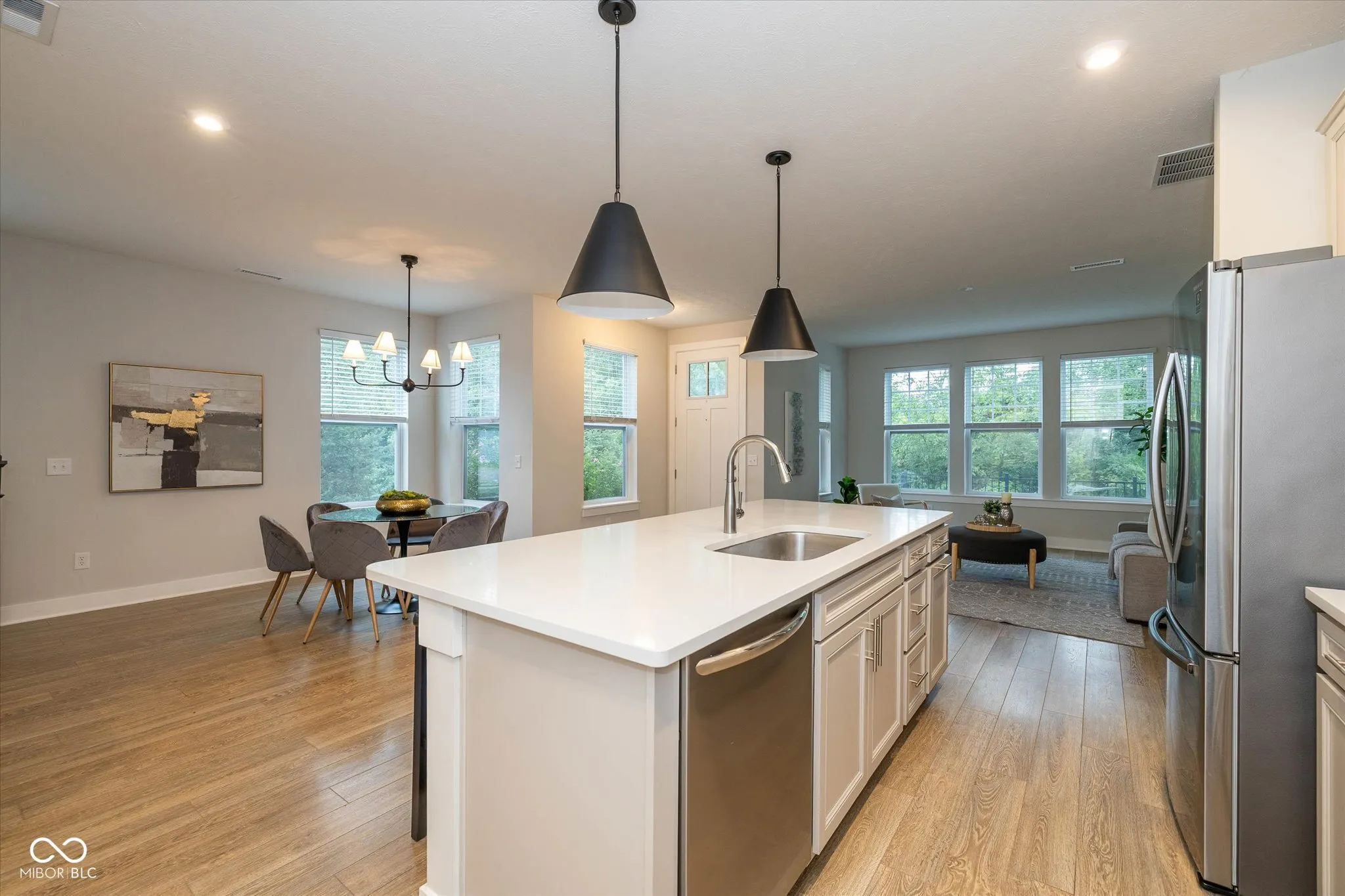 Welcome to this beautifully maintained single-family home in a highly convenient Westfield community, just minutes from SR-32 and US-31, and within walking distance to Kroger, popular restaurants, banks, and local kindergartens. Situated on a quiet homesite facing the scenic Midland Trace Trail, this home offers peaceful views and privacy. Step inside to soaring 10-foot ceilings throughout, creating a bright, open feel in every room. The open-concept great room is ideal for entertaining and family gatherings, flowing seamlessly into the gourmet kitchen, which features a large center island and high-end stainless steel appliances. Upstairs, you’ll find 3 spacious bedrooms and 2.5 baths, all with generous closet space. The deluxe Owner’s Retreat overlooks the woods and includes a spa-inspired bathroom with a large walk-in shower, double vanities, and a calming, private atmosphere. A cozy loft and a convenient laundry room complete the second floor. Additional highlights include: New lighting fixtures throughout Access to community amenities, including a pool and clubhouse located in a mature, well-established neighborhood. This home offers the perfect blend of comfort, style, and convenience – a true must-see!