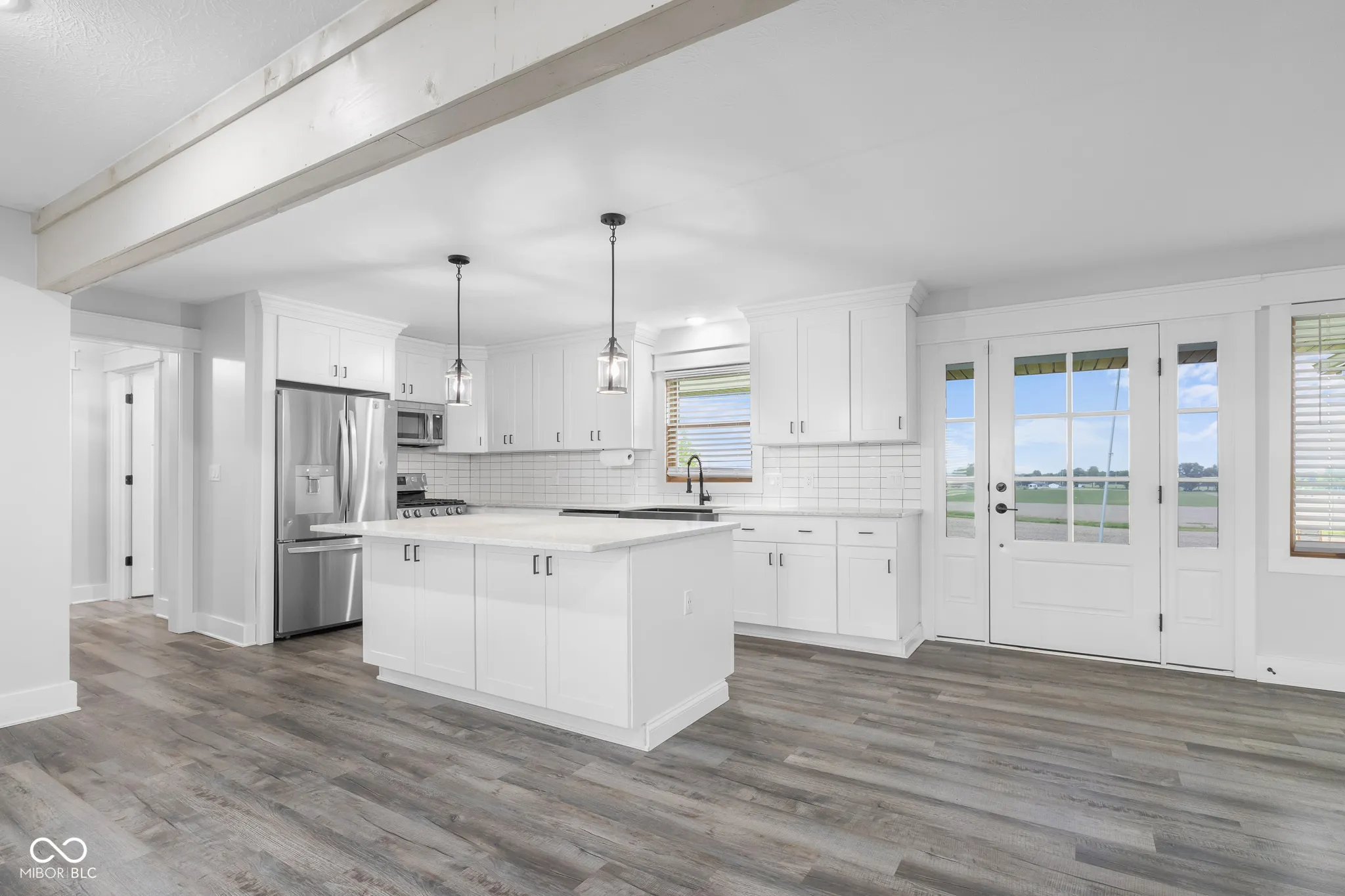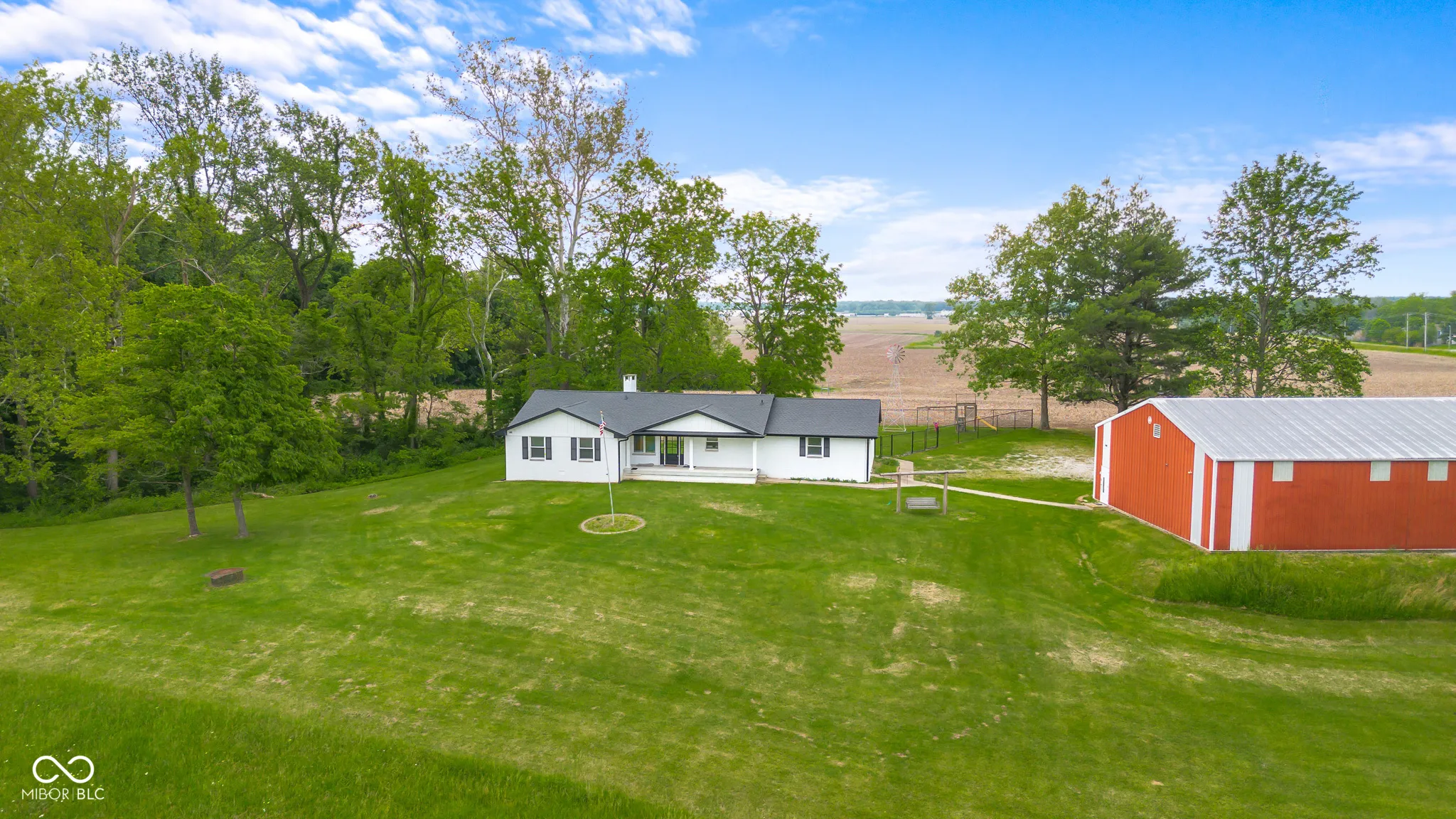 One of a kind, the photos say it all. Walk up the woodsy lane until you reach the covered front porch where you can stand on this hilltop looking over woods and farm fields as far as you can see, and still less than 10 minutes from downtown Columbus. The 40×57 Morton barn with a concrete floor and electric includes garage parking with a 2-car overhead garage door + opener. Completely remodeled in 2022, this is a ranch home with over 2000 square feet on the main floor; the primary suite and laundry are also on the main floor. If you’ve been dreaming of a walk-through, custom-tile shower with glass doors (check out the photos!) or just a 25×20 master suite, here it is. 4 bedrooms total + a small office. Split floorplan. Gas fireplace. Huge center island with quartz counters. Big, fenced backyard facing a second country view. On top of all this, the unfinished basement with 1300+ square feet has the potential to be finished but is also dry and secure for storage and storm safety. What else do you need? This is the one.