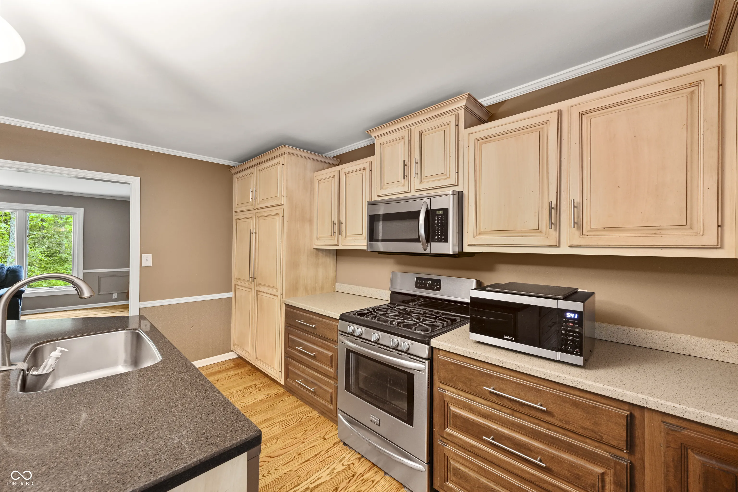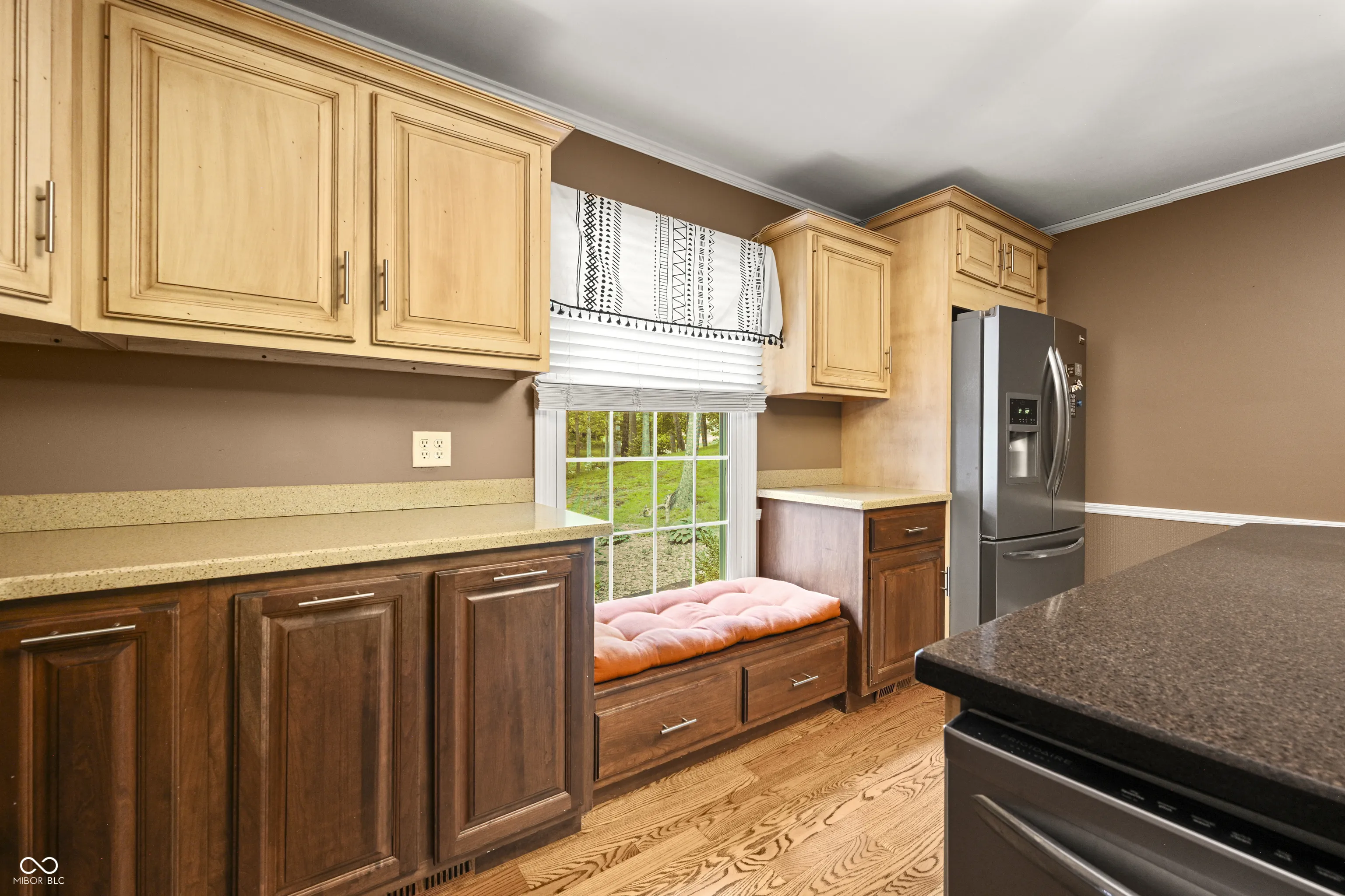 This property presents a unique canvas for creating the home of your dreams, awaiting your personal touch. Tucked away in a tranquil wooded setting on nearly an acre in a prime location on a quiet road. The home showcases 3 bedrooms and 2 full baths, paired with a 2-car attached garage. Upon entering the home, the open main living area unfolds, starting with the kitchen. The kitchen features solid surface counters, including all appliances and large island suitable for food preparation, entertaining, and dining. The adjacent spacious room functions as a family room or potential dining room area separate from kitchen, followed by the living room, distinguished by custom red oak flooring that you will view throughout the home, a wood fireplace, and large window overlooking the wooded backyard. The master suite is complete with his & hers closets and a private bath featuring a double sink vanity and shower stall. The laundry room offers potential for a secondary kitchen, half bath, or wet bar conveniently situated near the rear deck. The wooden deck leads to the wooded backyard, inviting visions of the possibilities this expansive lot provides, offering ample opportunities for outdoor activities and relaxation.