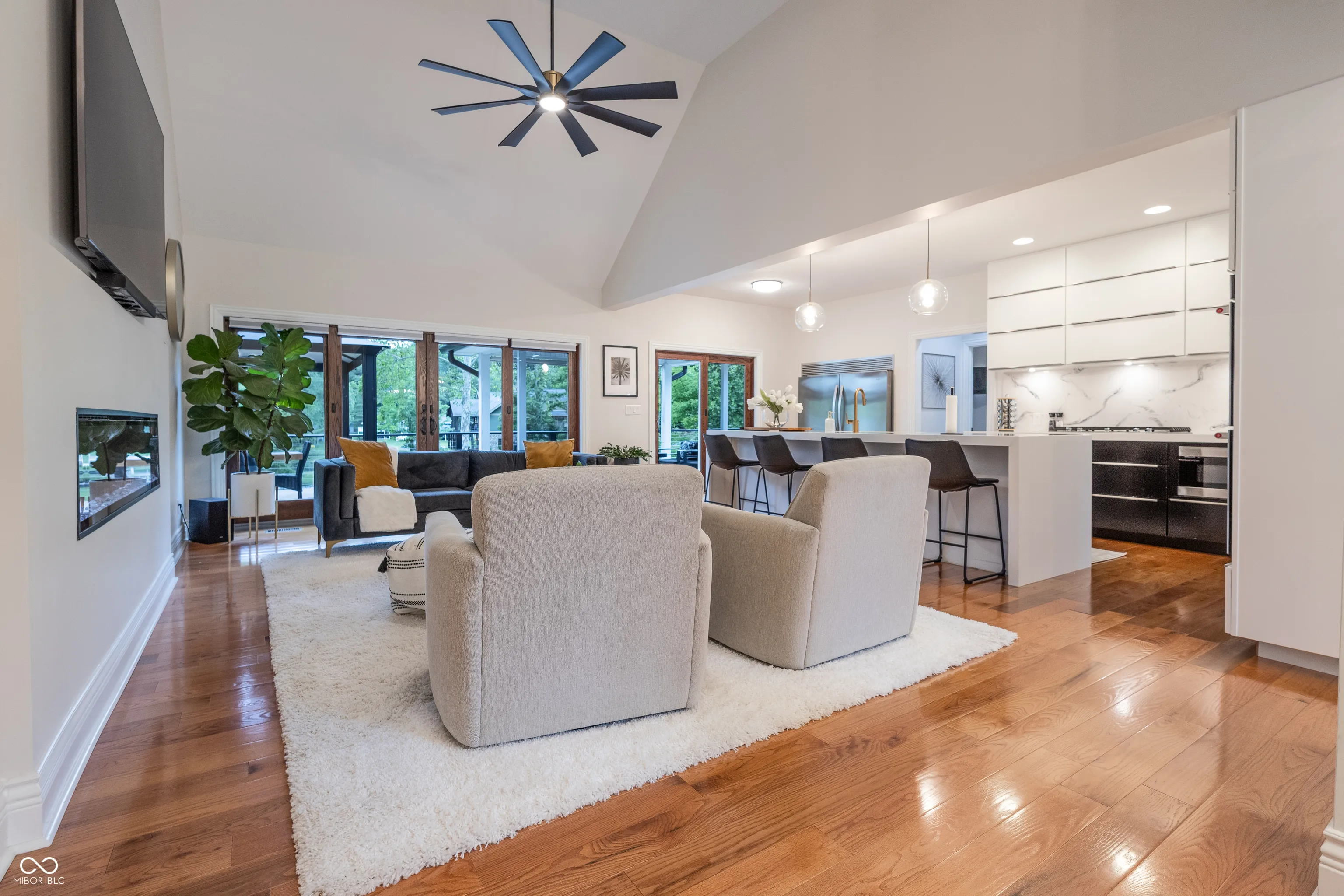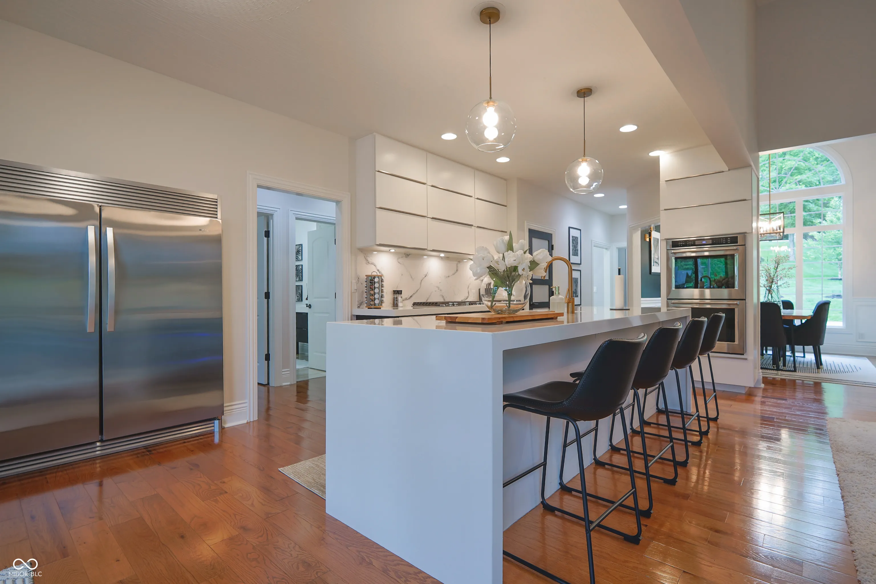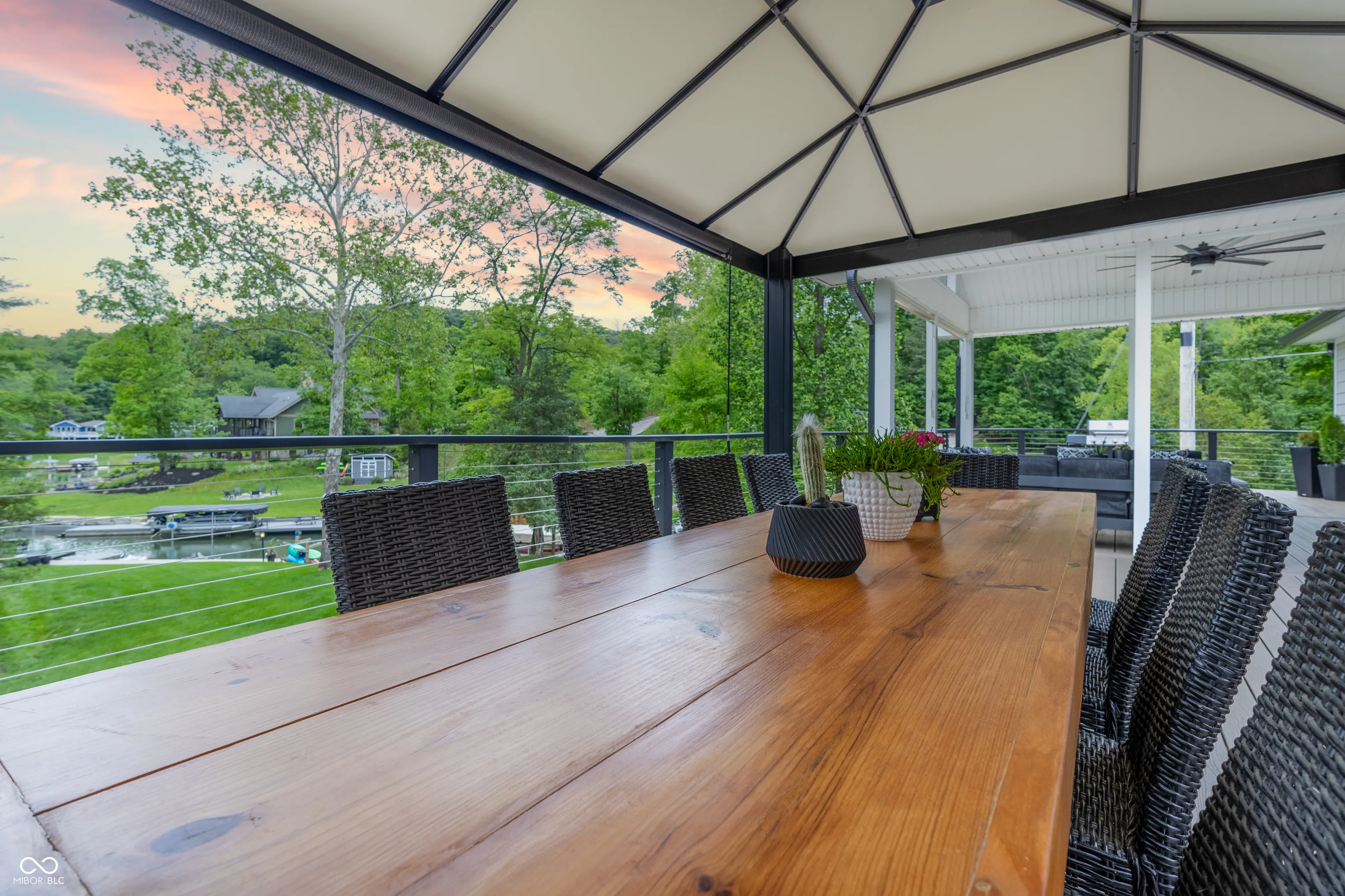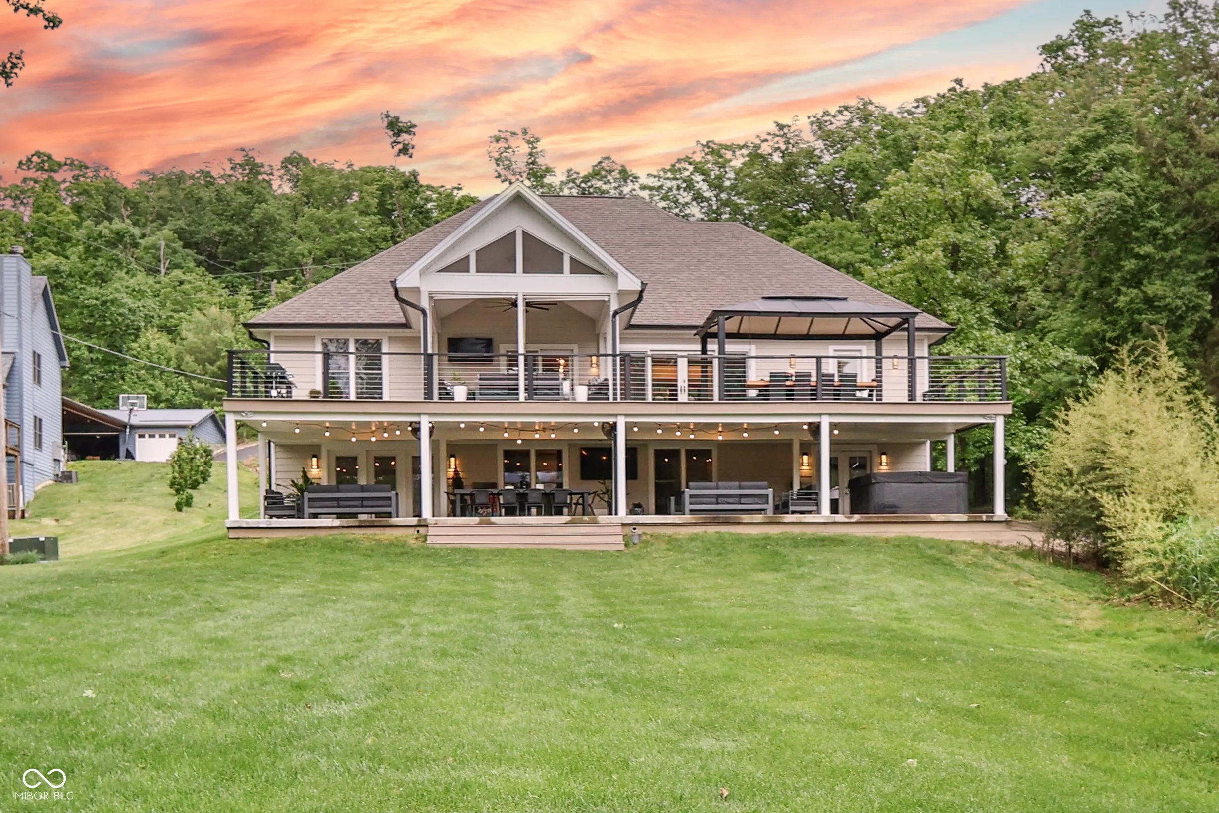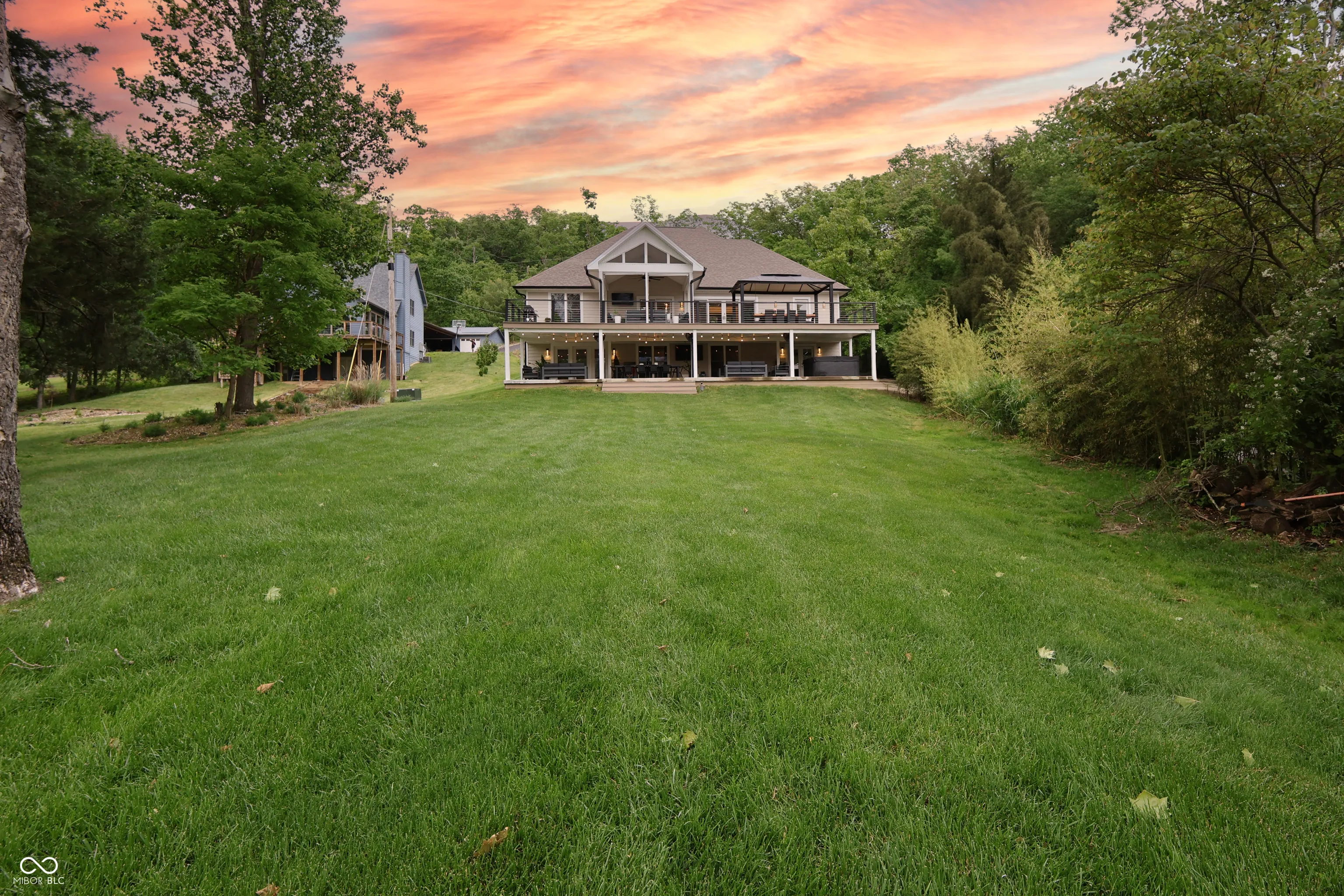 Its time to move in and enjoy lake living! You will enjoy this 5 bedroom, 3 bath home on Indiana’s largest private lake which is situated on a quiet cove. Great for swimming at your own boat. Featuring a full kitchen and laundry on both floors. The main level offers a well designed kitchen with large island with waterfall edge, 60″ built in refrigerator, wine cooler, ice maker and is open to the great room and formal dining room. The primary suite includes a sitting area, bath with walk in shower, soaking tub and walk in closet. The walk out lower level features a second kitchen, large rec room, 2 added bedrooms, a flex room and storage areas. The attached 3 car garage offers plenty of room for storage and parking. Located over 3/4 acre fully irrigated manicured yard. Also features a upper deck and lower patio with spa, 2200 square feet outdoor living space. Ready to entertain your family or guests.