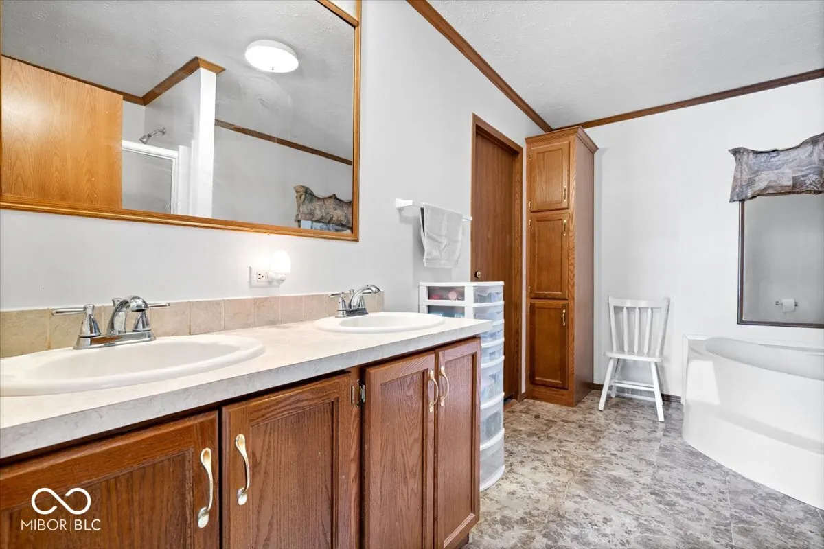 This well-kept 4-bedroom, 2-bath manufactured home offers 2,052 square feet of comfortable living space and sits on over half an acre, providing plenty of room to spread out-inside and out! Larger than most homes in the neighborhood, this property features a spacious layout with generously sized rooms throughout. Upon entry, you’re welcomed by a foyer with built-in cabinets-a thoughtful touch for storage or display. All four bedrooms are generously sized, three of which feature walk-in closets! The primary suite is a true retreat, with a large walk-in closet and a private bathroom featuring a double vanity, garden tub, and separate shower. Elegant French doors lead you into the heart of the home-an open floor plan that seamlessly blends the living room, kitchen, and eat-in dining area, making it ideal for entertaining or family time. The kitchen includes a center island with bar seating, great for casual meals or morning coffee. The home also offers a formal dining space across the foyer. Step outside to enjoy the large backyard with mature trees-perfect for relaxing evenings. A detached 2-car garage provides great storage and parking options. Take advantage of the cozy, fenced-in space between the home and garage, perfect for safely accommodating pets or little ones. No HOA means no extra fees or usage limitations. The home has been well cared for. With its size, layout, and features, this home offers incredible potential for its next owner. Don’t miss your chance to own this roomy and affordable gem-schedule your showing today and imagine the possibilities!