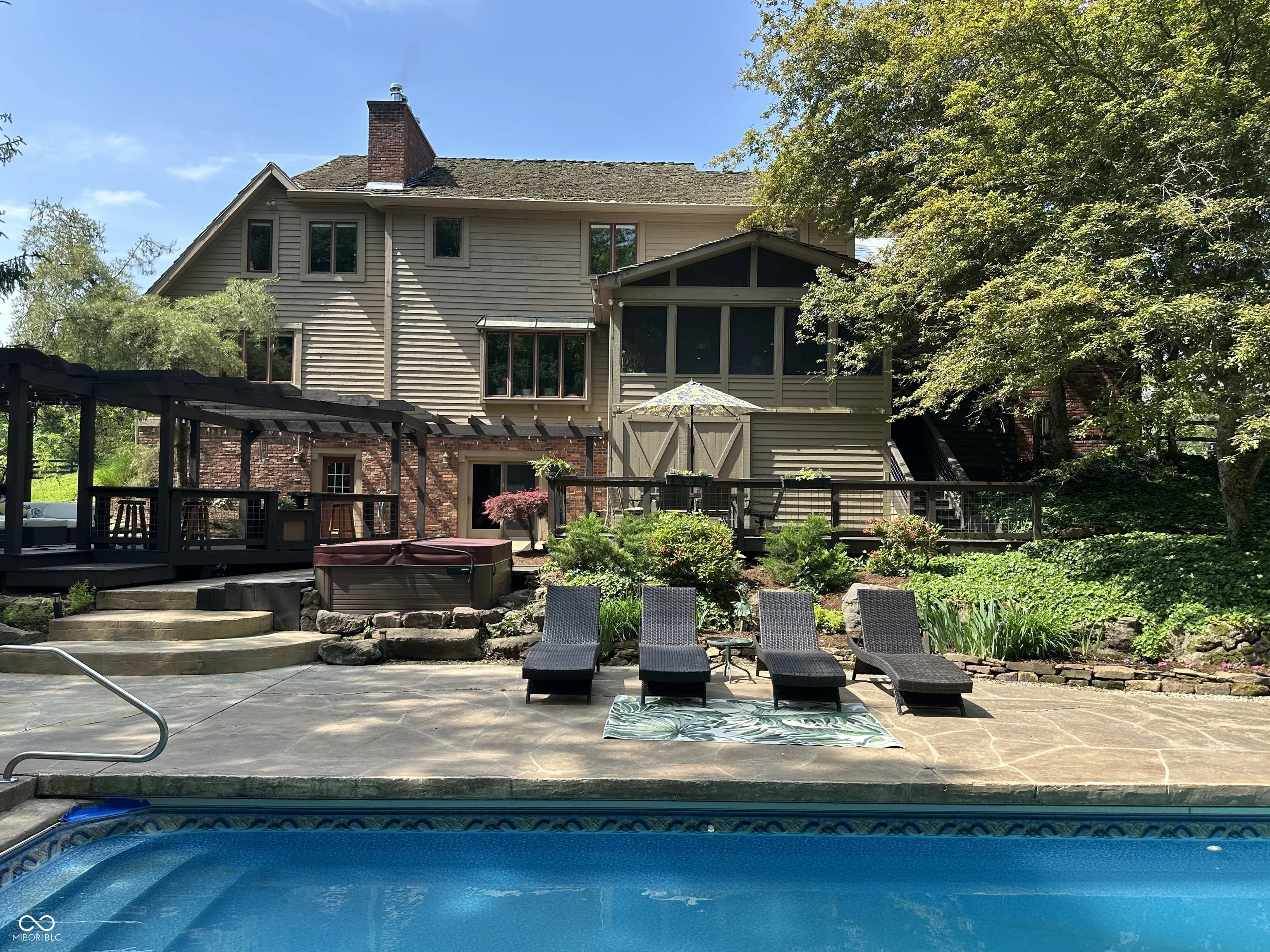 Discover this one-of-a kind 55 acre estate featuring a spacious 5 bedroom, 4 full custom bathrooms, 2 half bathrooms brick home nestled amidst lush fenced pastures, serene woods, and 2 expansive ponds. This exceptional property is a haven for equine enthusiasts complete with multiple barn facilities and event venue including live-in quarters perfect for guests and staff. This lovely 5392sq. ft. home also features an in-home theatre, offices, 3-car attached garage, and enclosed porch with amazing views. Enjoy the outdoor space with in-ground pool, hot tub and patios ideal for entertaining and relaxation. This estate also offers a unique amphitheater along with bathroom facilities for events or gatherings. Did we mention that this property includes a nightclub, VIP lounge, stage area, additional kitchen, and recording studio! Experience this blend of musically inspired rustic charm and modern amenities with this extraordinary countryside retreat.
