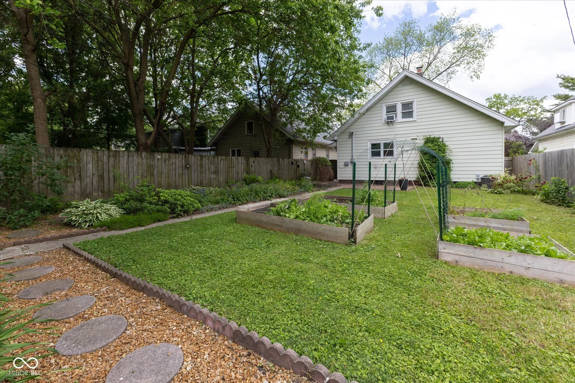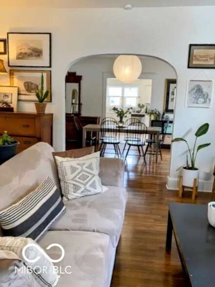 Charming 2 bedroom home with a bonus room upstairs, complete with a walk-in closet, perfectly situated on a great street near award-winning Paramount Brookside and surrounded by wonderful neighbors. A spacious front porch welcomes you, while inside you’ll find beautiful original hardwood floors and classic, timeless touches throughout. The sunny, fully remodeled kitchen is both functional and stylish, ideal for everyday living and entertaining. Upstairs, let your imagination run wild with a large storage space, perfect for a creative studio, playroom, or future expansion. Outside, enjoy a dreamy backyard oasis with raised garden beds, established perennials, a paver patio, and a fully fenced yard. A two car garage and gravel, off-street parking pad complete this inviting property. Just a short walk to Brookside Park and the Pogue’s Run Trail, this home is nestled in the vibrant Brookside neighborhood with an active and growing neighborhood association.
