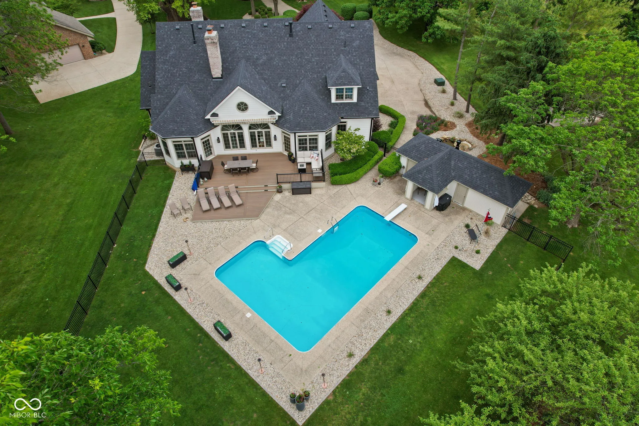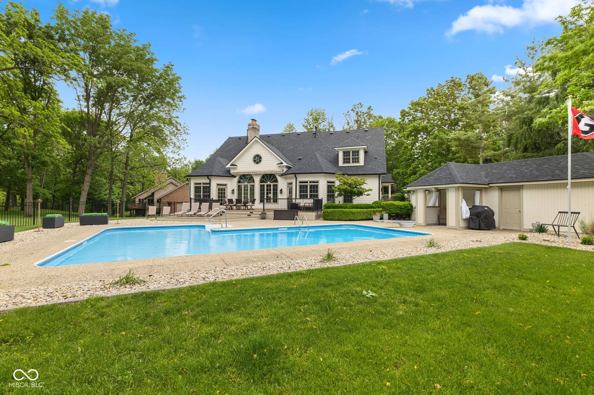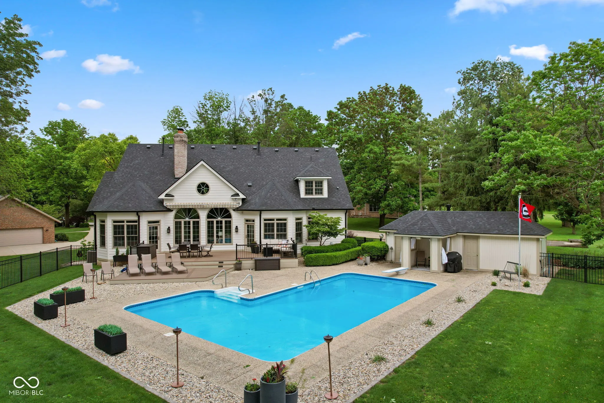 STUNNING 2-story French Victorian home with full finished basement, inground pool, beautifully updated landscaping, outdoor firepit, pool house, and 3-car garage on almost an acre in exclusive, secluded Timber Heights! Upon entry, you’ll be greeted by a spacious home office with gas fireplace and custom built-in bookshelves. This “1994 Home-A-Rama Kitchen of the Year” boasts 6-burner 48-inch Viking Stove with grill top and double ovens, brand new 48-inch custom exhaust hood, walk-in pantry, breakfast room, and sitting area that overlooks the new composite deck and inground swimming pool. Large master bedroom with custom accent wall and vaulted ceiling gives way to master bath with double sinks, spa tub, updated shower, and two walk-in closets. Spacious great room includes gas fireplace and cathedral ceiling. Upstairs features a picturesque library, large loft, two bedrooms with walk-in closets, a full updated bathroom, and two large storage areas. Basement exudes functionality: kitchenette, enormous family room with space for exercise equipment, recreation room, and half-bath. Plenty of space in the basement and upstairs loft to add 4th and even 5th bedrooms, if desired. New Roof, Gutters, Exterior Paint, and Generator Battery in 2025. Most Carpet and Interior Paint new within the past 3 years.