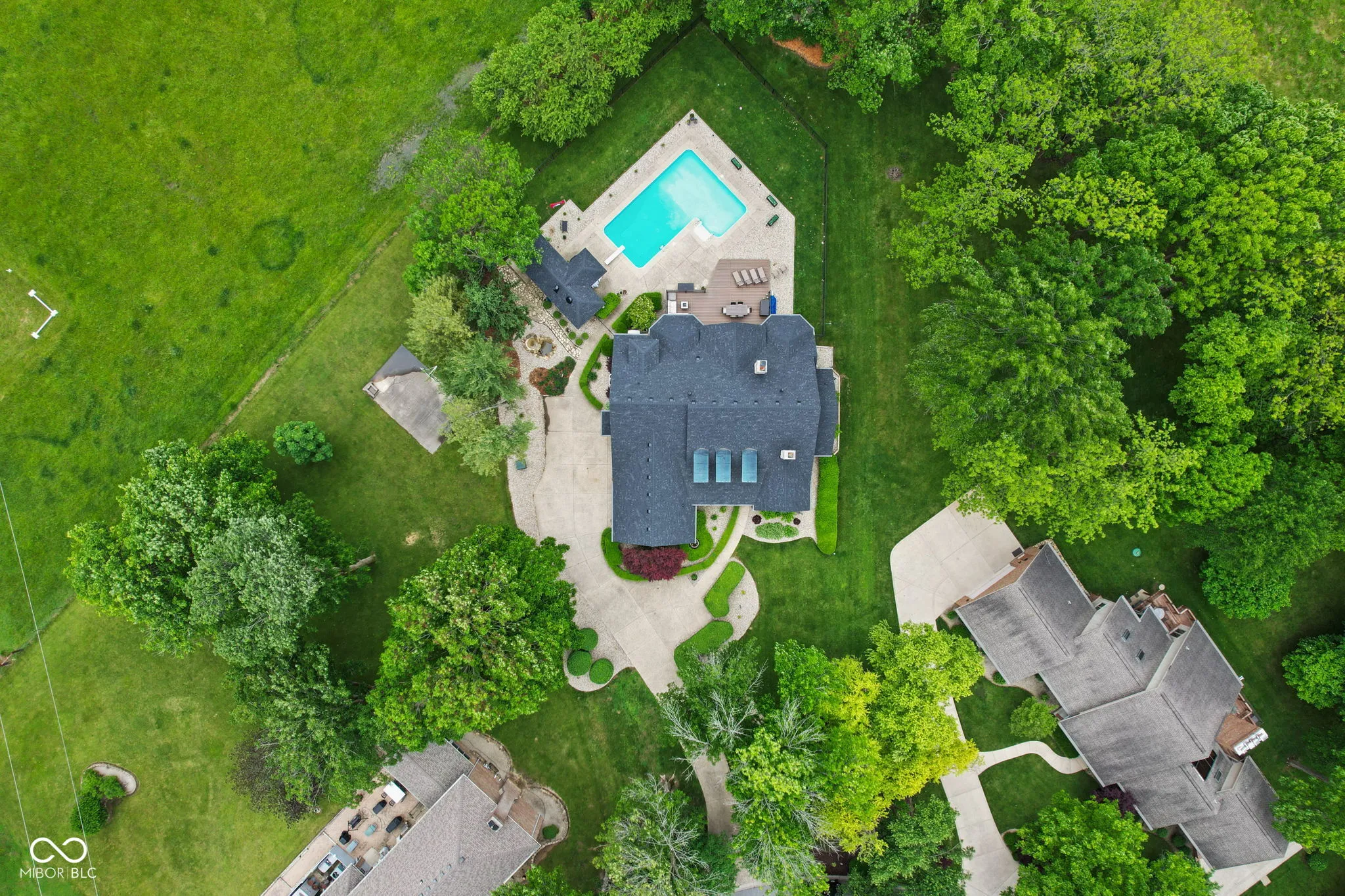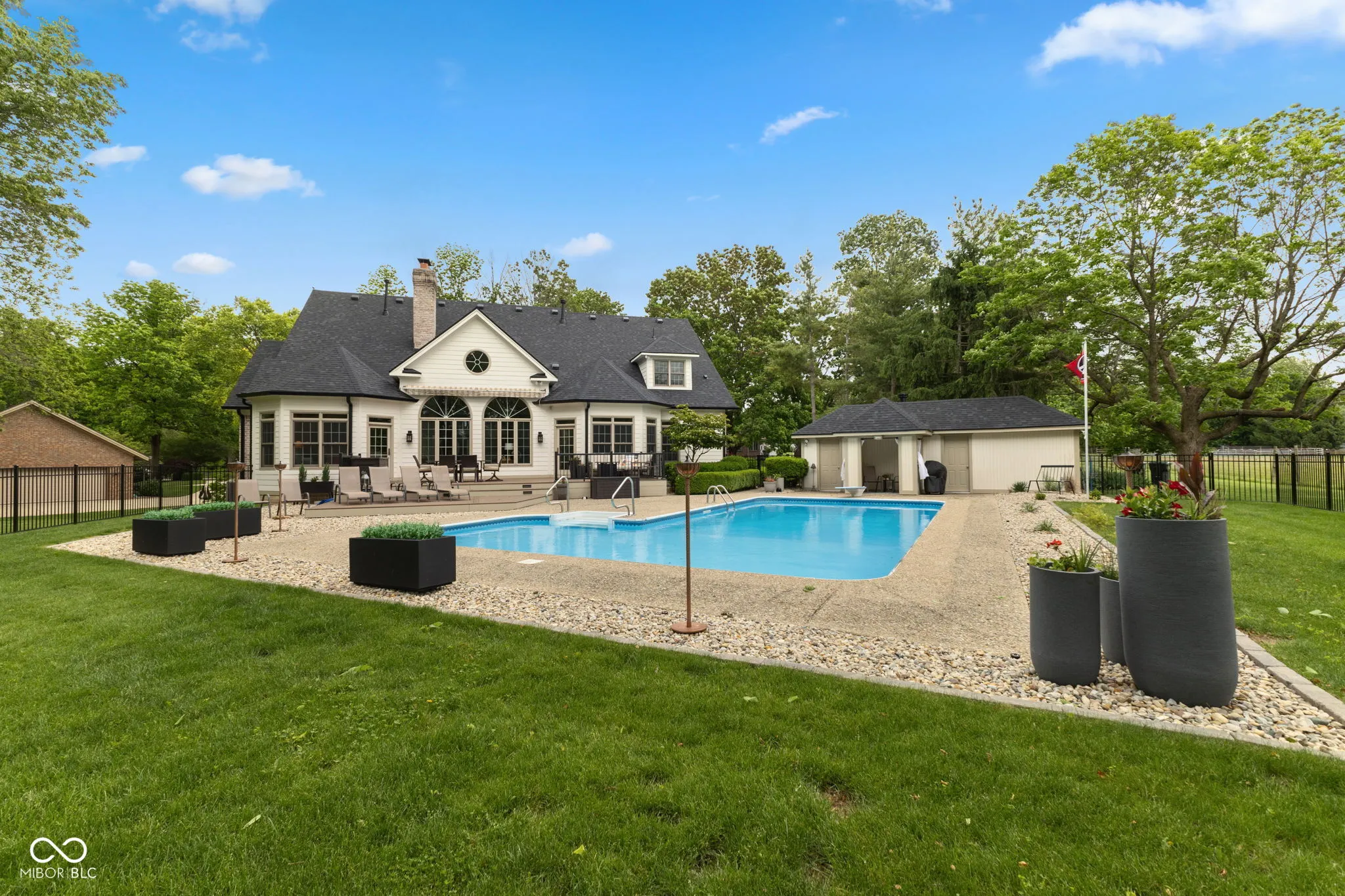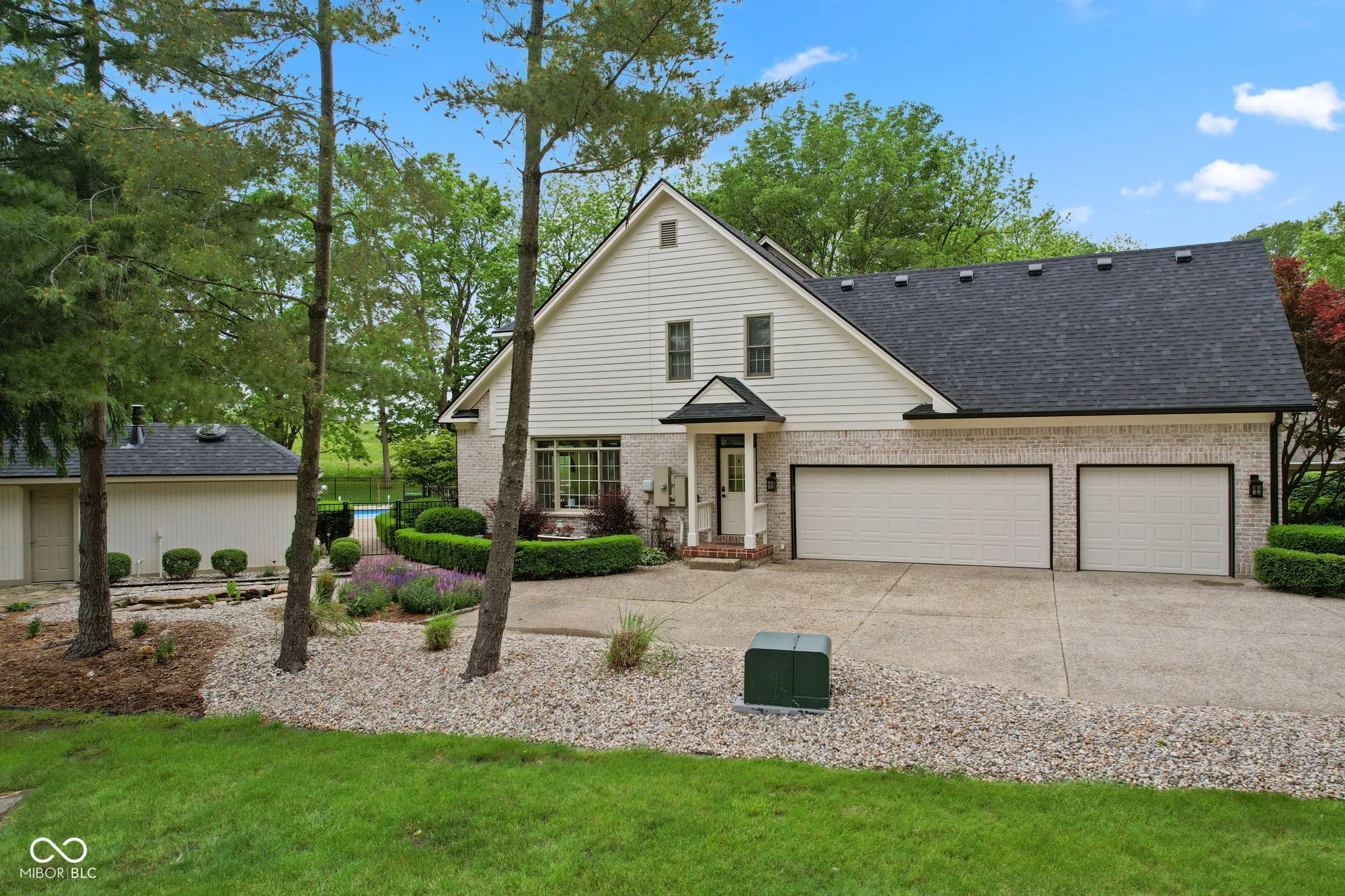 STUNNING 2-story French Victorian home with full finished basement, inground pool, beautifully updated landscaping, outdoor firepit, pool house, and 3-car garage on almost an acre in exclusive, secluded Timber Heights! Upon entry, you’ll be greeted by a spacious home office with gas fireplace and custom built-in bookshelves. This “1994 Home-A-Rama Kitchen of the Year” boasts 6-burner 48-inch Viking Stove with grill top and double ovens, brand new 48-inch custom exhaust hood, walk-in pantry, breakfast room, and sitting area that overlooks the new composite deck and inground swimming pool. Large master bedroom with custom accent wall and vaulted ceiling gives way to master bath with double sinks, spa tub, updated shower, and two walk-in closets. Spacious great room includes gas fireplace and cathedral ceiling. Upstairs features a picturesque library, large loft, two bedrooms with walk-in closets, a full updated bathroom, and two large storage areas. Basement exudes functionality: kitchenette, enormous family room with space for exercise equipment, recreation room, and half-bath. Plenty of space in the basement and upstairs loft to add 4th and even 5th bedrooms, if desired. New Roof, Gutters, Exterior Paint, and Generator Battery in 2025. Most Carpet and Interior Paint new within the past 3 years.