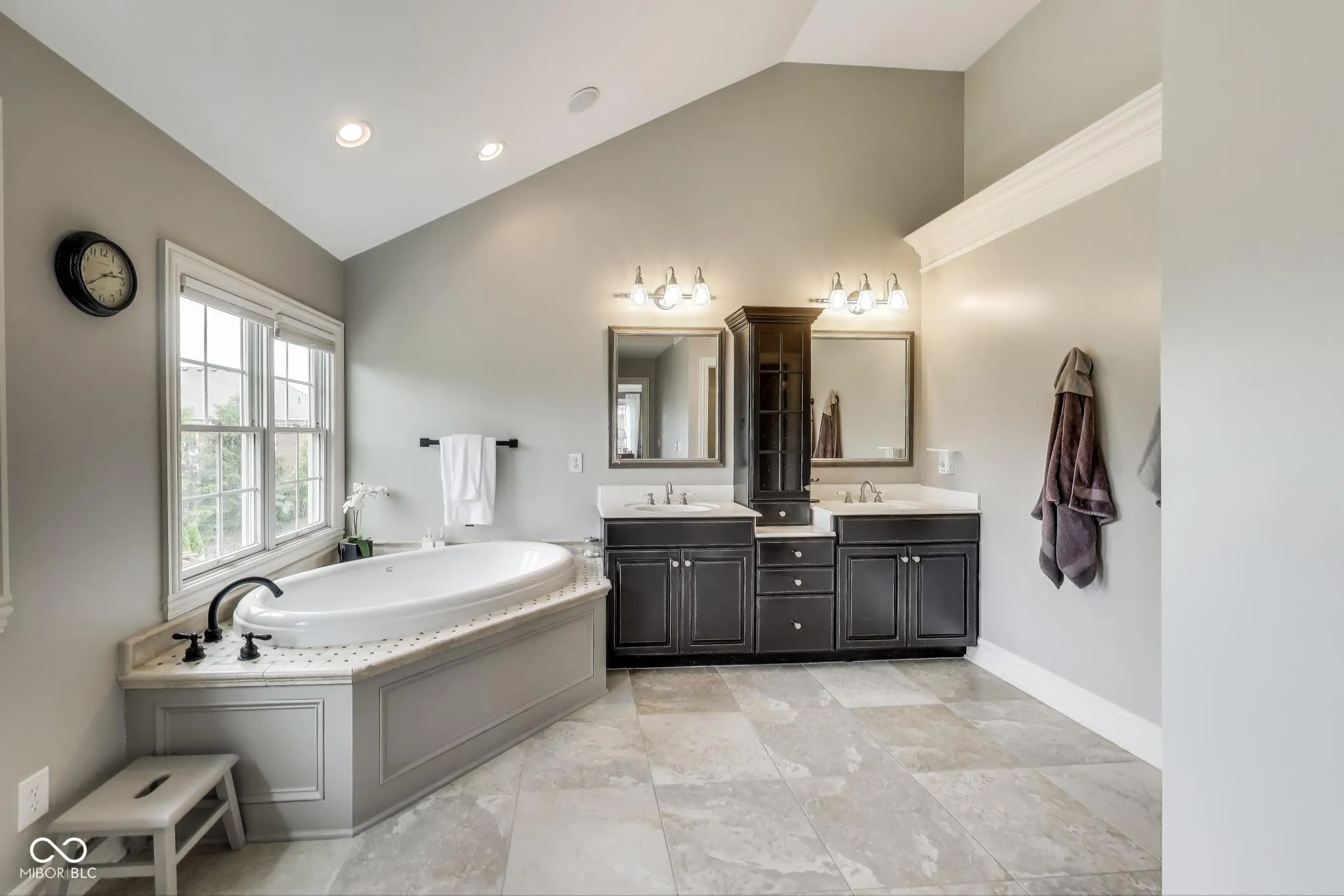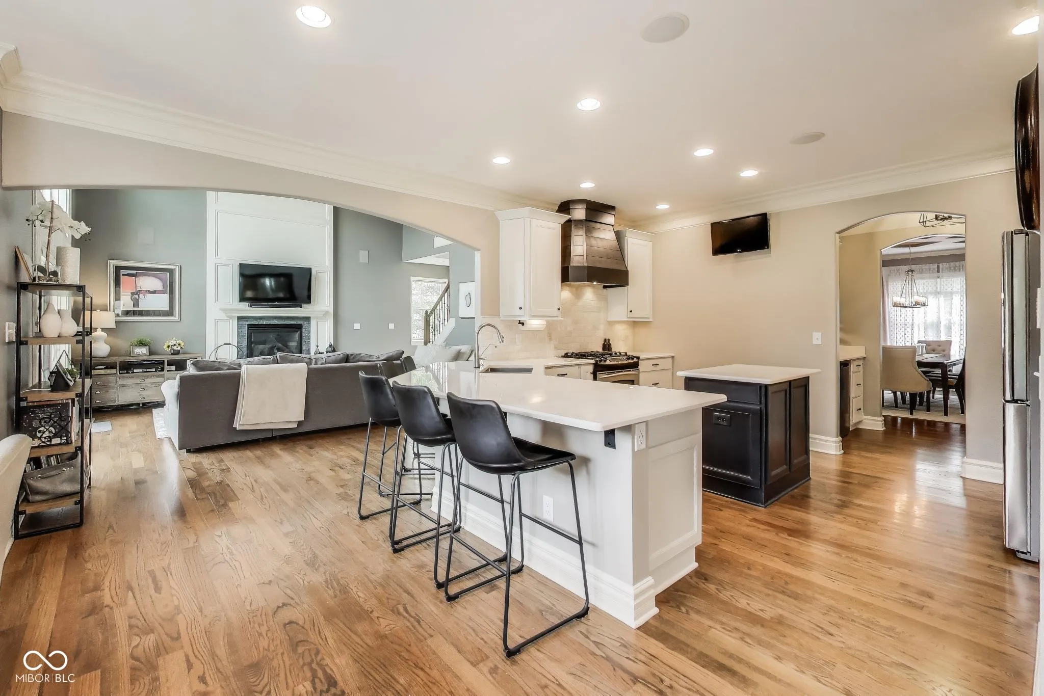 Nestled in the heart of the desirable Village of West Clay, this impeccably maintained 5-bedroom, 4.5-bath home offers the perfect blend of timeless elegance and modern comfort. From its beautiful curb appeal and lush, professionally landscaped yard to the refined interior finishes, every detail has been thoughtfully updated for today’s discerning buyer. Step inside to discover a spacious open floor plan anchored by a dramatic two-story great room with a stunning gas fireplace feature wall. Refinished hardwood floors grace the main level, while freshly painted walls and new light fixtures throughout give the home a fresh, contemporary feel. The gourmet kitchen is a showstopper with painted cabinetry, quartz countertops, a custom hood, tile backsplash, butler’s pantry and a Reverse Osmosis system. A sunroom off the kitchen invites natural light and offers the perfect space for morning coffee or relaxed gatherings. Architectural details abound, including coffered ceilings in both the formal dining room and the library/home office, adding character and sophistication. A cozy reading nook in the finished basement provides a quiet retreat. Enjoy peace of mind with major updates: NEW furnace and A/C (2025), tankless water heater (2024), water softener (2021), refrigerator (2023), and dryer (2024). Outdoor living is just as inviting with sprawling, fenced-in backyard highlighted by expansive paver patio, a charming pergola, and retractable awning-ideal for entertaining or relaxing in your own private oasis. Don’t miss the opportunity to own this exceptional home in one of Carmel’s most sought-after communities, where luxury meets lifestyle.