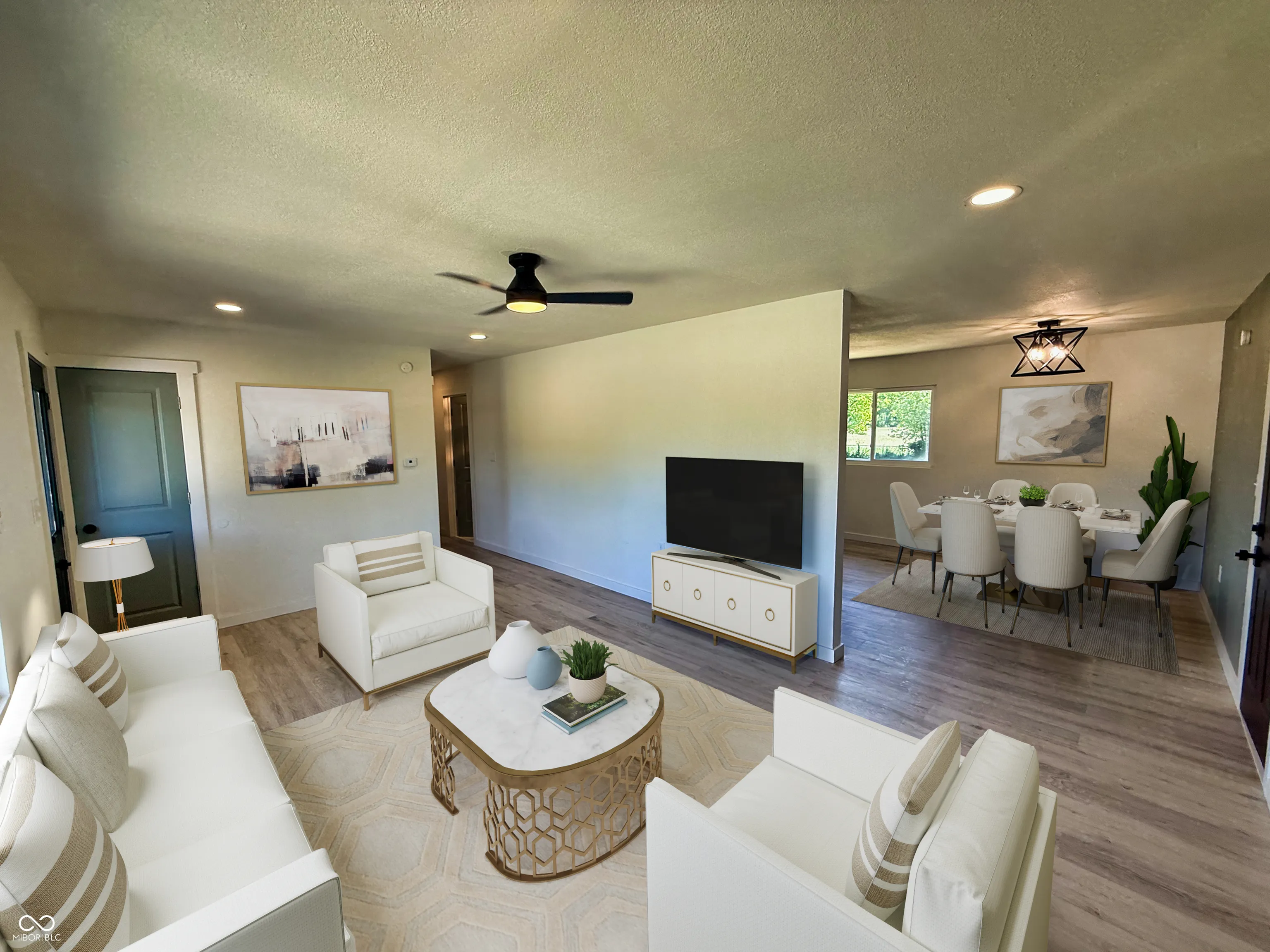 Nestled at 5861 N 330 W, COLUMBUS, IN, this single-family residence in Bartholomew County presents an attractive property in great condition. Rest easy with a new roof, new HVAC, updated kitchen, floors, paint, and so much more. The kitchen is designed to be both beautiful and functional, featuring shaker cabinets that offer a touch of classic elegance, stone countertops that provide a durable and stylish workspace, a backsplash that adds visual interest, and a wall chimney range hood that ensures a clean and comfortable cooking environment. The bathroom offers a luxurious experience with a tiled walk in shower, creating a private retreat for relaxation. Step outside onto the deck, where you can enjoy the expansive 21420 square feet lot area, perfect for entertaining or simply unwinding in the open air. With 1400 square feet of living area spread across a single story, this home offers a comfortable and convenient layout. This 3-bedroom residence offers a unique opportunity to own a well-maintained home with modern touches. *agent owned