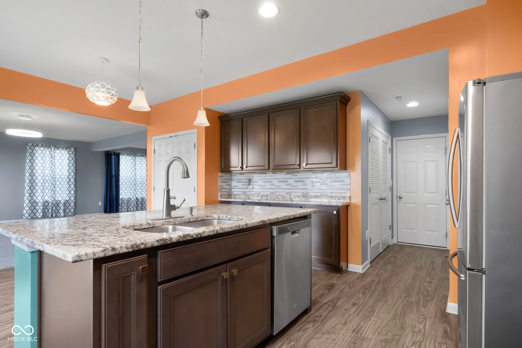 Discover an attractive single-family residence at 2502 Creekland Dr, COLUMBUS, IN. This property, situated in Bartholomew County, presents a wonderful opportunity to own a home in excellent condition. Imagine preparing meals in a kitchen that is both functional and beautiful; the shaker cabinets provide ample storage, while the quartz countertops offer a luxurious surface for all your culinary creations, further enhanced by an elegant backsplash. The large kitchen island serves as a central gathering point, perfect for casual dining or entertaining guests. Captivating views from the kitchen and dining area overlooking the water and rolling backyard. Spacious primary bedroom has ensuite featuring a double vanity that adds a touch of elegance and practicality to your daily routine. The residence offers four bedrooms and a laundry room, providing ample space for comfortable living. Walk-in closets add a touch of luxury. Step outside to the patio, where you can relax and enjoy the outdoors, or gather around the fire pit on cool evenings for cozy conversations. This is an excellent opportunity to acquire a home that perfectly combines modern features with comfortable living.