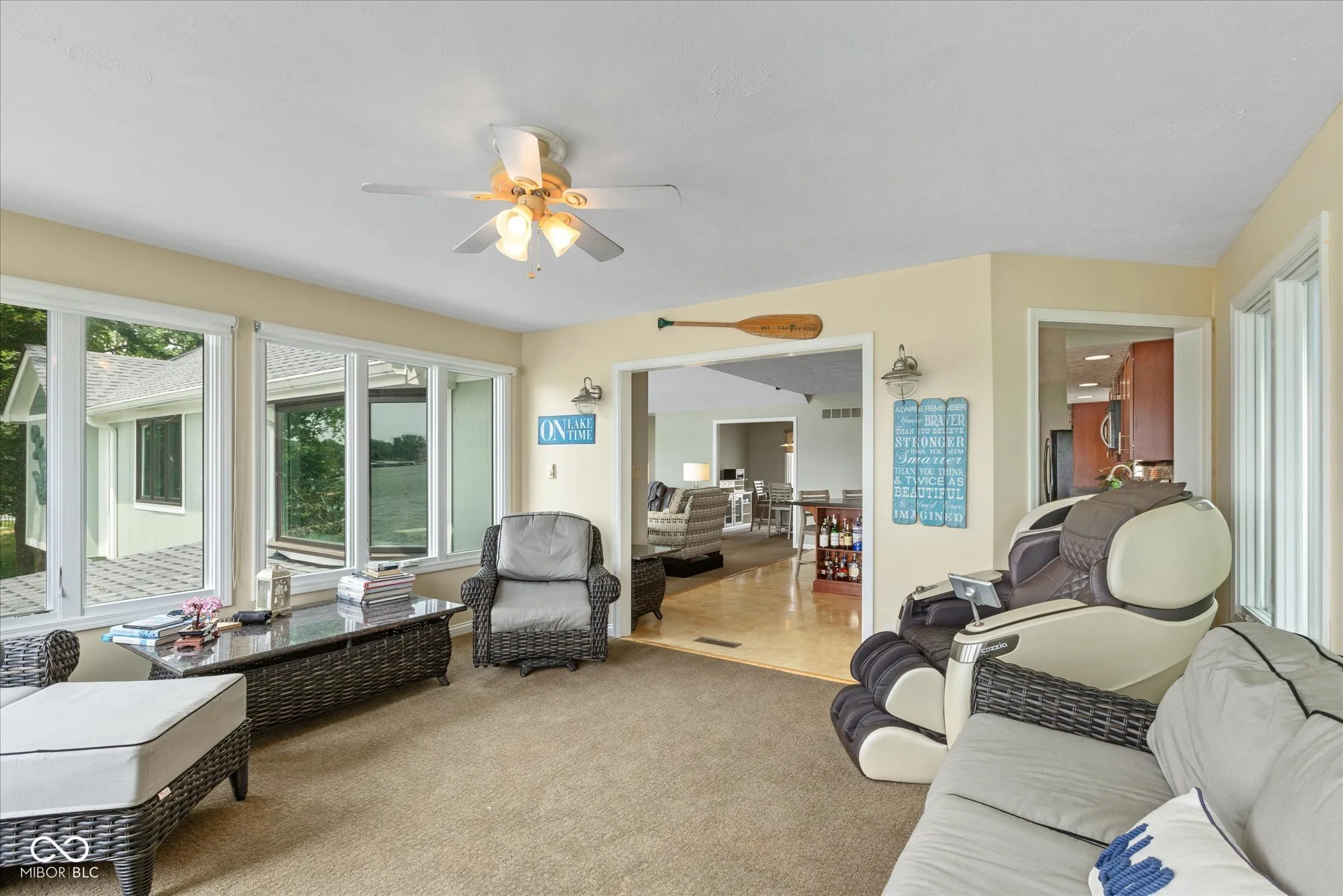 140′ of Main Body Shoreline! Enjoy living the LAKE LIFE and spectacular water view from this 4 Bedroom, 3 Bath home on 1/2 acre corner lot in the much sought-after community of East Harbour. Main level features soaring cathedral ceiling in great room with wood burning fireplace and wonderful windows taking in that amazing water. view Also on main level is the master suite and a second bedroom and bath, dining room, open kitchen and breakfast room and laundry. The breakfast room opens out to a sunroom with views surrounded by water. On the lower level you’ll find two more bedrooms and bath and family room with wood burning fireplace & built-in wet bar with fridge. In addition, there is another fantastic sunroom and a second complete kitchen and laundry, perfect for that summer kitchen, house guests or in-law quarters. You’ll love the fabulous outdoor space to relax and entertain. Walk right out to the boat and the shoreline where you can swim! Sellers have made many important improvements that include Dock, Furnace, Windows, Painting, Roof, Gutters and Skylights. This house is just waiting for you to transform it to the LAKE HOUSE OF YOUR DREAMS Boat Dock is included, Lift is excluded